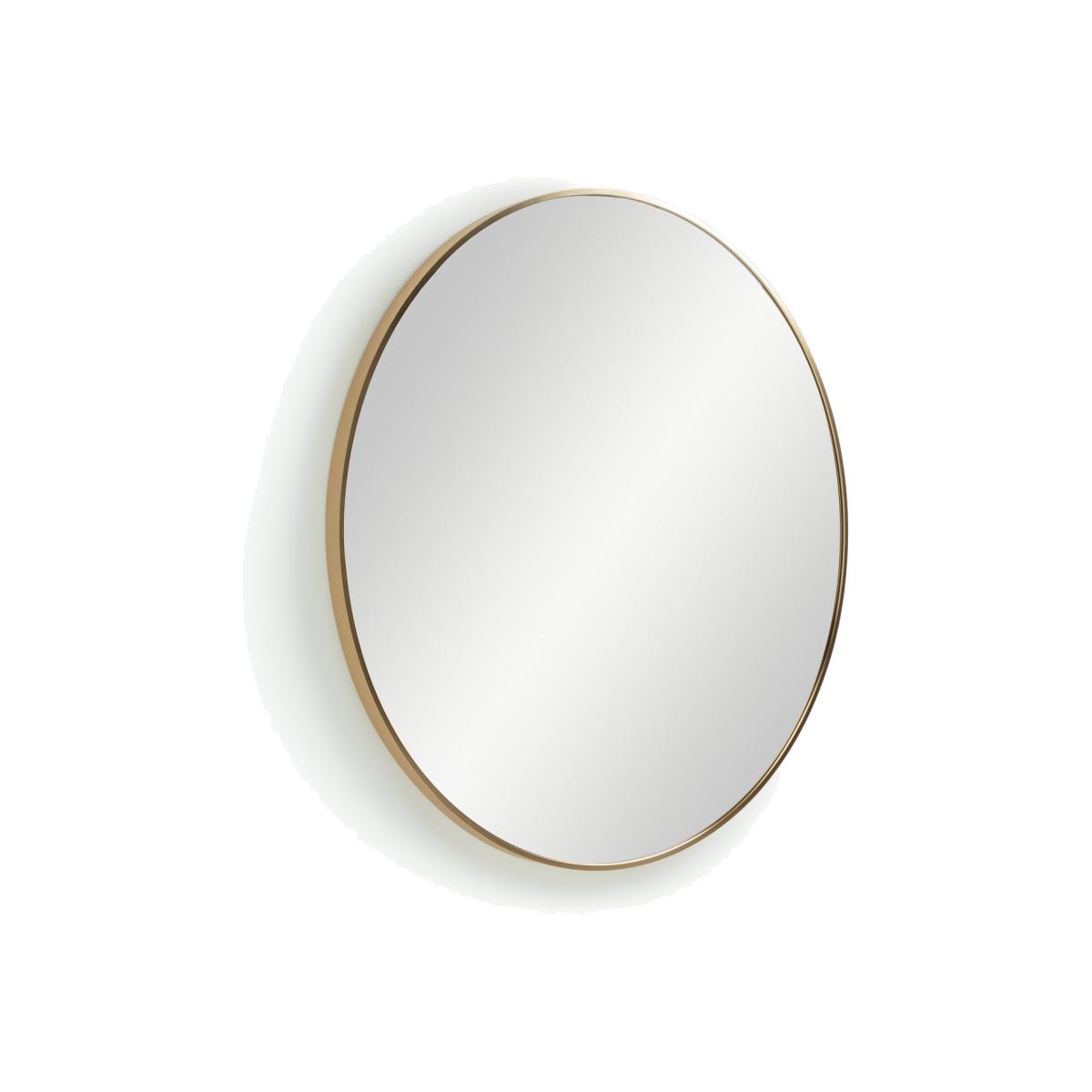Talk about star quality. This glamorous round mirror with a subtle, brushed gold finish look fabulous in a modern bedroom. For the full effect, position it on a block colour feature wall. Stunning, slim and easy to hang. This majestic mirror is a striking room refresh just waiting to happen. Hang above an elegant set of drawers with a matching gold lamp for an eclectic dressing table arrangement. We can't stop looking. Size H80, W80, D2.8cm Diameter 80cm. Round. Metal. Keyhole. Glass mirror. Wall mounted mirror. Can be hung horizontally or vertically. 5.6kg. Fully assembled. Distance between fixings 1cm. General information: We are excited to be welcoming some of our favourite HOME products into the Habitat range. Your product may arrive in Habitat or HOME packaging.