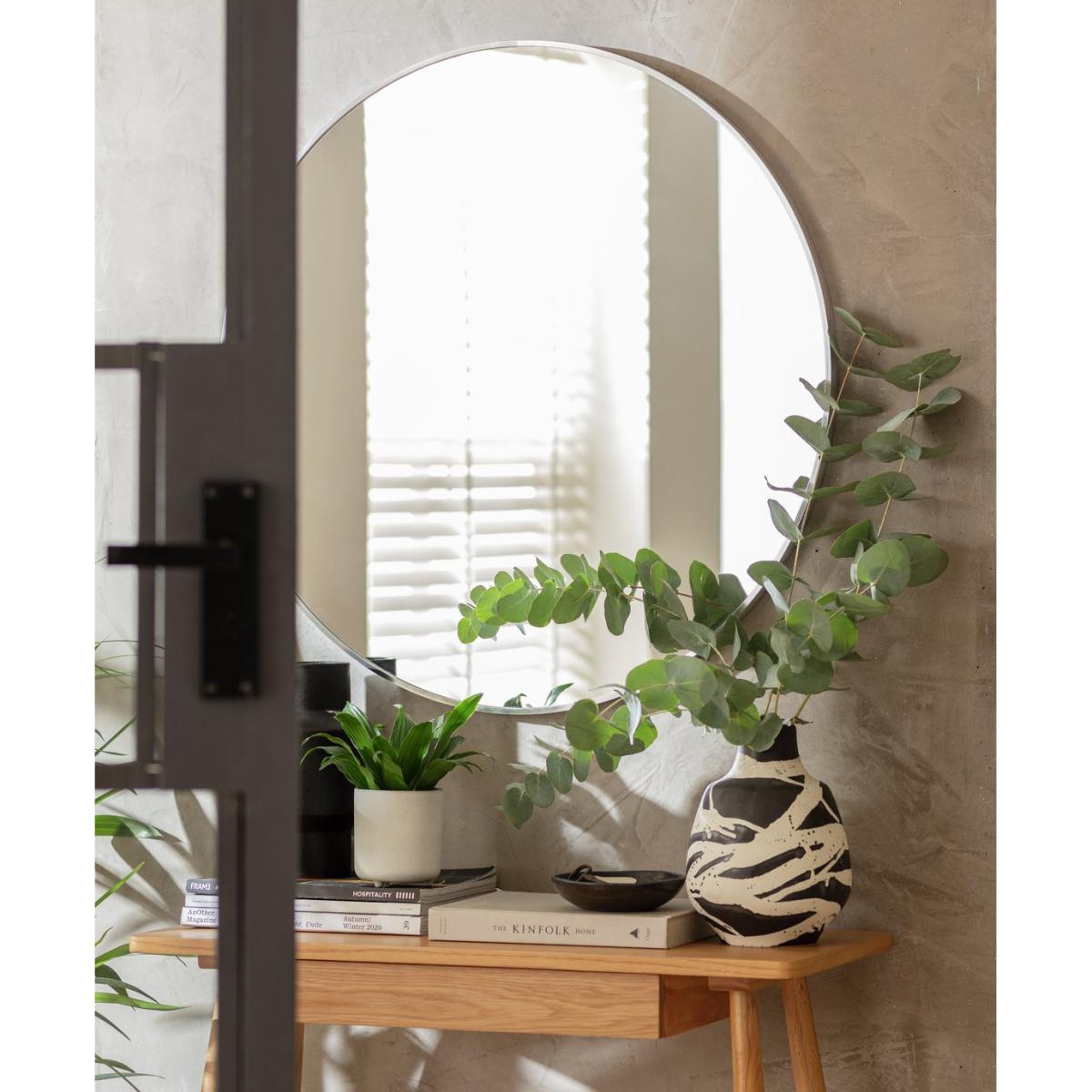 I love this round wall mirror for its clean, contemporary design that adds a touch of sophistication to any space. Its silver frame makes it versatile, pairing well with modern, minimalist, or even industrial interiors. It's a great size for creating focal points above a console or in a hallway, reflecting light to brighten up darker areas. For styling tips, consider hanging it opposite a window or artwork to maximise light and visual depth. Lean it against a wall for a more casual vibe or mount it securely for a sleek, polished look - either way, it’s a practical piece that enhances both function and style.