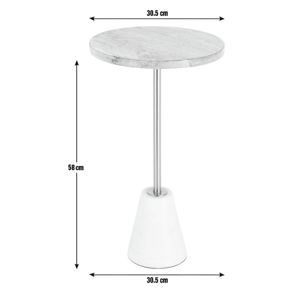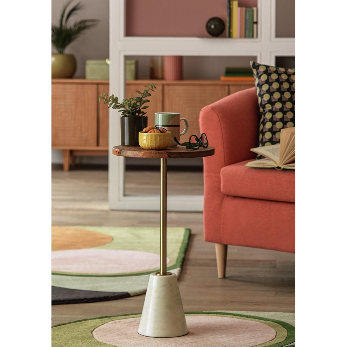 I love this side table for its sleek combination of materials-marble, wood, and brass-that bring a sophisticated yet versatile look. It works particularly well in contemporary and minimalist interiors, adding a touch of luxury without being overpowering. Practical styling tips include using it as a bedside table in a bedroom paired with neutral bedding, or as a statement piece next to a sofa with a stack of books or a decorative lamp on top. Its compact size makes it ideal for small spaces, and its understated design ensures it complements a range of colour schemes and decor styles.