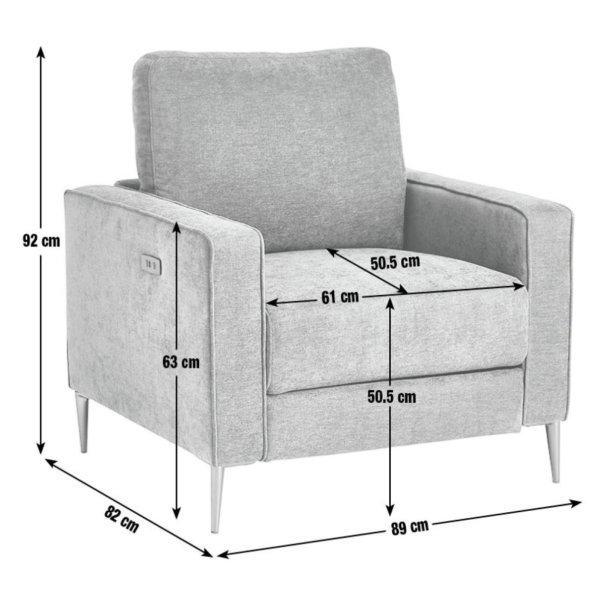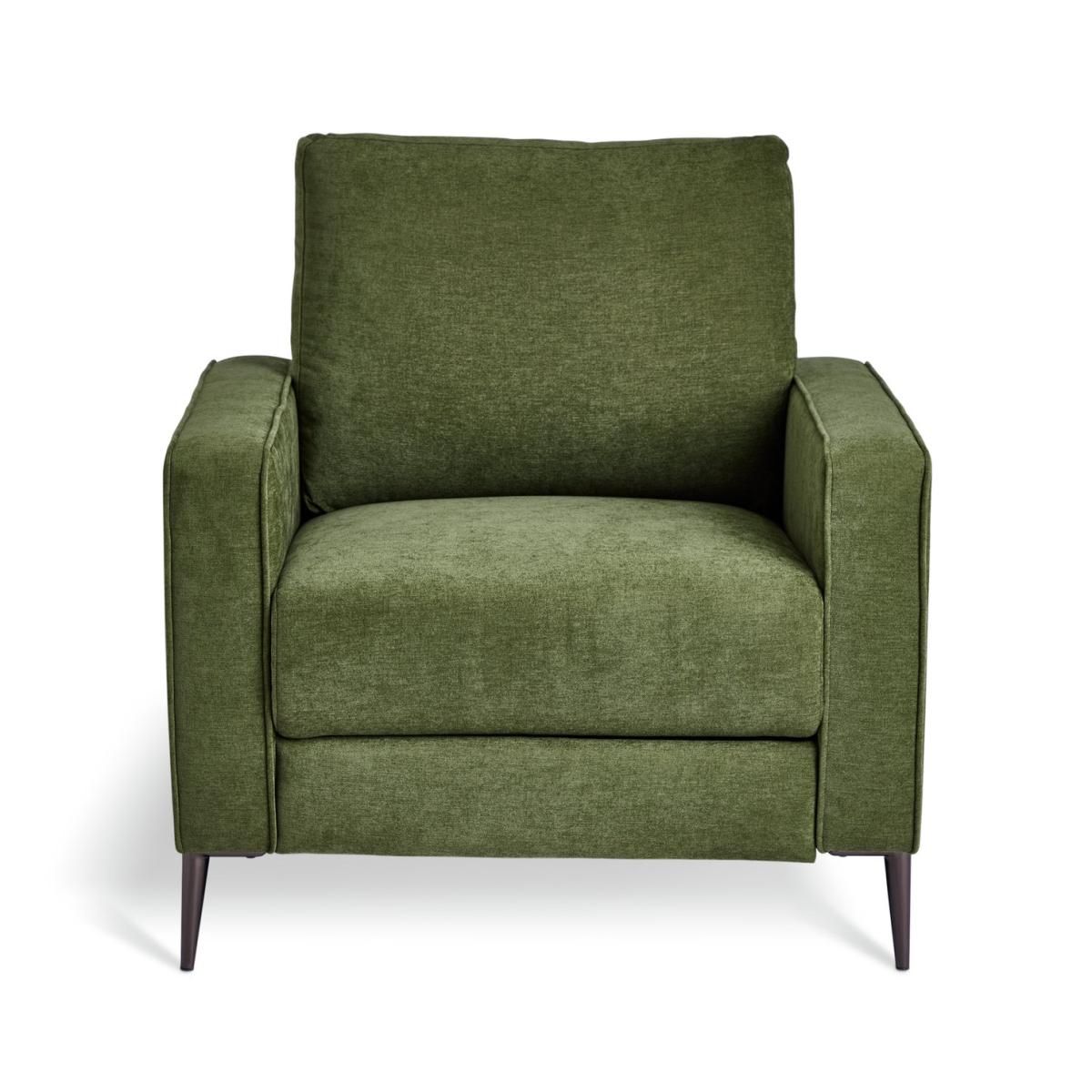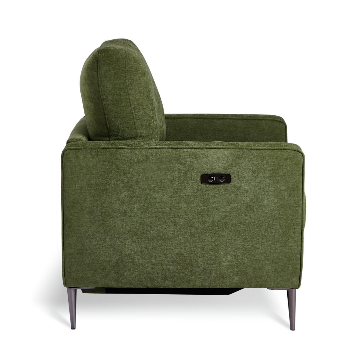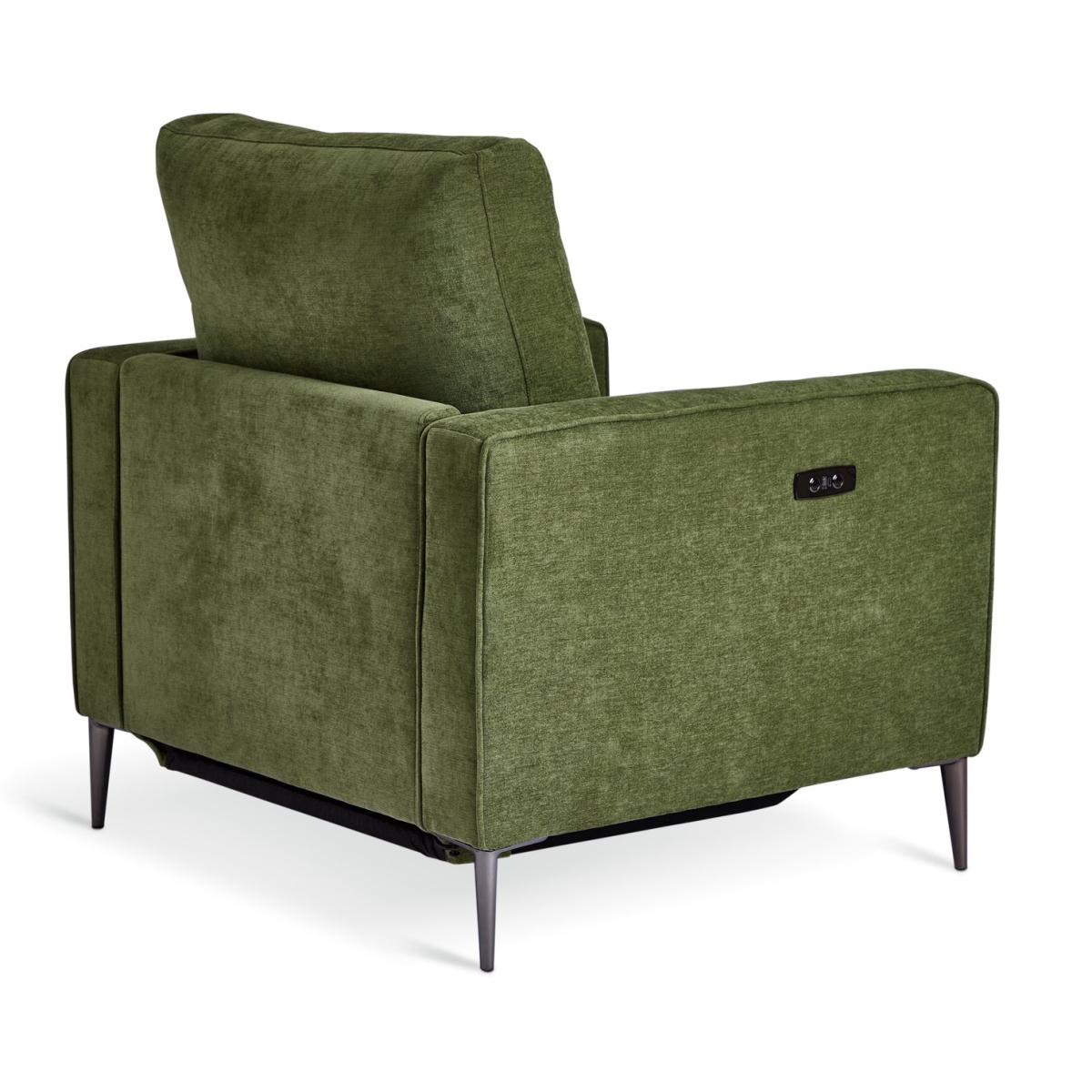 Merging mid-century looks with modern convenience. Relax, this armchair knows a thing or two about style and comfort. First the style. The rich green chenille fabric whispers softness, while the slim metal legs add a touch of contemporary flair. Now the comfort. Simply press a button and this power recliner goes into action. The footrest automatically comes out so you can lay back and just be. Part of the Kendric collection. Power recliner. Material: Made from 100% polyester. Metal feet. Fixed seat with pocket sprung foam filling. Free fabric swatch available on this line. Dimensions: Size H92, W89, D82cm. D126cm. Floor to seat height: 50.5cm. Depth of seat: 50.5cm. Height of seat back: 44cm. Width of seating area between arms: 61cm. Height of arm rest: 63cm. Weight: 37.25kg. Packaged dimensions: Package size H56, W92, D84cm. General information: FSC certified meaning the materials used for this product are responsibly sourced. Professional clean only. Self-assembly. Maximum individual user weight 110kg. Mains operated. Manufacturer's 2 year guarantee.