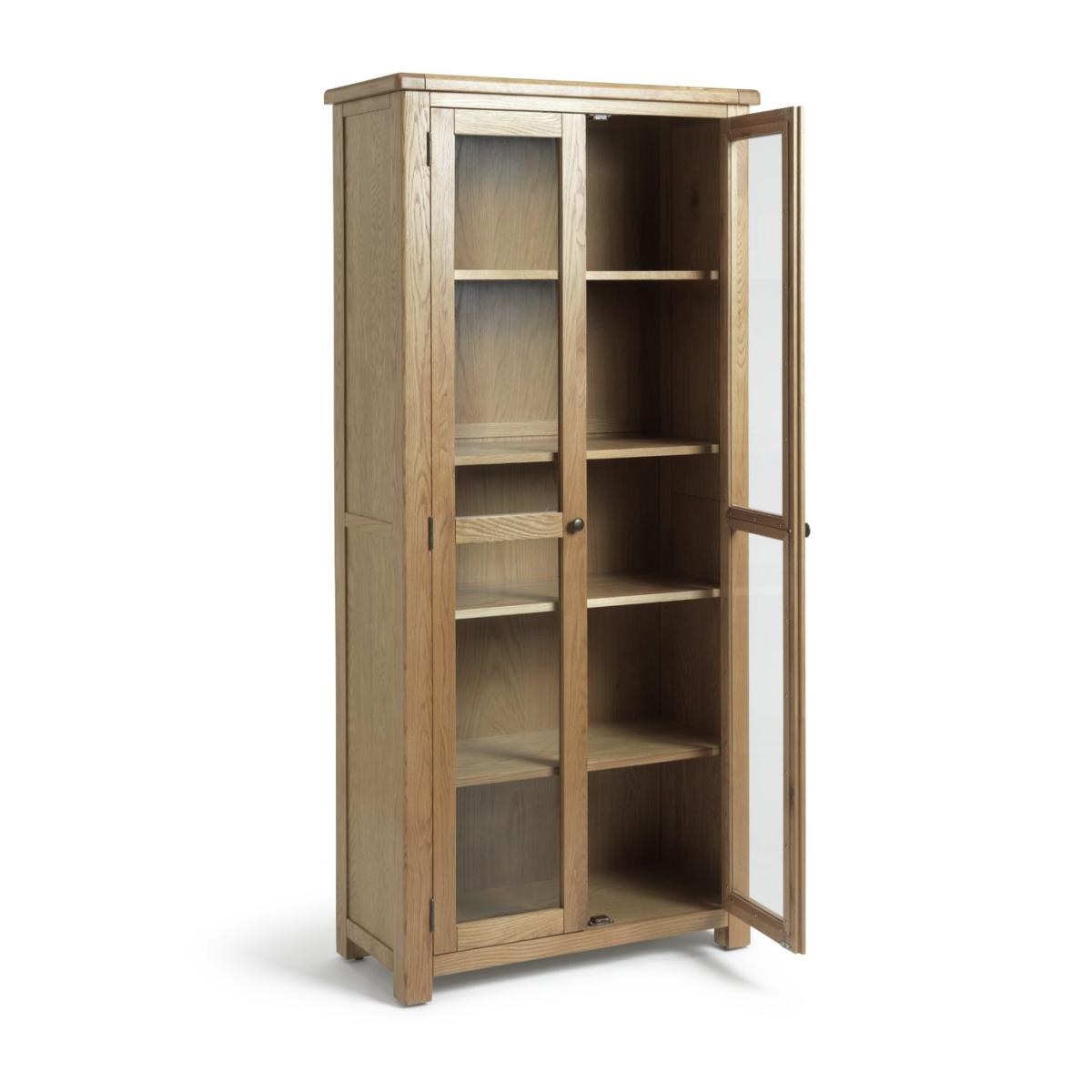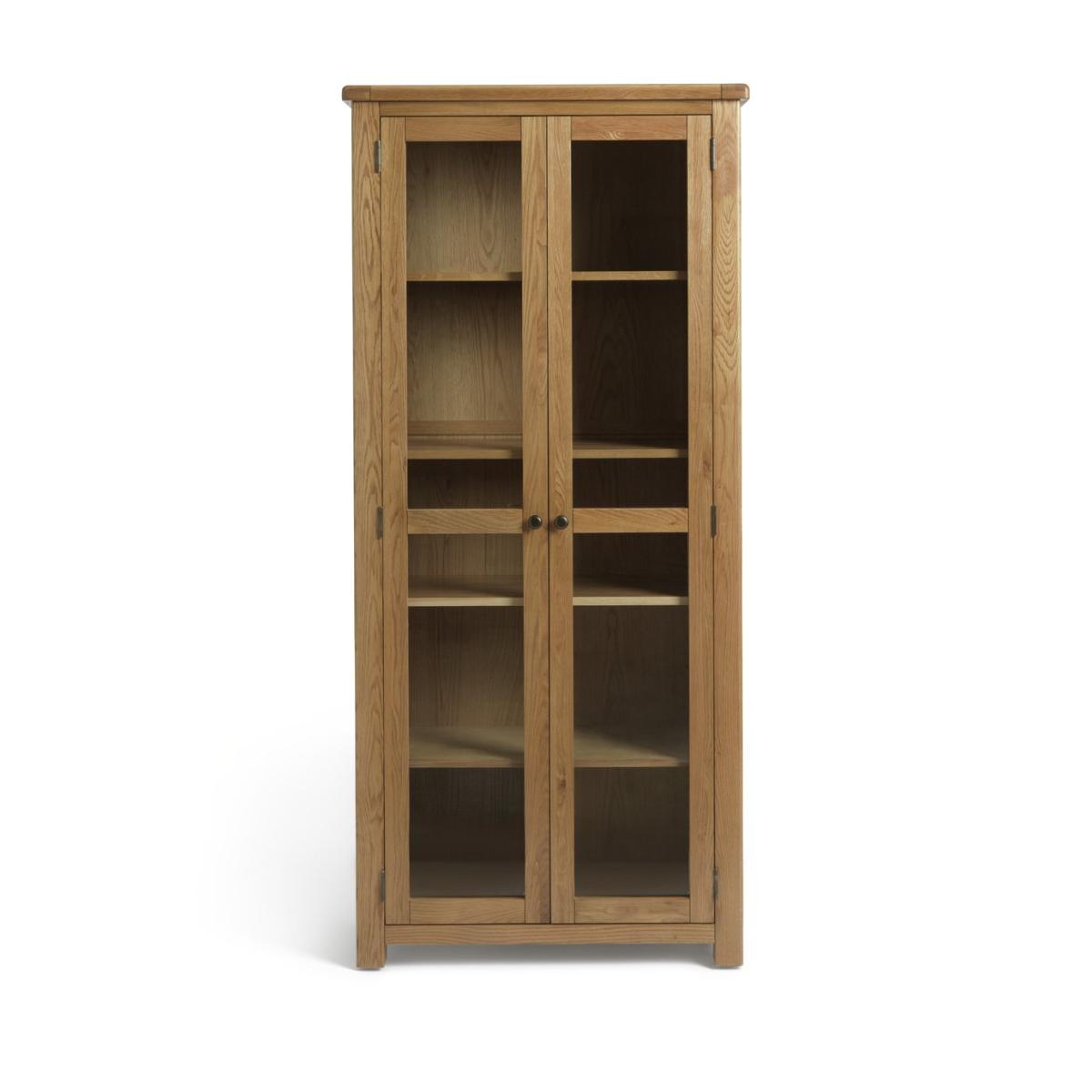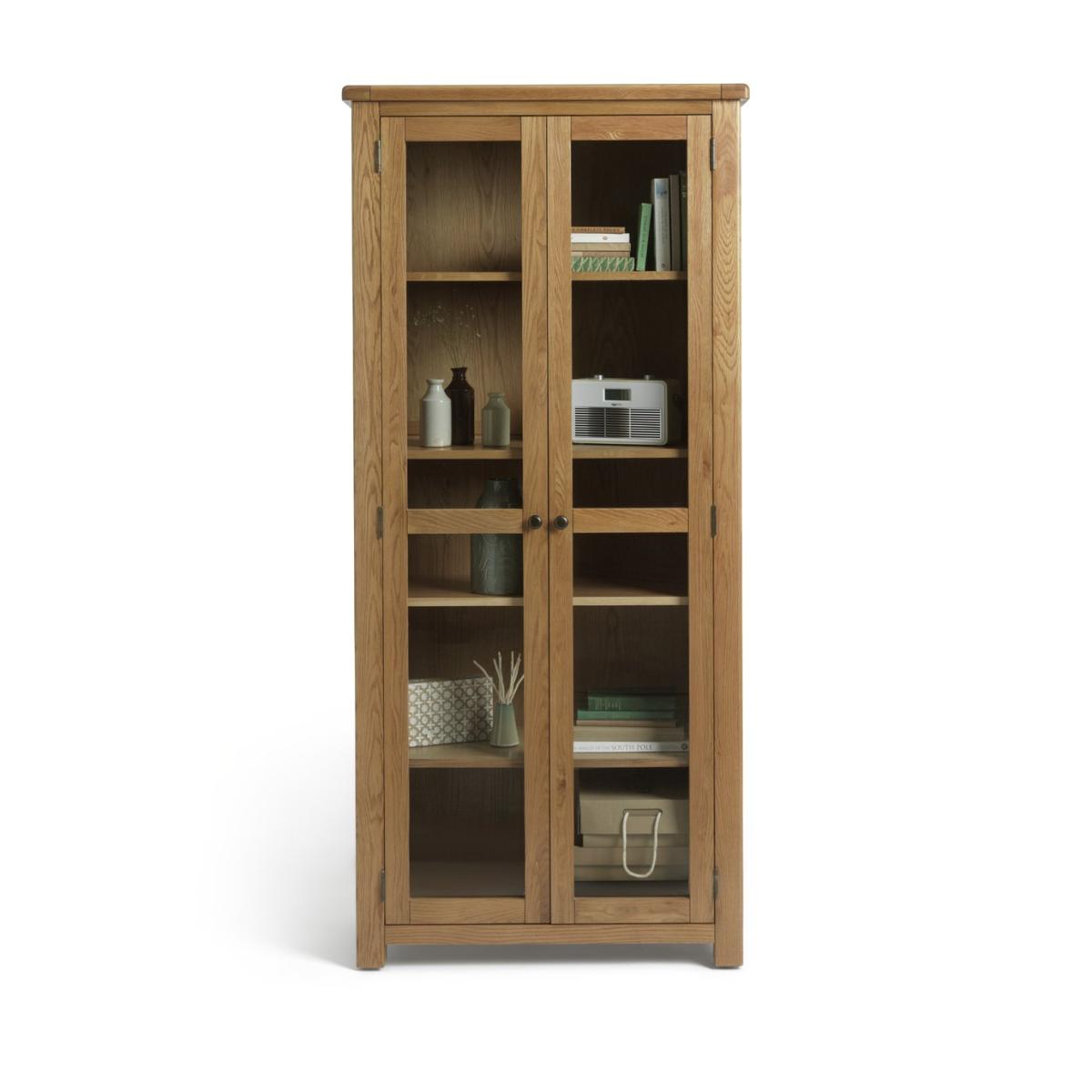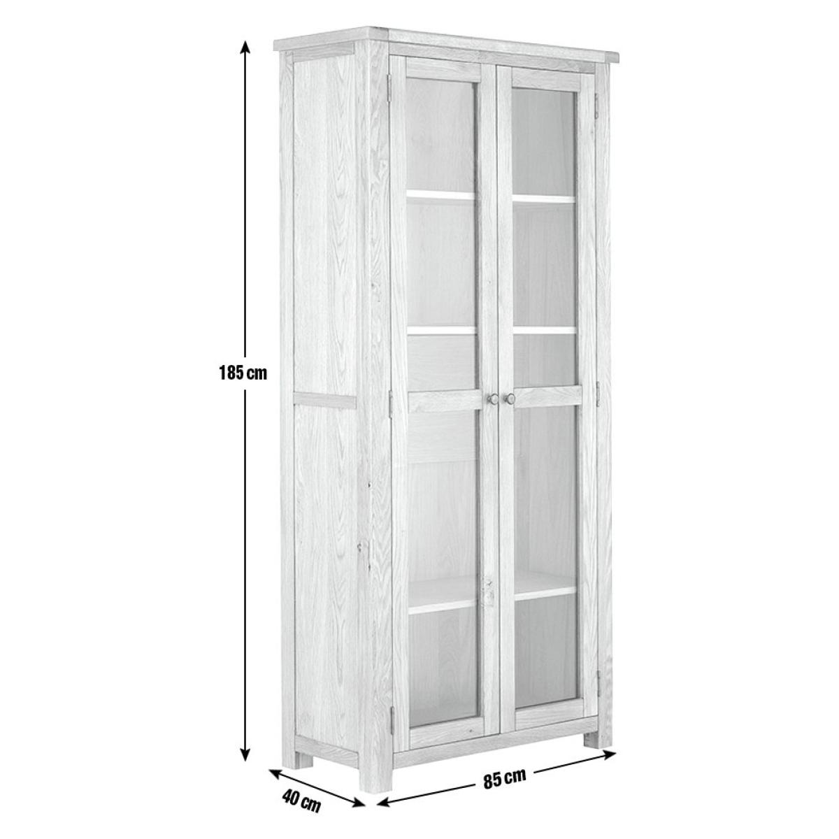 Inspired by country living, you can put your feet up as soon as it arrives. Its chunky look with rounded edges make this a sturdy unit, ideal for a busy household. The surface shows off the natural grains and knots of the wood and the oak finish is warm and inviting. Perfect for cosying up a lounge. There are 4 fixed shelves, so you can show off more of what you love. The doors are finished with pristine glass to protect your treasured things from dust (or curious little hands and feline friends) The metal cup handles are a fabulous finishing touch for the Kent's classic look. Part of the Kent collection. Size H185, W85, D40cm. Weight 45kg. 4 shelves made from oak including 4 fixed shelves. 2 doors made from glass. Fully assembled. If this product is over 60cm in high it must be securely attached to the wall to prevent over turning. (fixing not included). General Information: We are excited to be welcoming some of our favourite HOME products into the Habitat range. Your product may arrive in Habitat or HOME packaging.