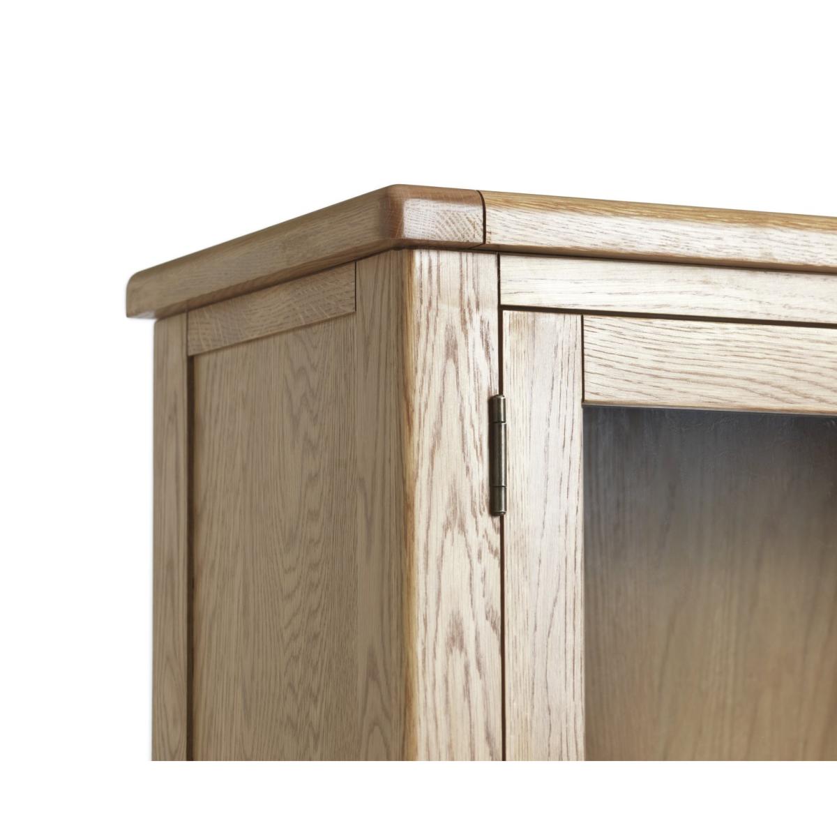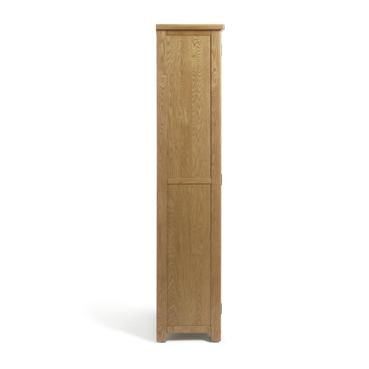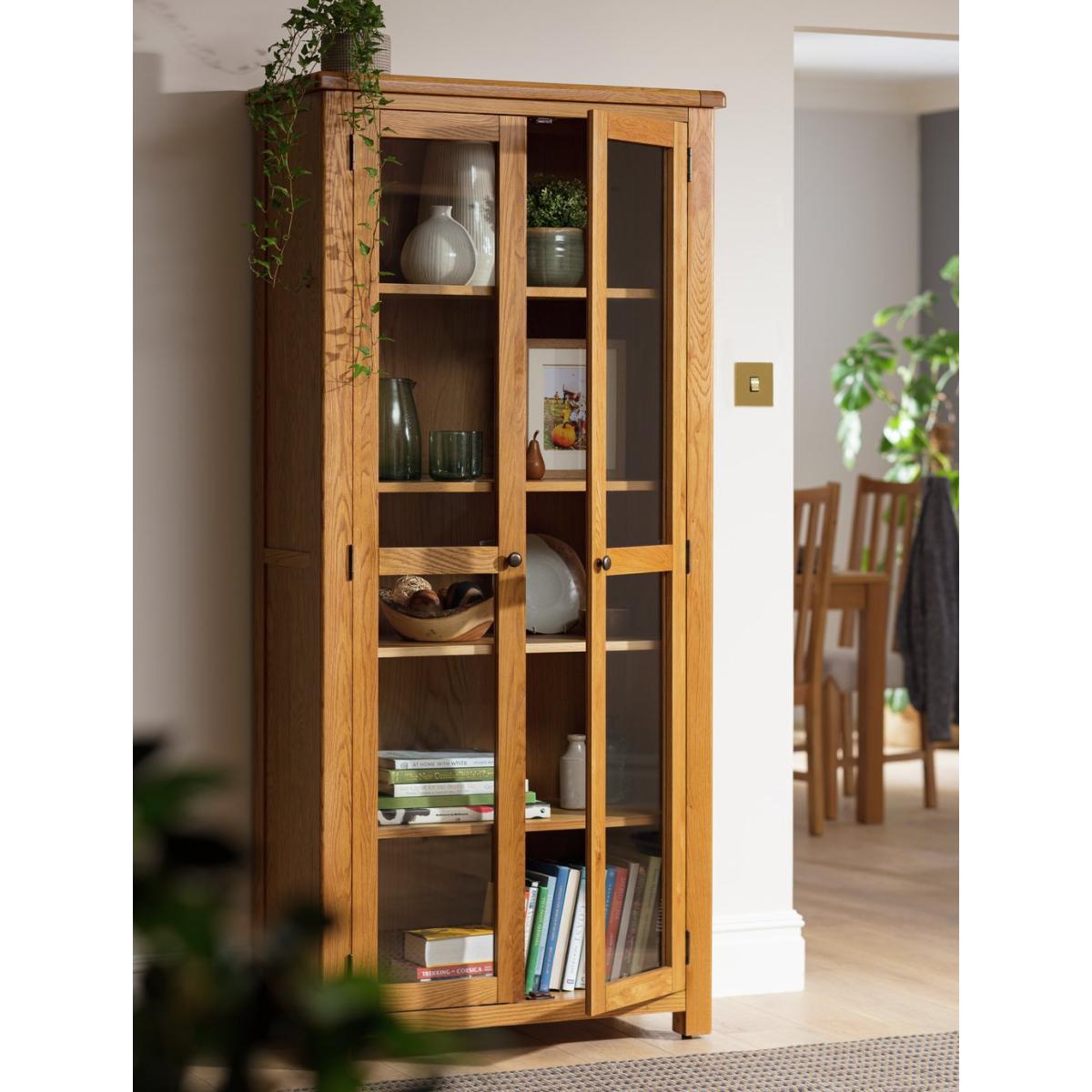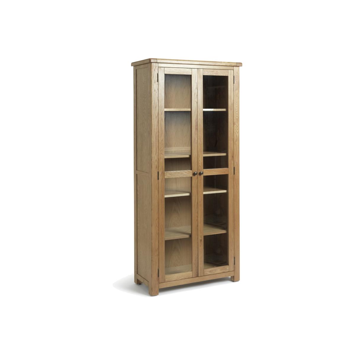 Inspired by country living, you can put your feet up as soon as it arrives. Its chunky look with rounded edges make this a sturdy unit, ideal for a busy household. The surface shows off the natural grains and knots of the wood and the oak finish is warm and inviting. Perfect for cosying up a lounge. There are 4 fixed shelves, so you can show off more of what you love. The doors are finished with pristine glass to protect your treasured things from dust (or curious little hands and feline friends) The metal cup handles are a fabulous finishing touch for the Kent's classic look. Part of the Kent collection. Size H185, W85, D40cm. Weight 45kg. 4 shelves made from oak including 4 fixed shelves. 2 doors made from glass. Fully assembled. If this product is over 60cm in high it must be securely attached to the wall to prevent over turning. (fixing not included). General Information: We are excited to be welcoming some of our favourite HOME products into the Habitat range. Your product may arrive in Habitat or HOME packaging.
