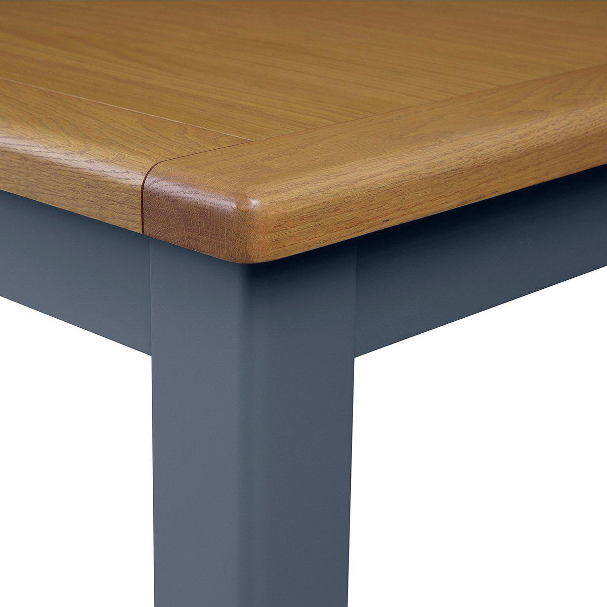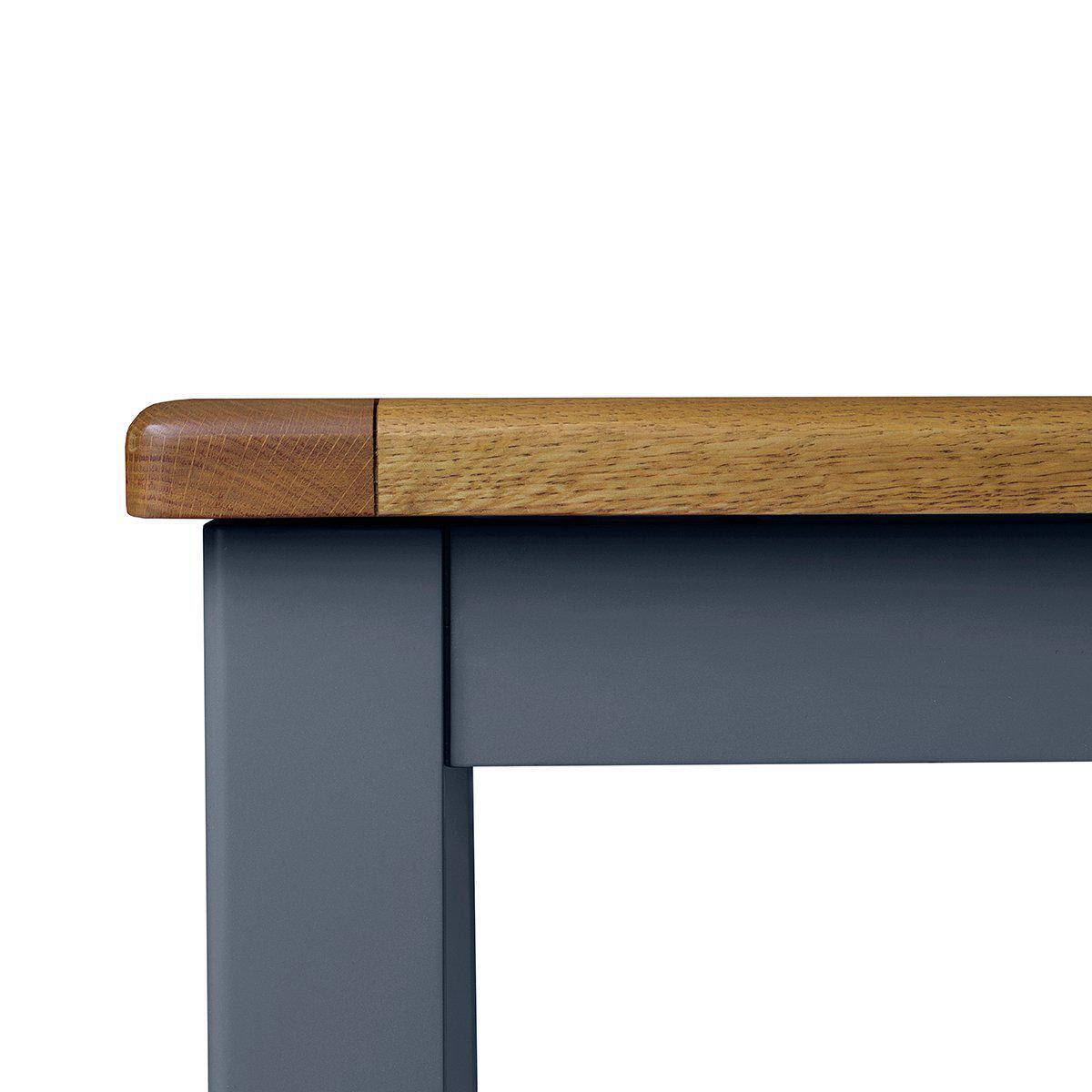Table for 6? Come this way. This oak table combines the best of both worlds. It's traditionally welcoming, with a contemporary vibe. The natural oak finish top is warm and inviting. While the dark grey paint give the solid oak legs a fresh modern feel. Roomy enough to seat 6 it's perfect for family meals. Throwing a dinner party? You've plenty of space. Loving the style? Check out the rest of our Kent range, it's classically cool.