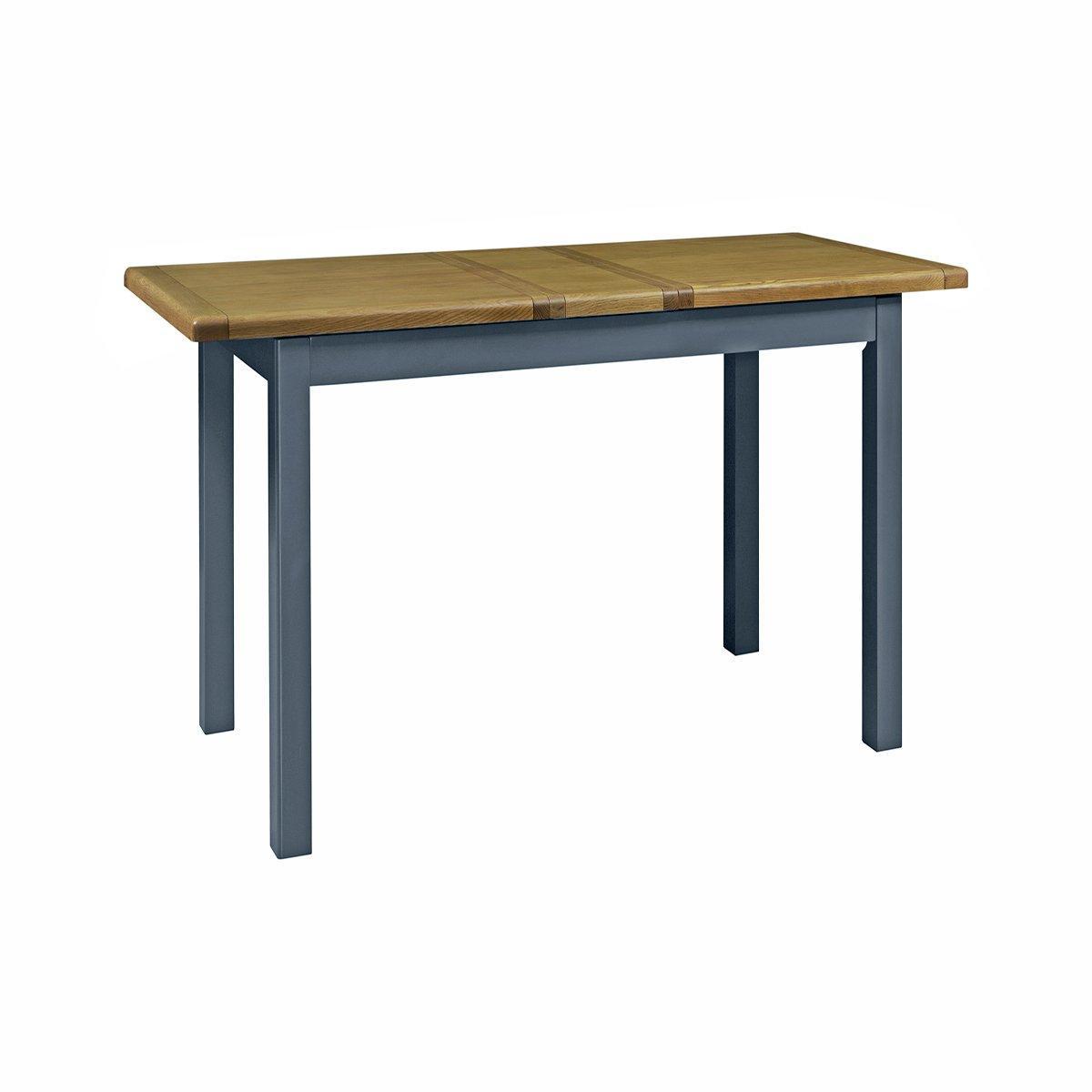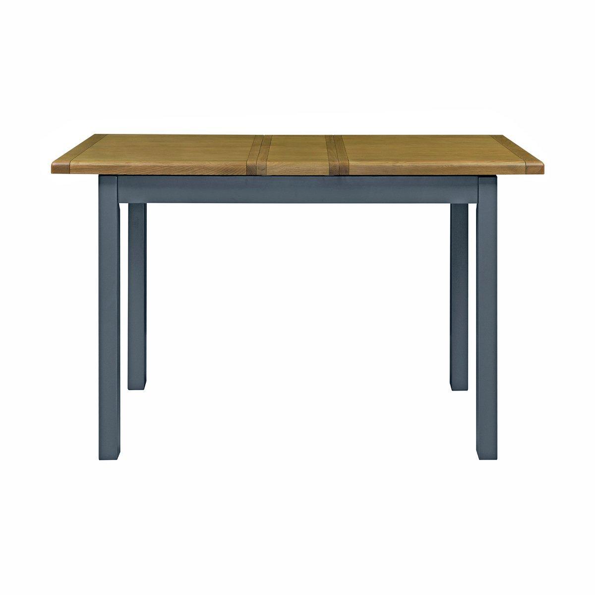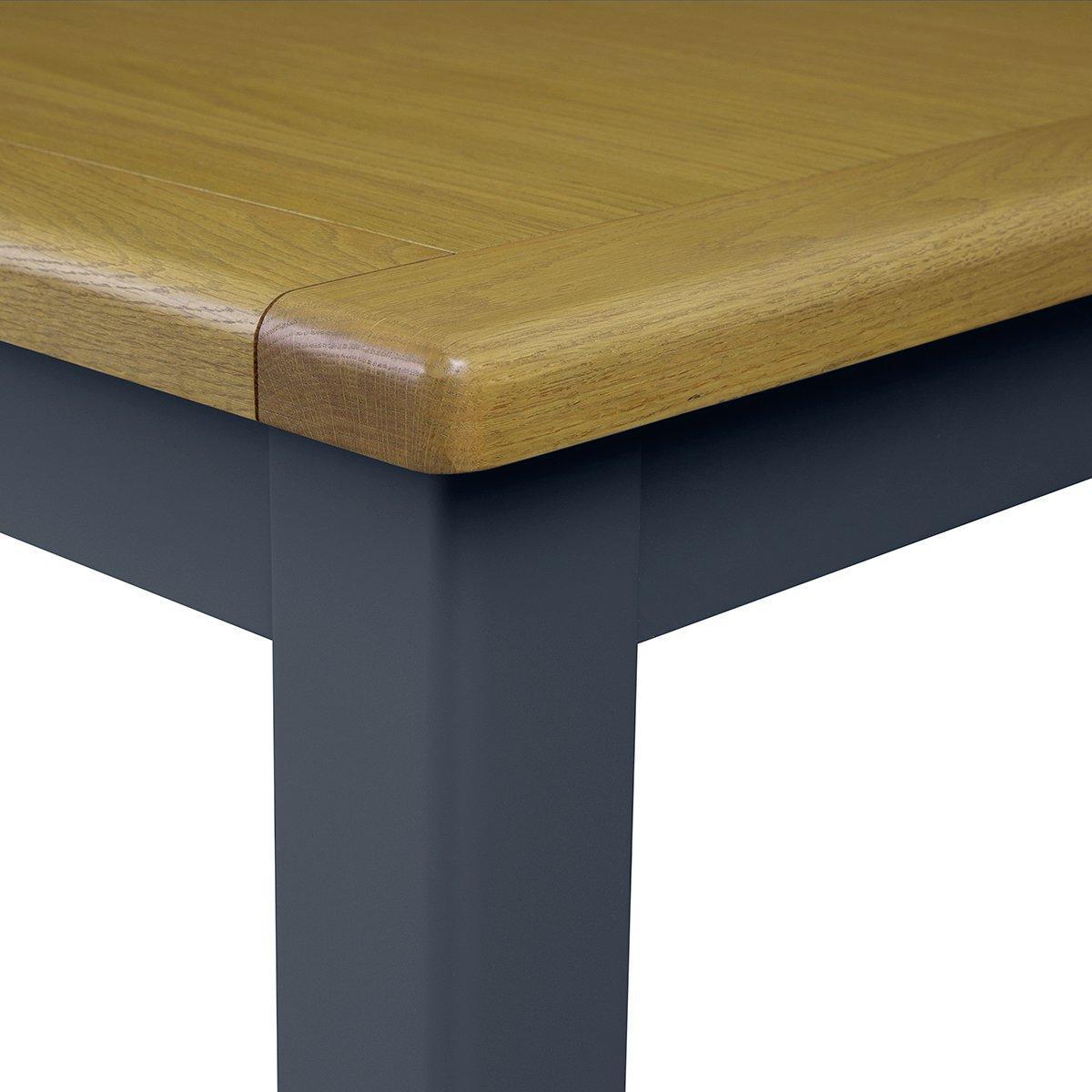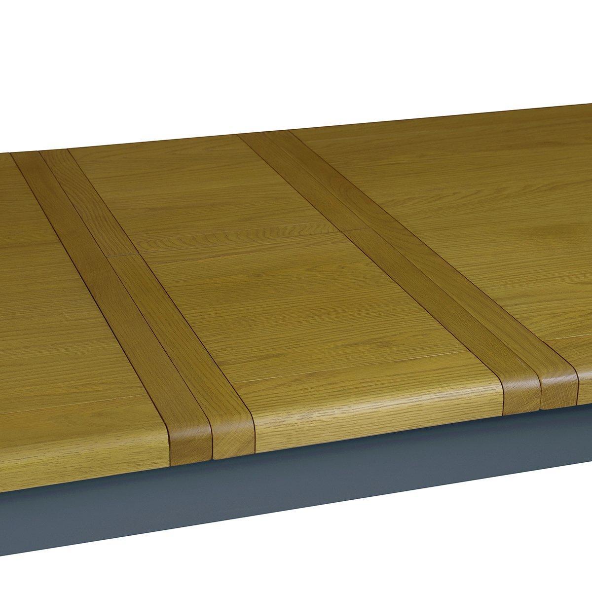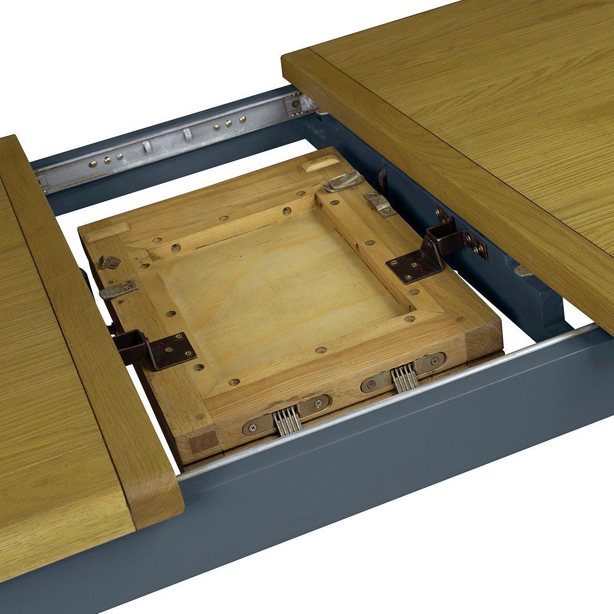 Table for 8? Come this way. Our stylish extending table is modern country cool. The traditional oak top is classically warm and welcoming. The dark grey paint give the solid oak legs a fresh contemporary feel. It seats 6 people just as it is. Ideal for family meals and cosy dinner parties. Need room for 2 more? No problem, it takes 2 ticks to pull and flip. Pulling the table ends reveals a matching middle section that simply flips into place. How neat is that. Shall we take your order now?