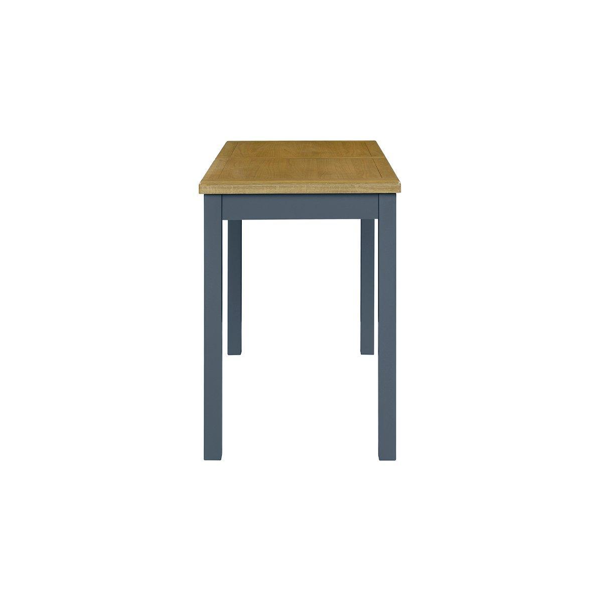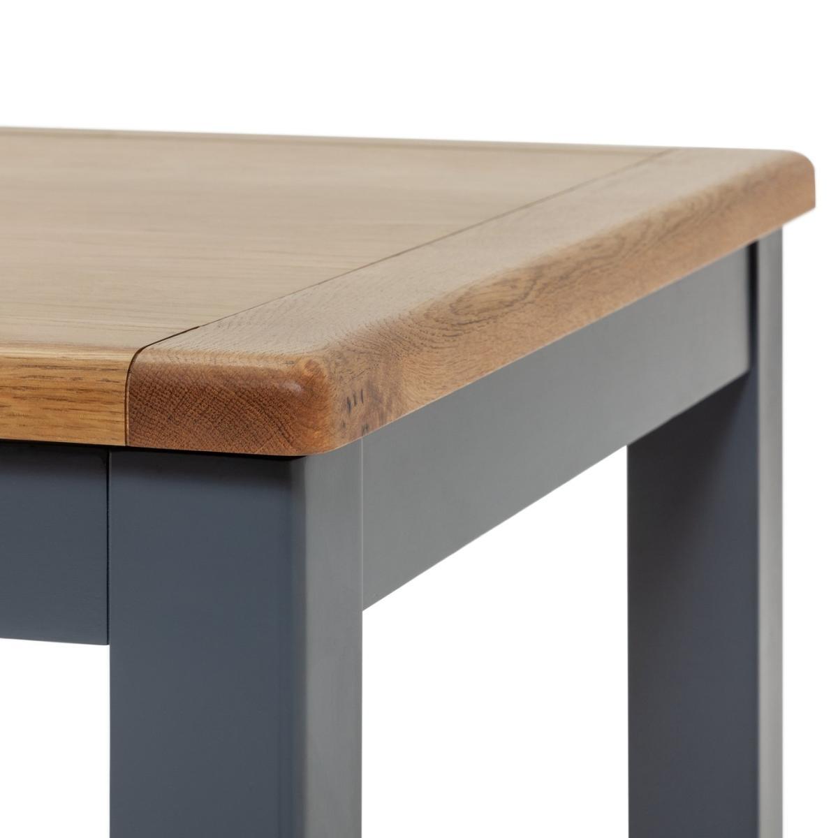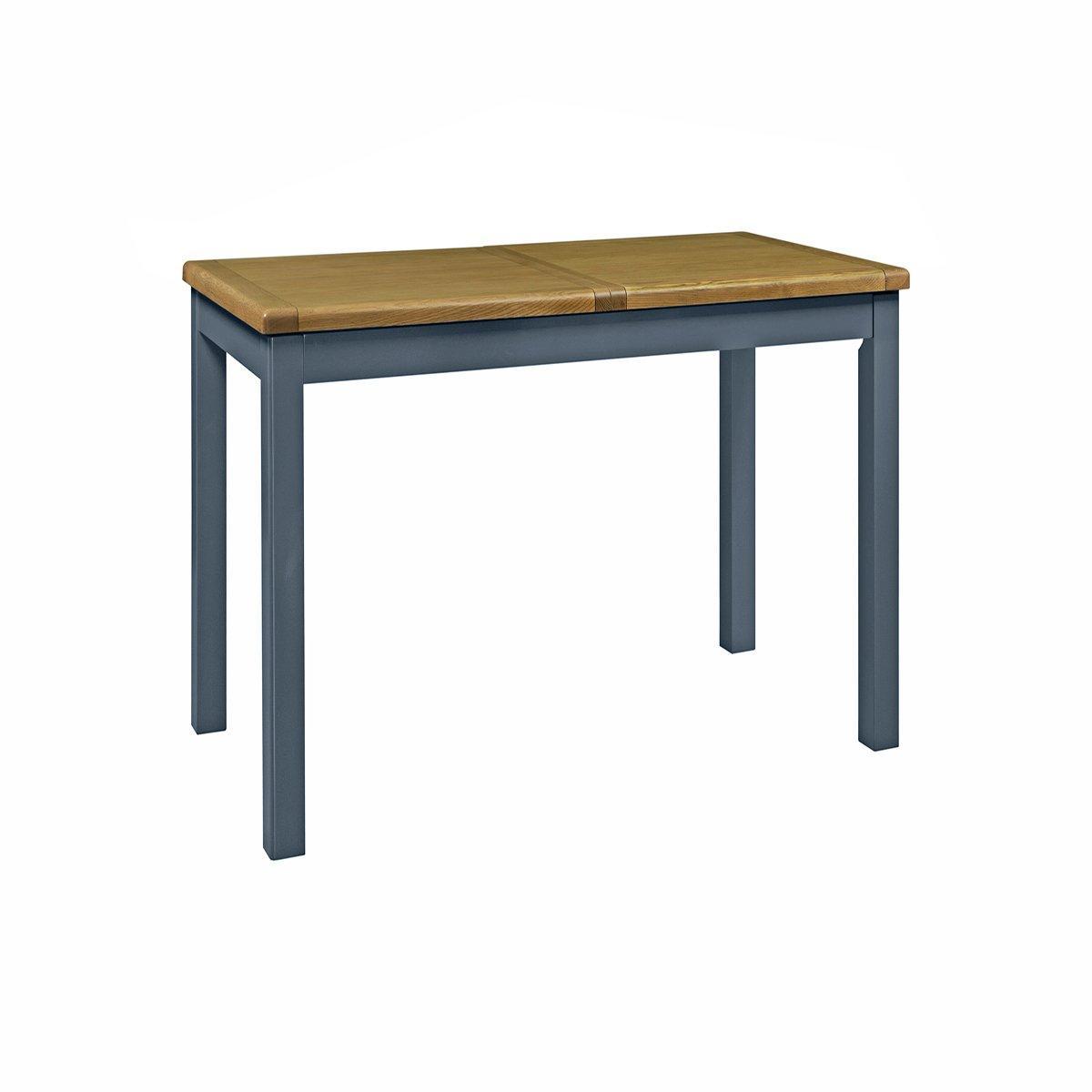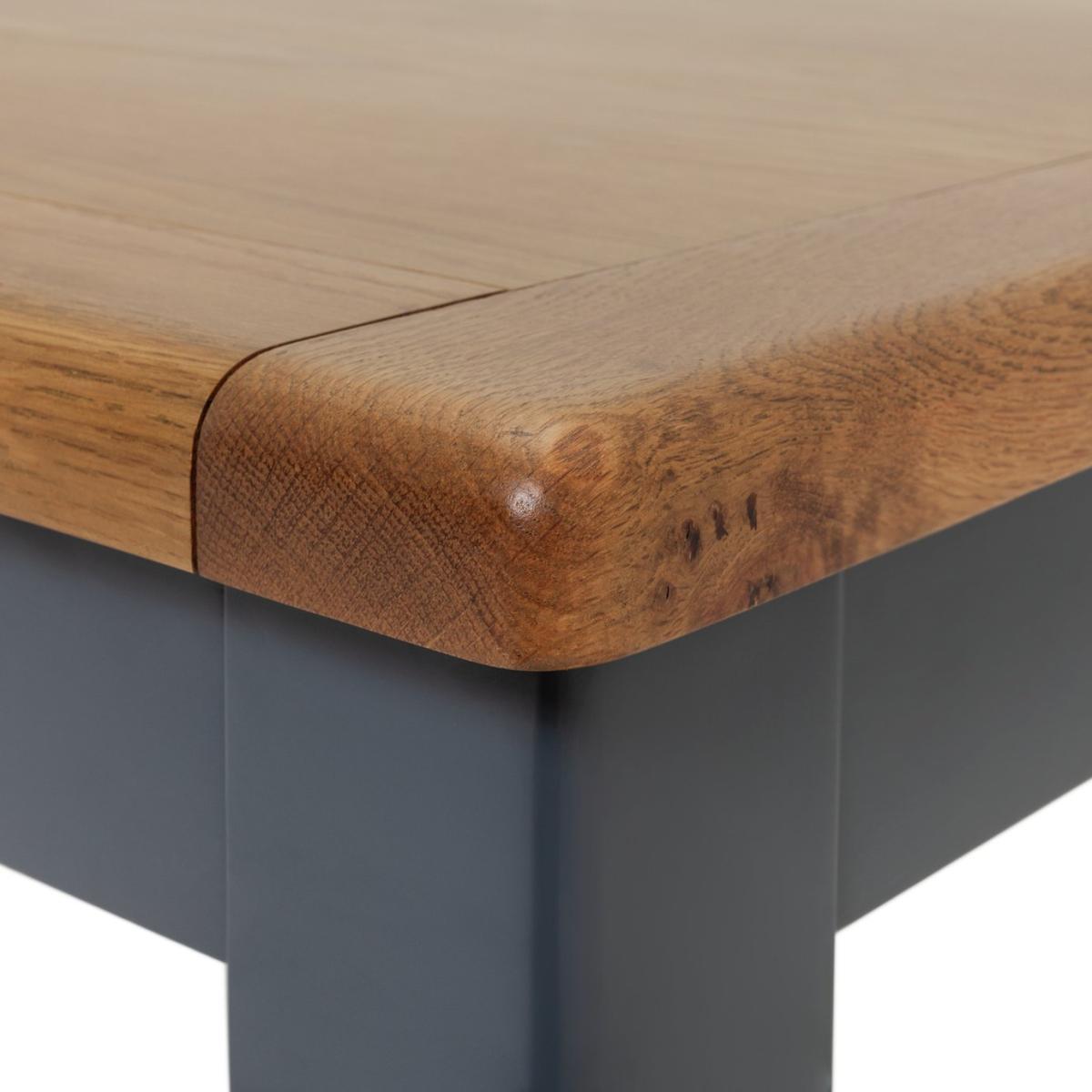 Table for 8? Come this way. Our stylish extending table is modern country cool. The traditional oak top is classically warm and welcoming. The dark grey paint give the solid oak legs a fresh contemporary feel. It seats 6 people just as it is. Ideal for family meals and cosy dinner parties. Need room for 2 more? No problem, it takes 2 ticks to pull and flip. Pulling the table ends reveals a matching middle section that simply flips into place. How neat is that. Shall we take your order now?