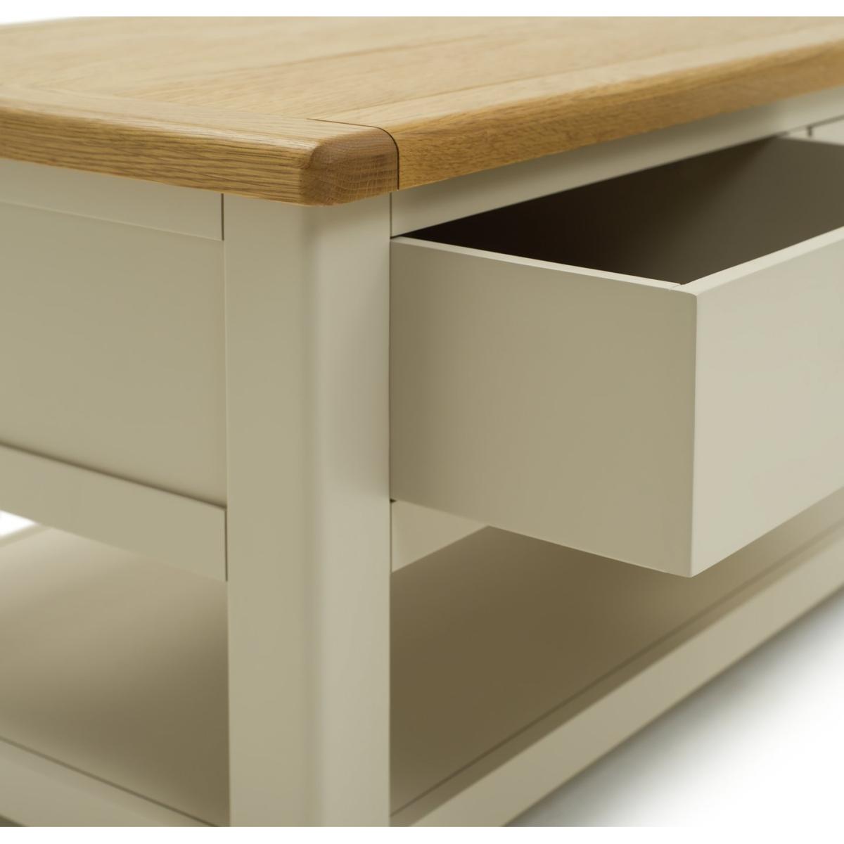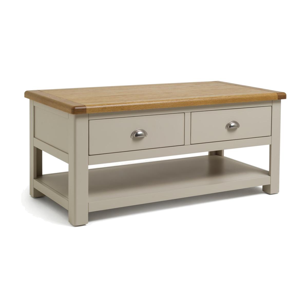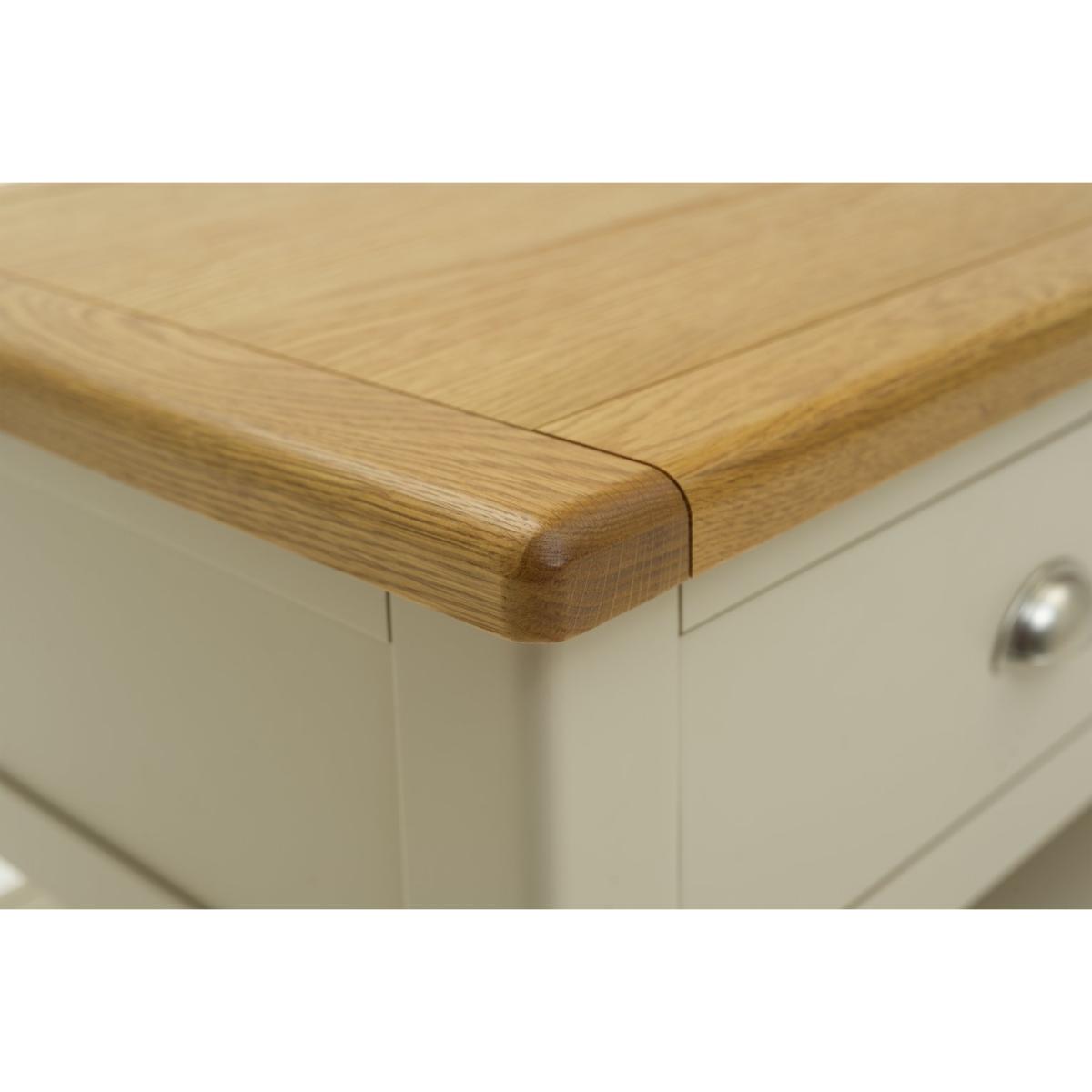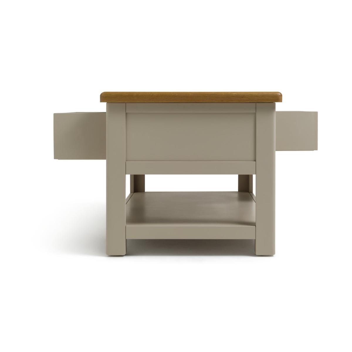 I really like this coffee table because of its versatile two-tone finish, which adds a touch of warmth and visual interest to a variety of interiors. It works well in both traditional and contemporary settings, especially in cosy living rooms or coastal schemes, where the natural oak tones complement neutral palette or soft pastel colour schemes. Practical styling tips include layering with textured accessories like woven trays, stacks of books, or ceramic bowls to create an inviting centrepiece. Its handy drawers and lower shelf make it both functional and stylish, perfect for keeping clutter out of sight while still showcasing decorative accents. Overall, it’s a timeless piece that balances practicality with understated charm.