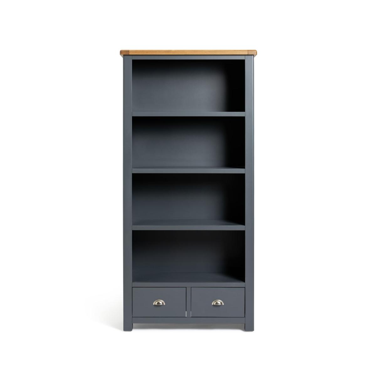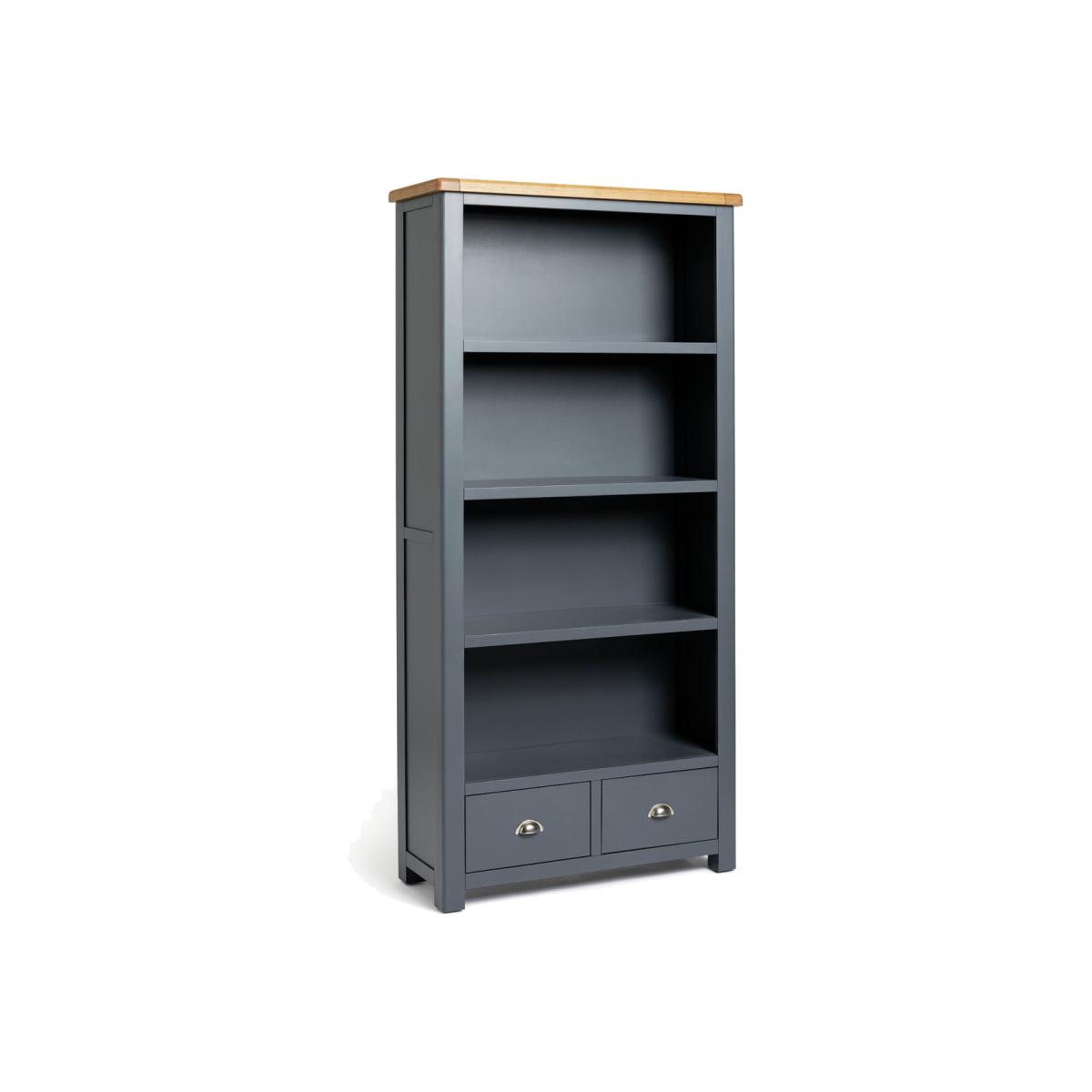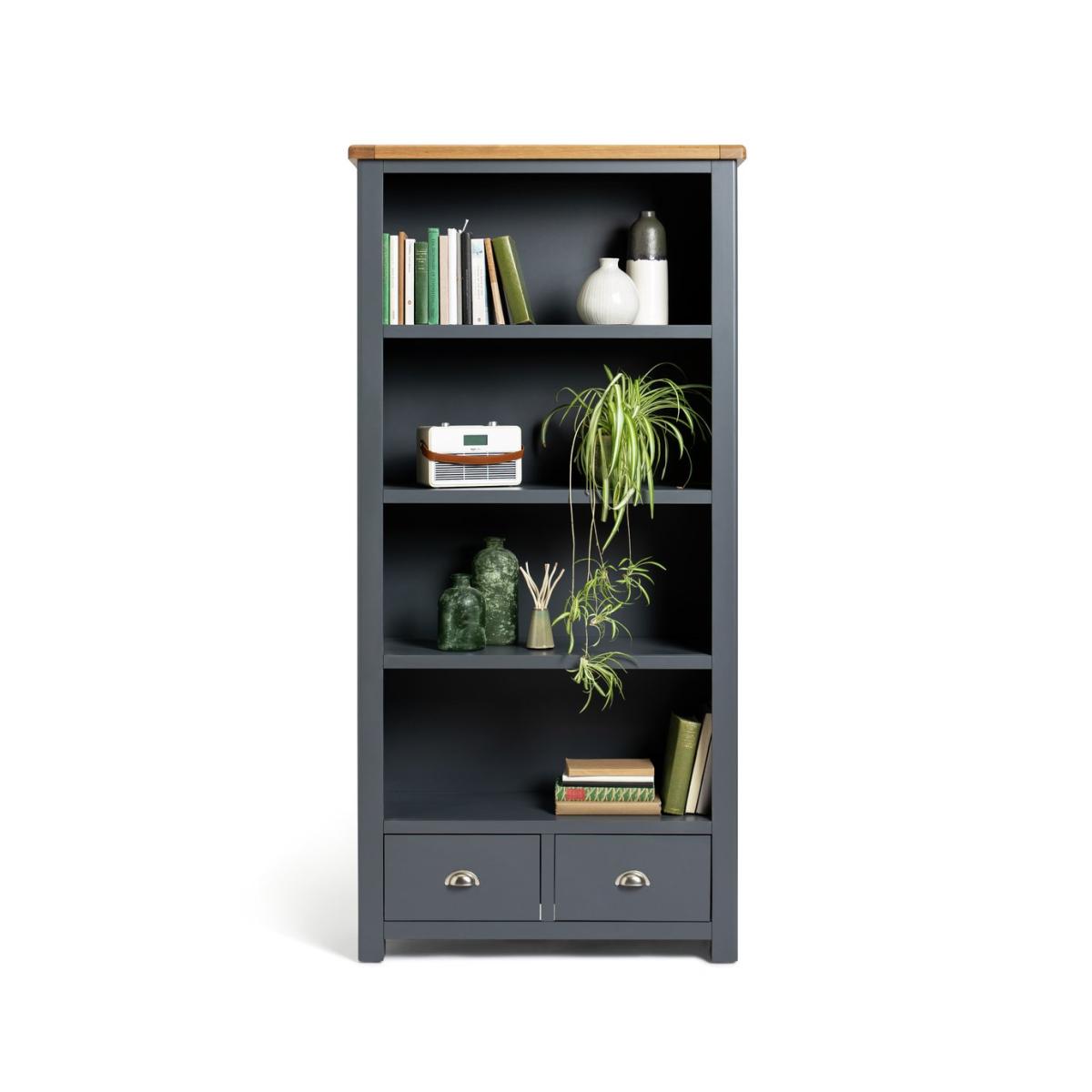 Inspired by country living. The Habitat Kent collection comes fully assembled, so you can put your feet up as soon as it arrives. Its chunky look with rounded edges make this a sturdy bookcase, ideal for a busy household. The top surface shows off the natural grains and knots of the wood and the contrasting dark grey tone is warm and inviting. Perfect for cosying up a lounge.