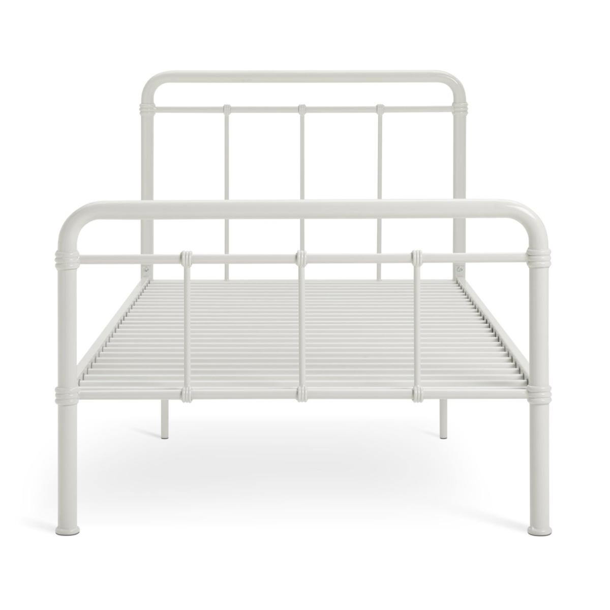You can't go wrong with this white, tubular steel bedframe. Lightweight but robust. Smooth and designed to last, and right at home with any linen you love. Just add a mattress, dress it up, and it's ready for night after night of restful sleep. So easy. Part of the Agnes collection. Bed frame: Single bed. White bed with a metal frame. Includes metal slats. Self-assembly - 2 people recommended. Maximum user weight 100kg. For ages 6 years and over. Suitable for adult use (safety tested to 100kg). Mattress: (not included). Maximum depth of mattress to be used is 16cm. Dimensions: Frame size L196.5, W98, H90cm. Package dimensions: Package 1 size H11, W103, D109cm. General information: Manufacturer's 1 year guarantee.
