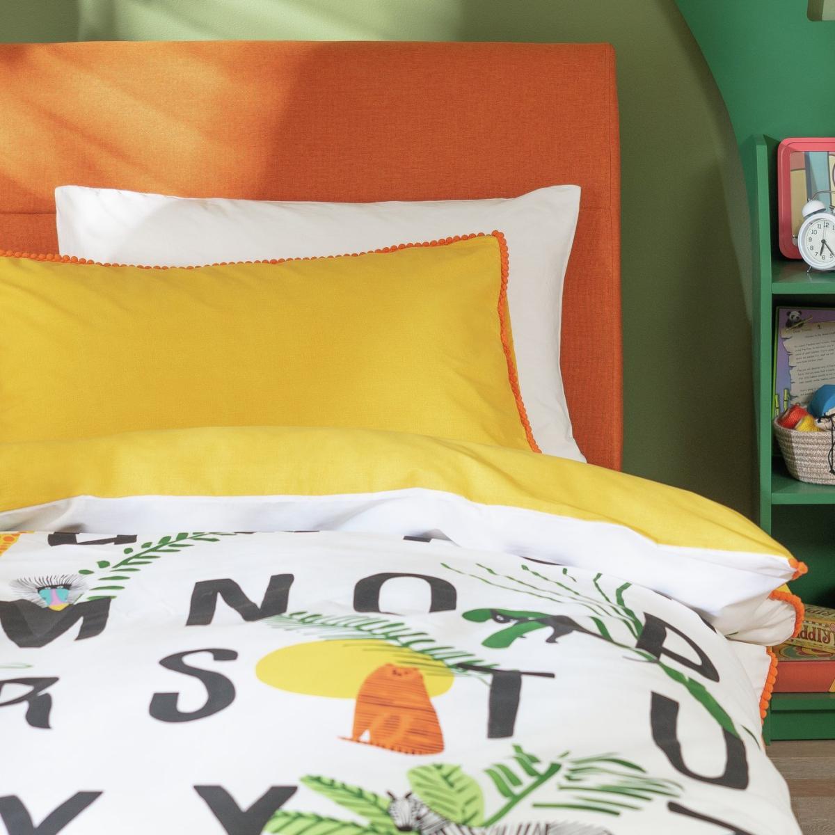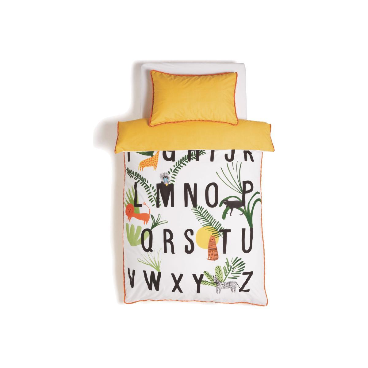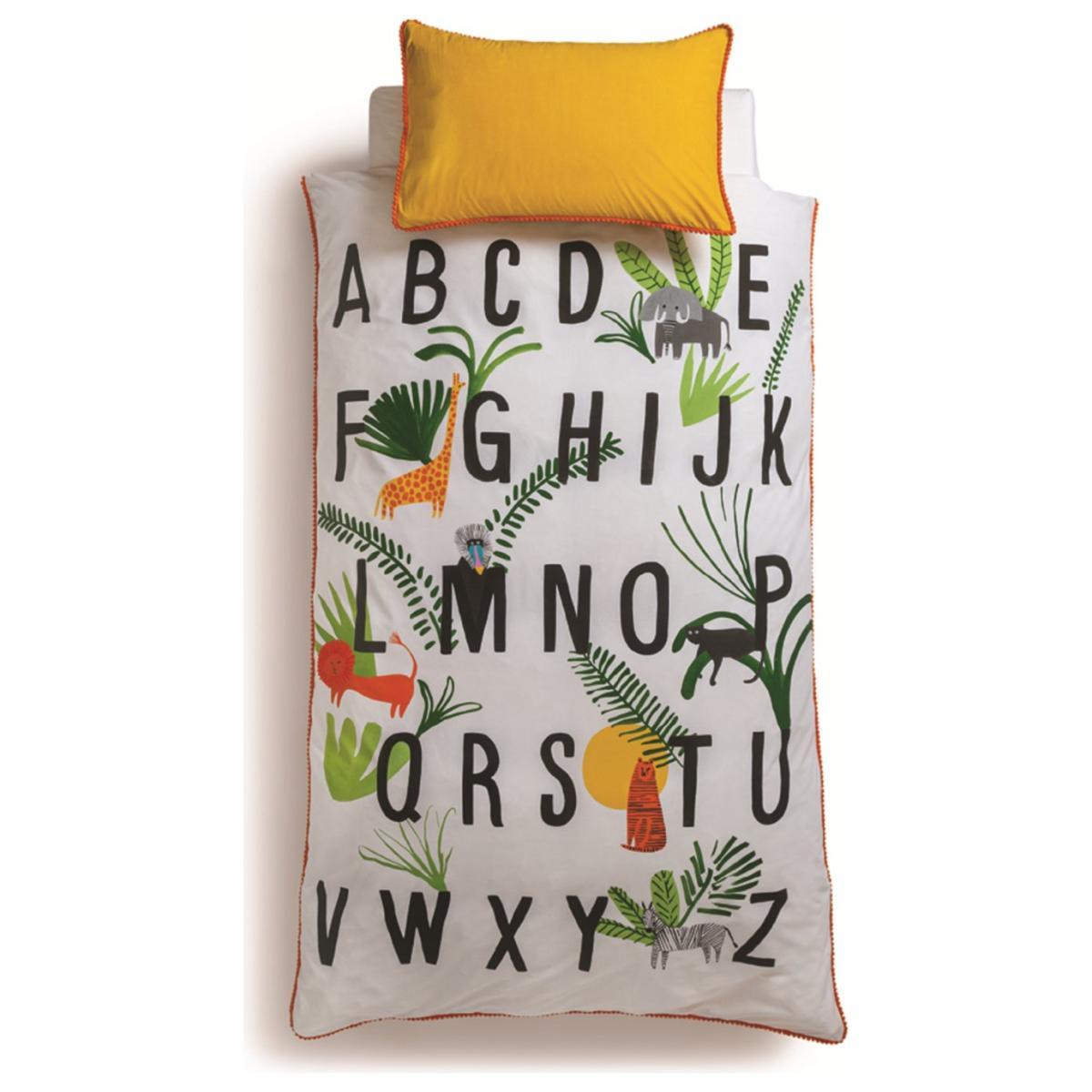 Go from A to Zzzz. This colourful, toddler bed set is alive with tigers, zebras and other animals in an alphabet jungle. Fun and playful, it's a great way to brighten up a child's bedroom and help them learn their letters. Fancy a change? Flip the duvet over to reveal a sunny, yellow side. Perfect for your little monkey.