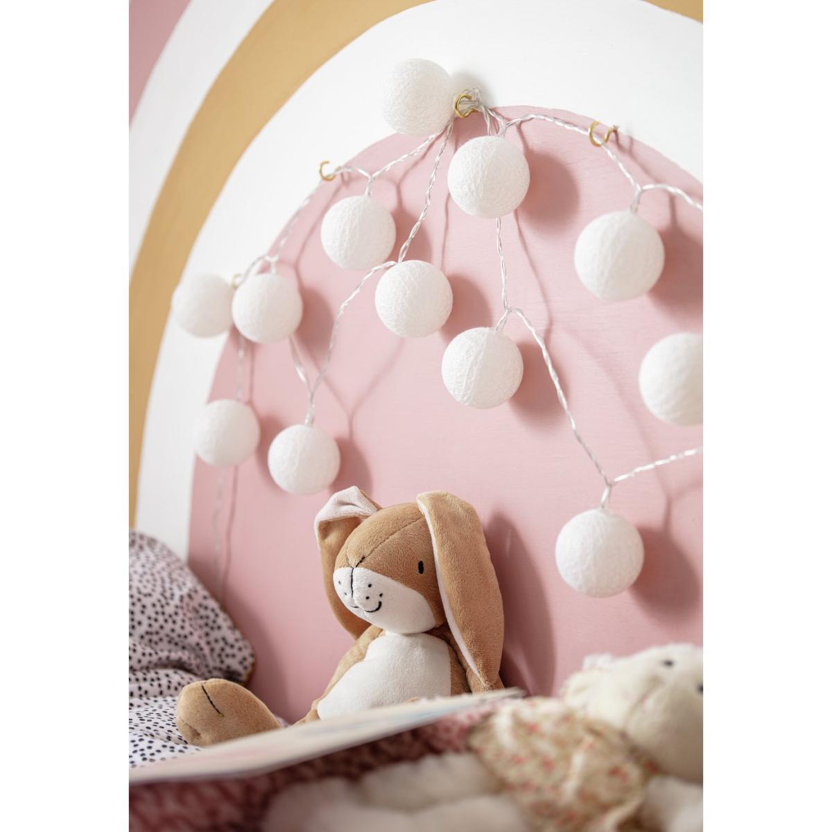 I love these kids' string lights for their subtle, cosy glow and versatile aesthetic. The white colour and soft, spherical bulbs make them a neutral addition that works well in a variety of interiors, from playful nurseries to more minimalist children's rooms. They can be draped across a bed headboard, hung around a window frame, or used to create a whimsical canopy effect. Practical styling tips include pairing them with natural textures like wood or rattan for a warm feel, and keeping wiring discreet to maintain a clean look. These are perfect for adding a gentle ambient light without overwhelming the space, making them both functional and decorative.