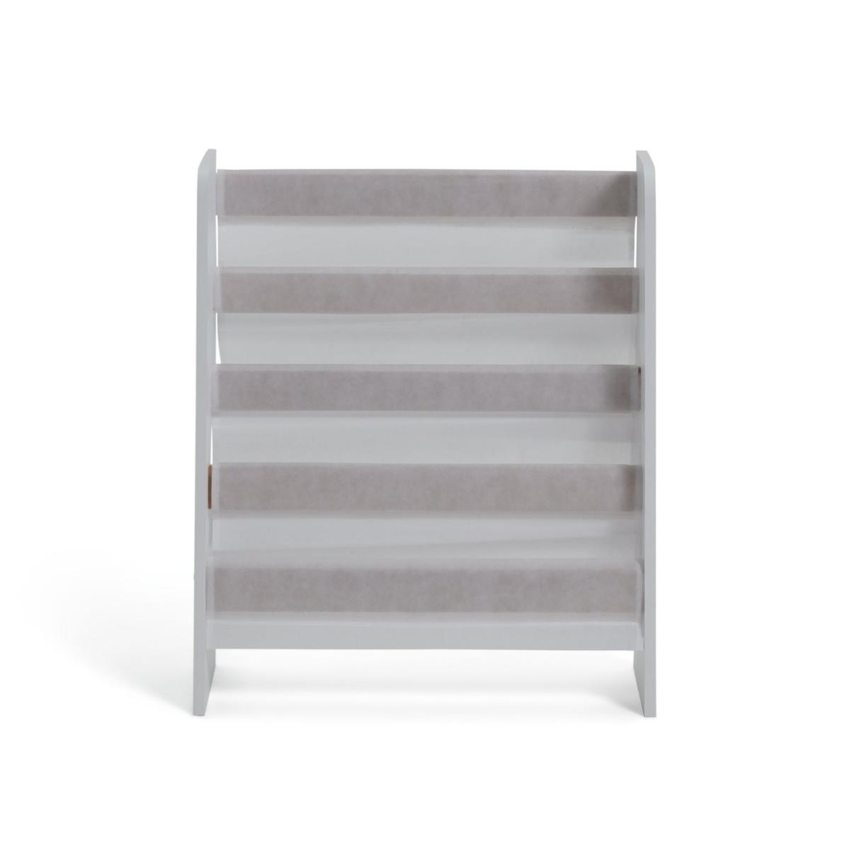 Perfect for budding bookworms, this slim, white book tidy from Argos Home goes well in any playroom or nursery! With 4 sling-style shelves, it's specially made to store oversized childrens' books, allowing them to face forward so kids can easily spot their favourite! Our products are designed with kids in mind and are built to cope with everyday use. Tested to the latest safety regulations, they comply with British and European safety standards. Made from MDF. 5 fixed shelves. Self-assembly. If this product is over 60cm high it must be securely attached to the wall to prevent overturning (fixings included). Dimensions: Size H74, W63, D23.5cm. Weight 5.9kg. Wall fixing recommended. Package dimensions: FSC certified meaning the materials used for this product are responsibly sourced.