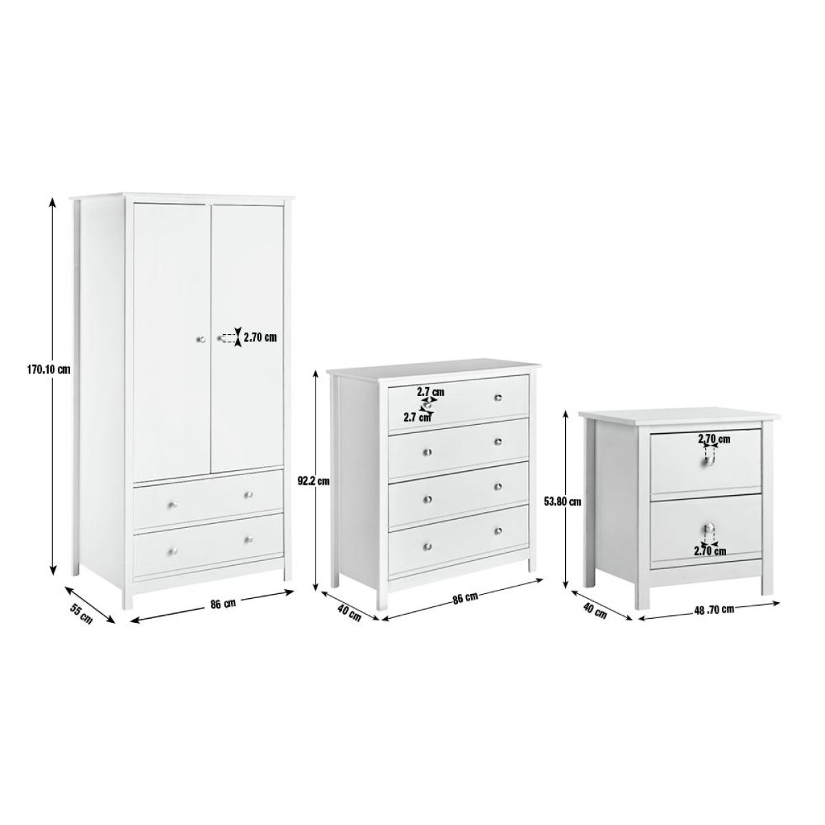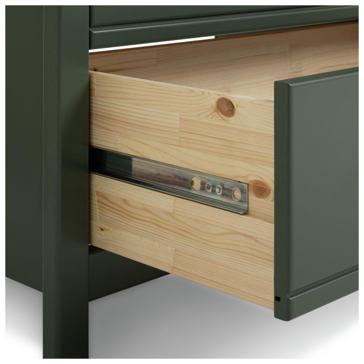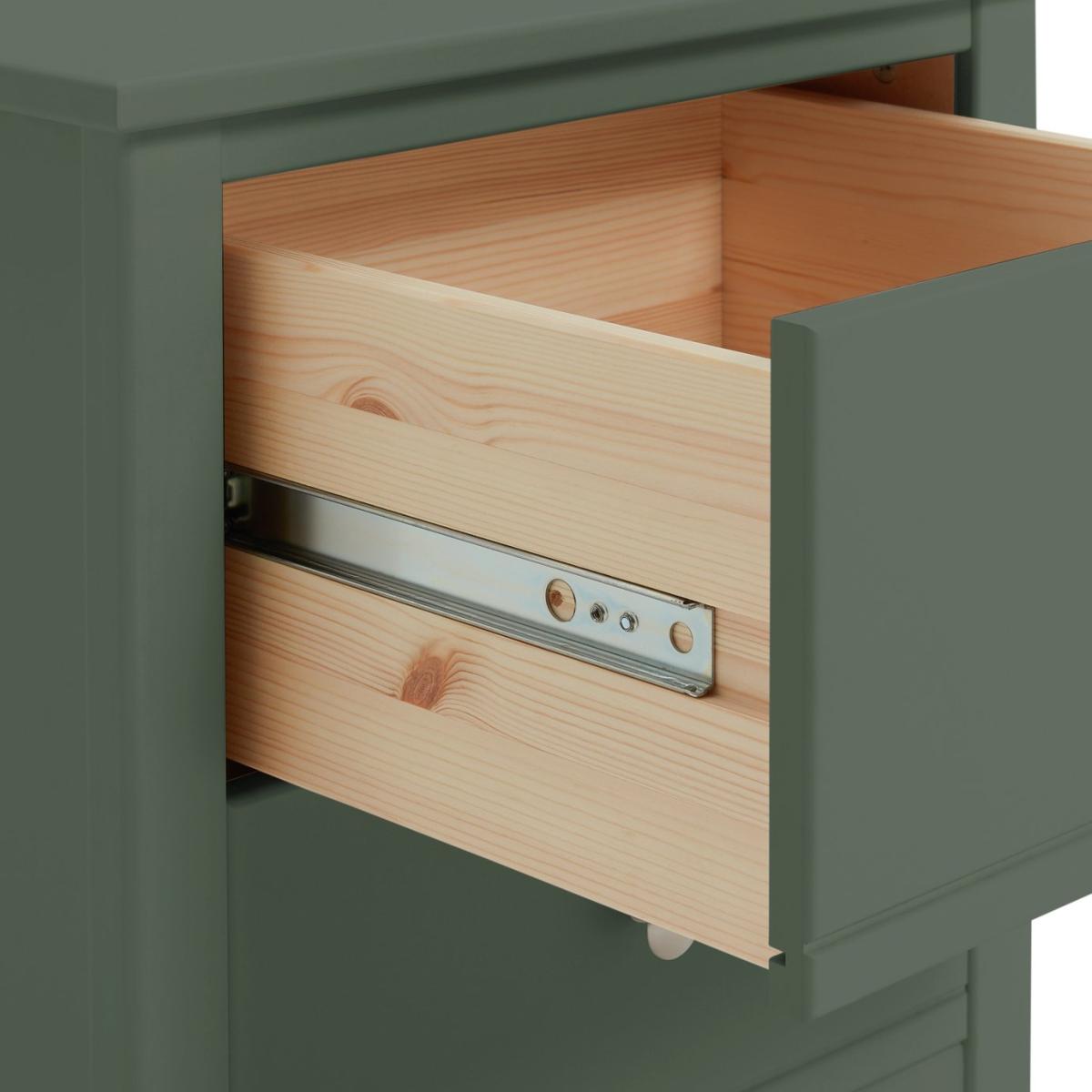 A simple yet classic look, the Brooklyn 3 piece kids bedroom furniture set is made from solid pine and MDF, with a smooth green paint finish. This timeless trio consists of a wardrobe with a wide rail and drawer storage underneath, a 4 drawer chest of drawers and a bedside table. Goodbye clutter, hello neat and tidy room. All the drawers open easily on smooth metal runners, and the metal handles are painted black for a cool contemporary look. Part of the Brooklyn collection. Wardrobe: Size H170.1, W86, D55cm. Internal hanging space H109, W74.8, D52cm. 1 fixed hanging rail. Rail holds up to 15kg. Wardrobe has 2 doors and 2 drawers. Self-assembly - requires 2 people (wall fixings included). Weight 54kg. Chest of drawers: Size H92.2, W86, D40cm. Self-assembly - requires 2 people (wall fixings included). Weight 30.3kg. Bedside table: 1 bedside table(s). Size H53.8, W48.7, D40cm. Internal drawer size H15.3, W32.5, D33.6cm. 2 drawers. Self-assembly requires 1 person. Weight 12kg. General information: Made from MDF and pine. If this product is over 60cm high it must be securely attached to the wall to prevent overturning. Metal handles. Handle size L2.7, W2.7cm. Drawers in this unit have metal runners. We are excited to be welcoming some of our favourite HOME products into the Habitat range. Your product may arrive in Habitat or HOME packaging. Manufacturer's 1 year guarantee.