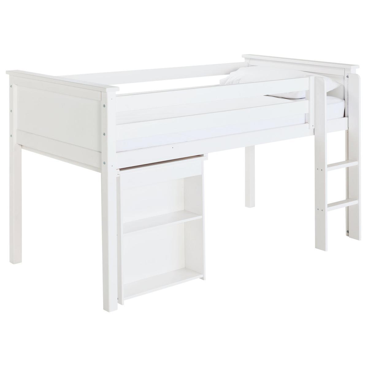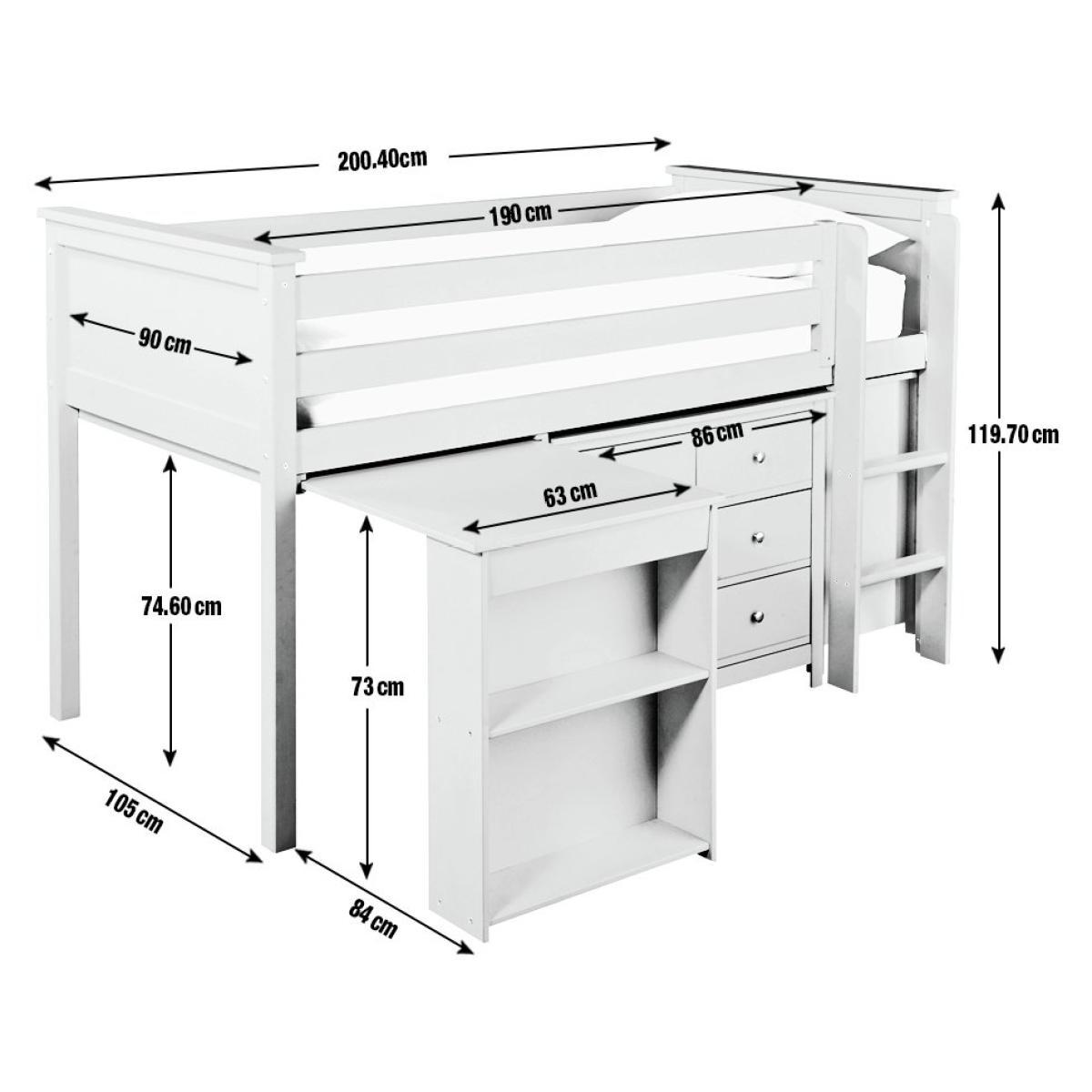 Our soft grey Brooklyn mid sleeper is made from solid pine, with chunky top rails and a sturdy frame. We're always saying how mid sleepers are great for small rooms, letting you make the most of the floor underneath, so with this one we've included a pull-out desk that's been perfectly tailored to sit in that space! Simply add a chair to create a great little work area. Part of the Brooklyn collection. Sleeper:Single bed. Grey bed with a solid wood frame. Includes sprung wooden slats. Self-assembly - 2 people recommended. If this product is over 60cm high it must be securely attached to the wall to prevent overturning. Ladder can be positioned either side of the bed. Maximum user weight per bunk 120kg. For ages 6 years and over. Suitable for adult use (safety tested to 100kg). Mattress:(not included). For safety, maximum depth of mattress to be used is 16cm. Dimensions:Safety rail height 35cm. Frame size L200.3, W105, H119.7cm. Clearance between floor and underside of bed 74.6cm. Desk size H73.5, W60, D89cm. Package dimensions:Package 1 size H13, W36.1, D210.3cm. Package 2 size H6, W61.3, D102.7cm. General information:Manufacturer's 2 year guarantee.