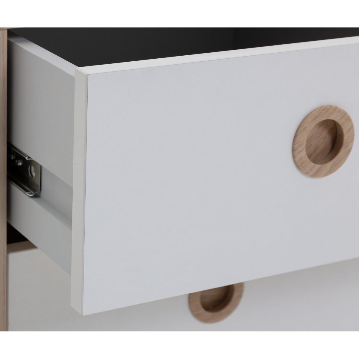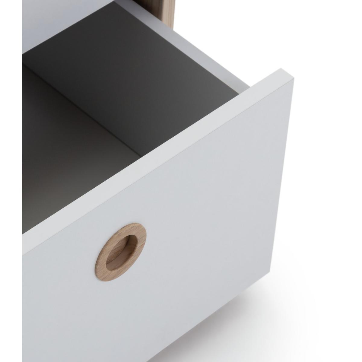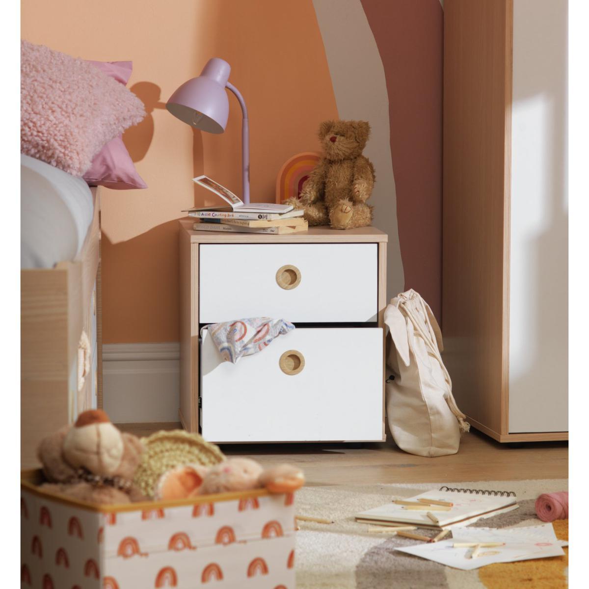 A place for everything and everything in its place. Somewhere to keep your little one's bedtime story, night light and nighttime drink, this Camden 2 Drawer Bedside Chest is pastel perfection. The smooth circular inset handles mean there are no sticky-out bits to bash into. And the easy-glide metal runners on the drawers make them light and easy to open and close. In this soft and cosy 2-tone colour with acacia wood effect, it's practical and pastel perfect. With this collection, you can select pieces individually or save money when you buy as part of a bedroom furniture set for the complete package. Our products are designed with kids in mind and are built to cope with everyday use. Tested to the latest safety regulations, they comply with British and European safety standards. Part of the Camden collection. Made of wood effect. Plastic handles. Additional handles not included. Made from FSC certified timber. 2 drawers with metal runners. Self-assembly - 1 person recommended. If this product is over 60cm high it must be securely attached to the wall to prevent overturning. Dimensions: Size H45.7, W39.5, D39.6cm. Internal drawer H11.5, W32.8, D34cm. Handle size: L5, W5cm. Weight 13kg. Package Dimensions: Package 1 dimensions: H45, W42, D13cm. Package 1 weight: 13kg. General information:We are excited to be welcoming some of our favourite HOME products into the Habitat range. Your product may arrive in Habitat or HOME packaging. Manufacturer's 1 year guarantee.