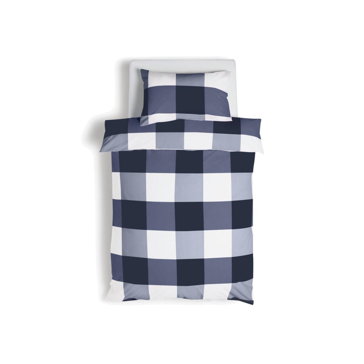 We love the blues! Our bold, navy and white check, single bed set, really rocks this cool combination. With this modern yet classic design, you simply can't go wrong. Perfect for a teen bedroom or a smart guest room. Does it tick the fresh and contemporary box? Check and check. This blue tartan duvet set includes a matching pillow case for a coordinated look. Made in practical, durable polycotton, this bedding is soft and light to the touch and easy to keep looking fresh. Set comprises of 1 duvet cover and 1 pillowcase. Blue Check pattern. Finish: woven. Size L200 x W135cm. Pillow case length 75cm, Width 50cm. Standard pillowcase (s). Reversible. Buttons for fastening. Machine washable at 40 C. Suitable for tumble drying. 144 thread count.