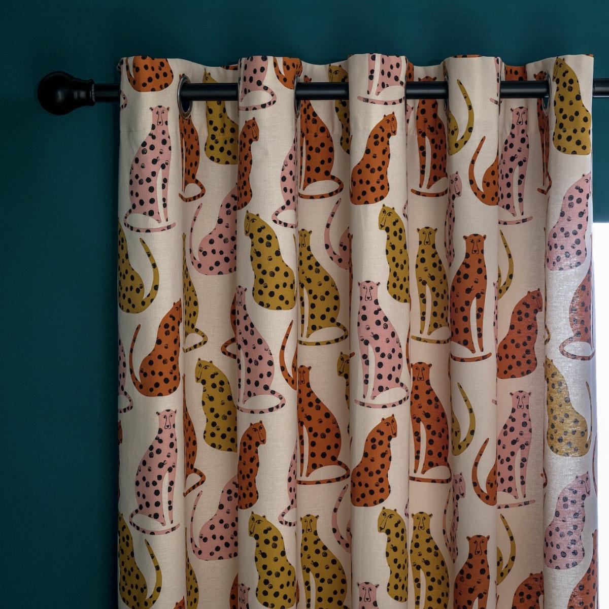 I love these cheetah print curtains for adding a playful touch to a child's room or nursery, thanks to their vibrant and fun pattern. The eyelet design makes them easy to hang and perfect for creating a neat, tailored look. These curtains work well in lively, eclectic interiors or as a statement piece in a neutral nursery to inject some character. Practical styling tips include pairing them with simple or solid-coloured bedding and accessories to let the pattern stand out, or coordinating with other animal-themed decor for a cohesive feel. Their bright, bold print can brighten a space while adding a touch of fun, making them versatile and easy to incorporate into a range of playful or modern interiors.