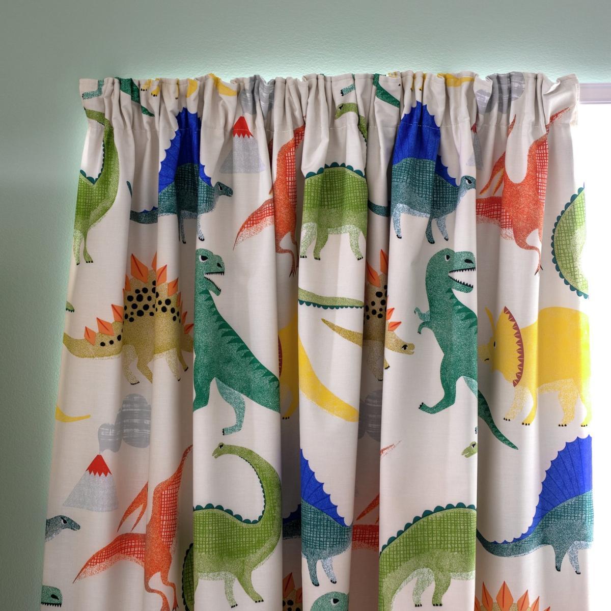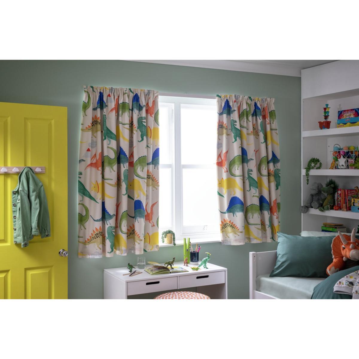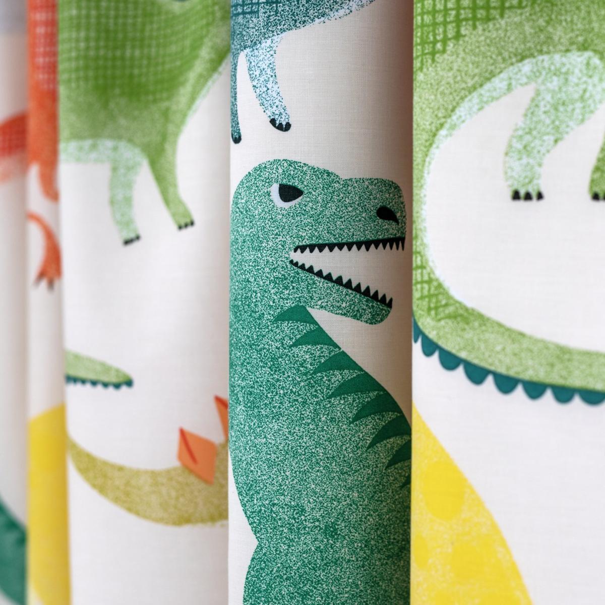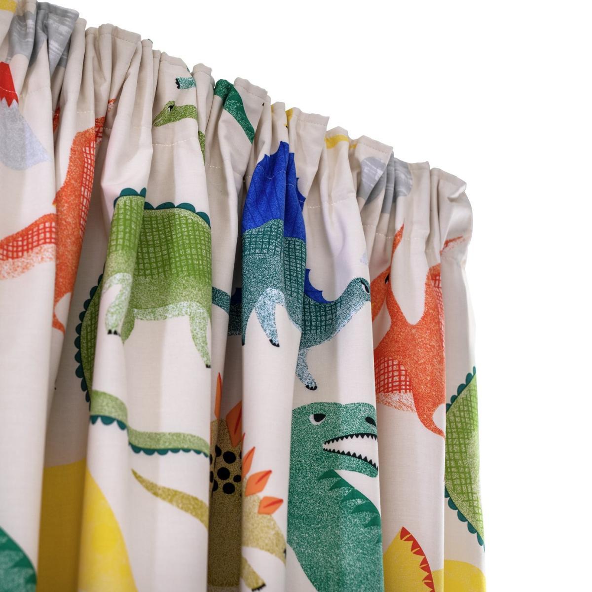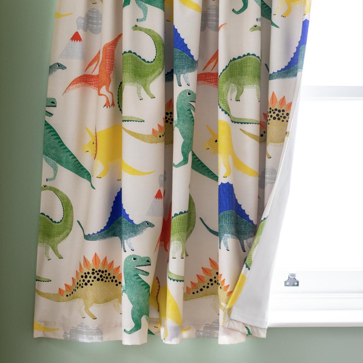 Rather roarsome. This pair of characterful curtains are great fun for your child's bedroom. Fully lined and made from 100% cotton, they feature an all-over dinosaur print with plenty of colourful details. Look out for Diplodocus, Triceratops and lots in between. Kids will love spotting their favourite. And the blackout lining helps little monsters sleep longer. Hello dino-dreams and sauras-snores.