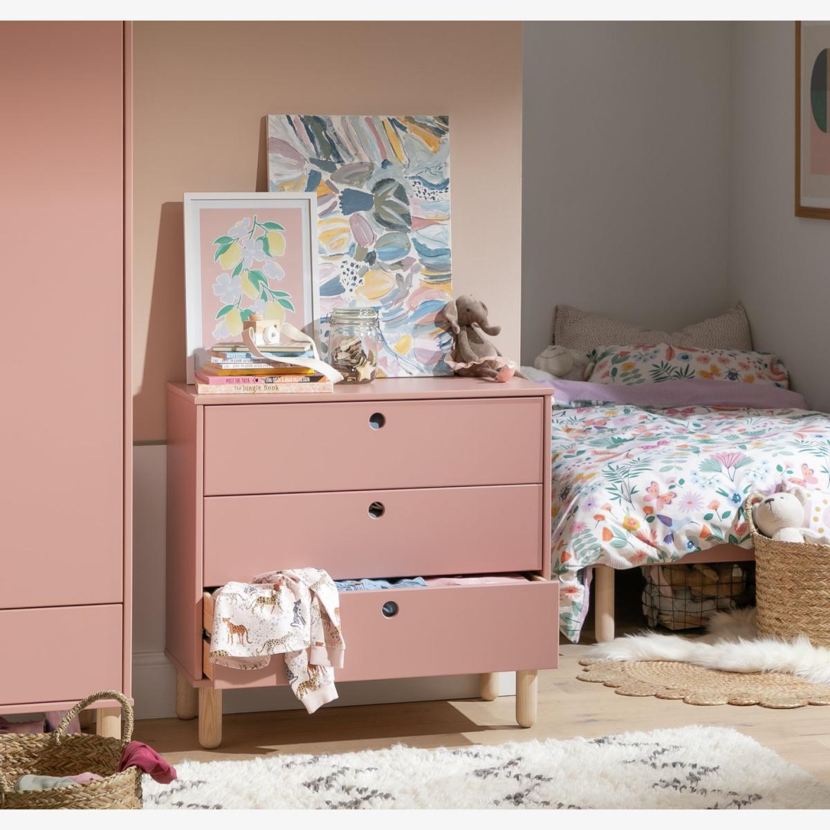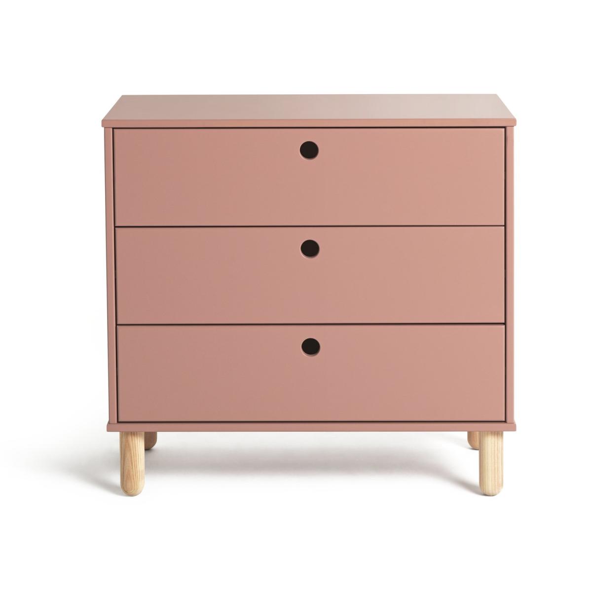 Eden's a cool kids chest of drawers that knows how to do its job. With 3 deep easy-glide drawers there's plenty of precious storage space in one pink modern unit. So, that's socks, smalls, tops and PJs taken care of. And check out the round cut out handles and curved solid ash feet, they all add to Eden's smooth contemporary looks. With space on top for a lamp, book and bedtime buddy. Neat. Want to take the look further? Check out the full Eden collection. Part of the Eden collection. Made of MDF and pine. 3 drawers with metal runners. Packed flat - 1 person recommended (includes wall fixings). If this product is over 60cm high it must be securely attached to the wall to prevent overturning. Dimensions: Size H75.1, W78.8, D39.5cm. Large internal drawer H15.3, W71.6, D33.6cm. Weight 28kg. Package Dimensions: Package 1 dimensions: H14.7, W41.4, D89.5,. Package 1 weight: 28.8kg. FSC certified meaning the materials used for this product are responsibly sourced. General information: We are excited to be welcoming some of our favourite HOME products into the Habitat range. Your product may arrive in Habitat or HOME packaging. Manufacturer's 1 year guarantee.
