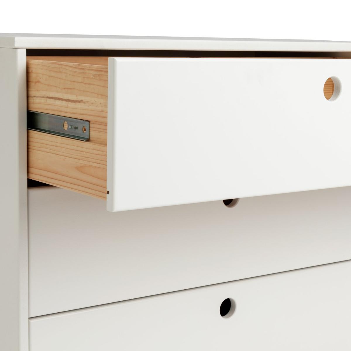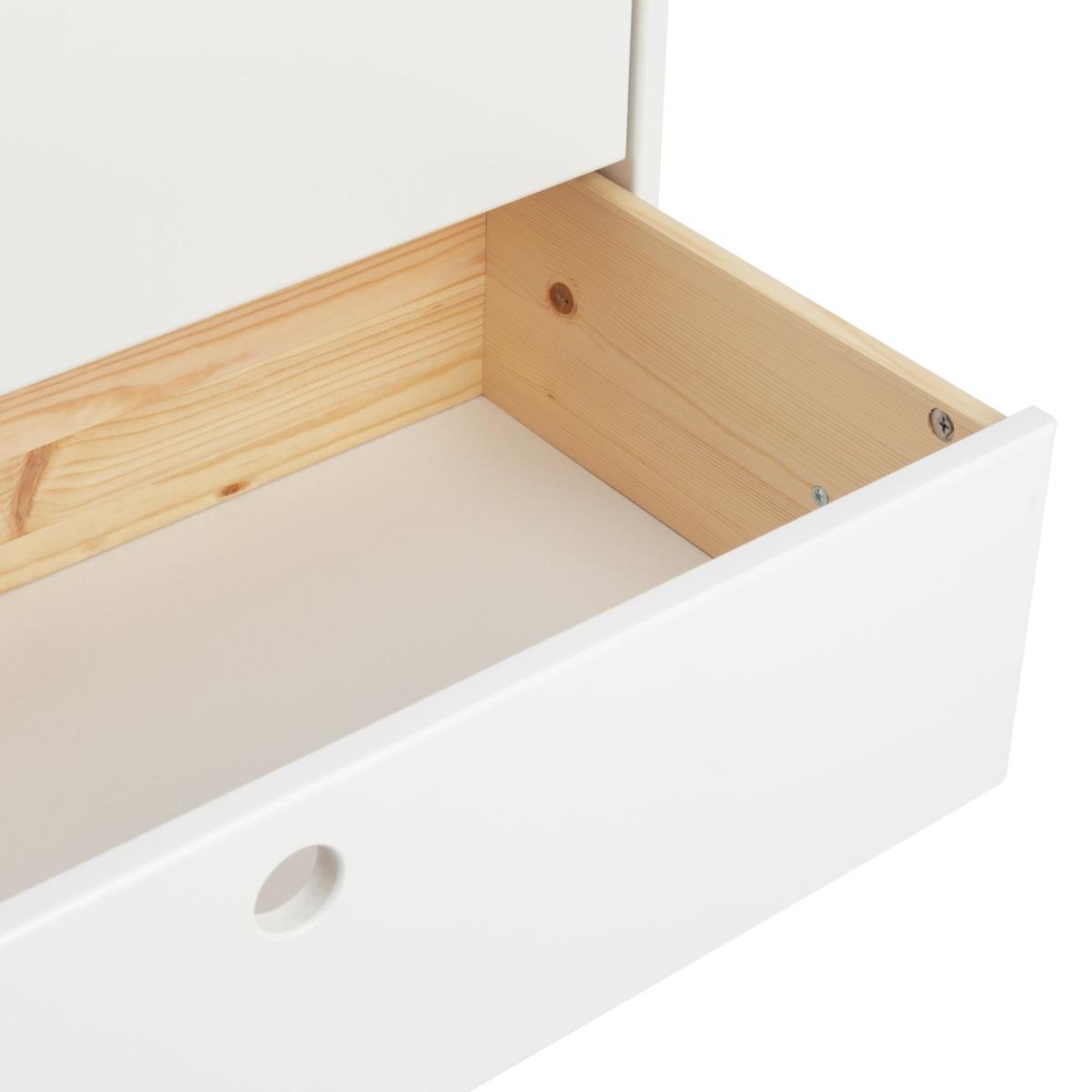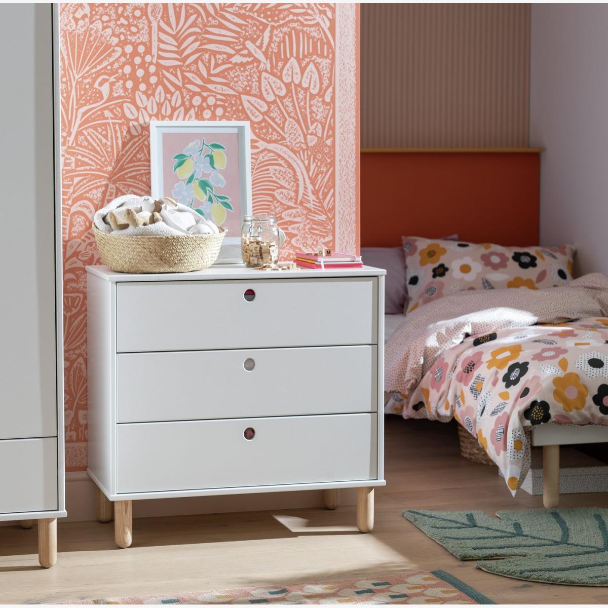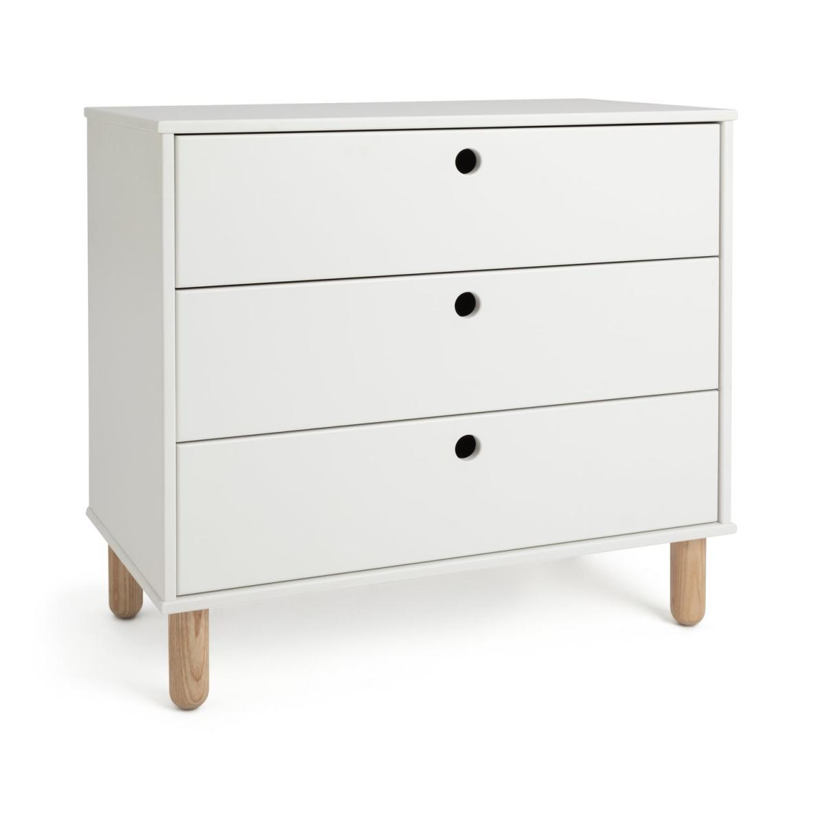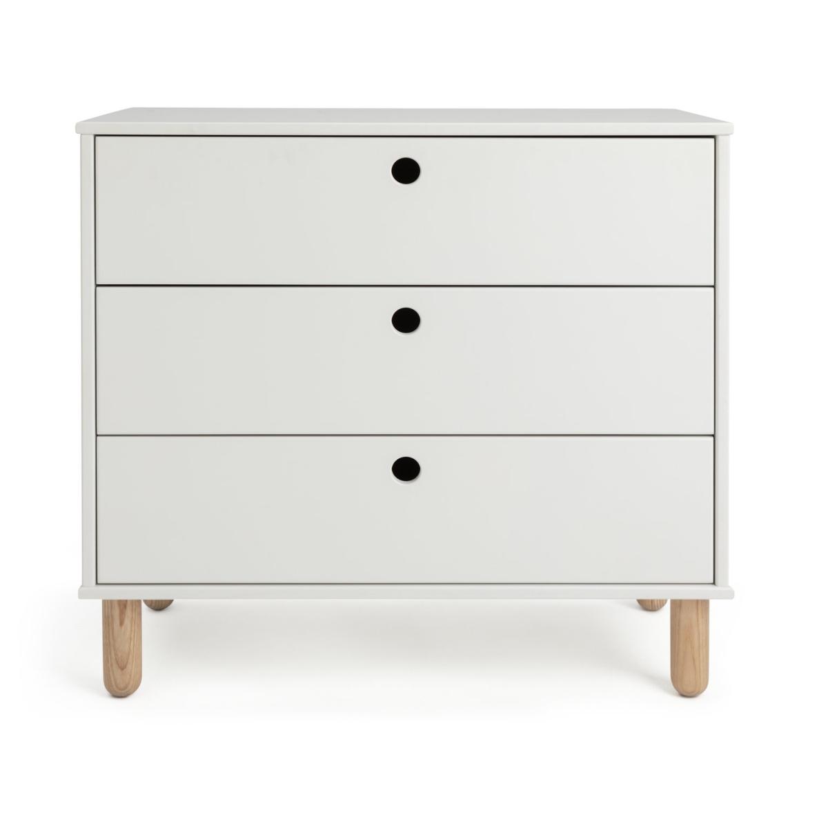Eden's a cool kids chest of drawers that knows how to do its job. With 3 deep easy-glide drawers there's plenty of precious storage space in one white modern unit. So, that's socks, smalls, tops and PJs taken care of. And check out the round cut out handles and curved solid ash legs, they all add to Eden's smooth contemporary looks. With space on top for a lamp, book and bedtime buddy. Neat. Want to take the look further? Check out the full Eden collection. Part of the Eden collection. Made of MDF and pine. 3 drawers with metal runners. Packed flat - 1 person recommended (includes wall fixings). If this product is over 60cm high it must be securely attached to the wall to prevent overturning. Dimensions: Size H75.1, W78.8, D39.5cm. Large internal drawer H15.3, W71.6, D33.6cm. Weight 28kg. Package Dimensions: Package 1 dimensions: H14.7, W41.4, D89.5,. Package 1 weight: 28.8kg. FSC certified meaning the materials used for this product are responsibly sourced. General information: We are excited to be welcoming some of our favourite HOME products into the Habitat range. Your product may arrive in Habitat or HOME packaging. Manufacturer's 1 year guarantee.