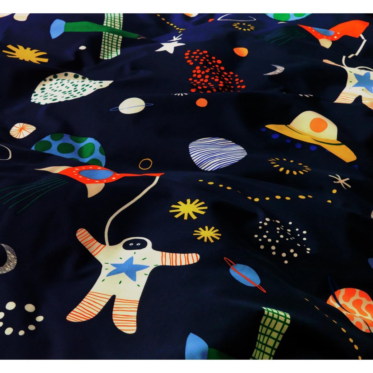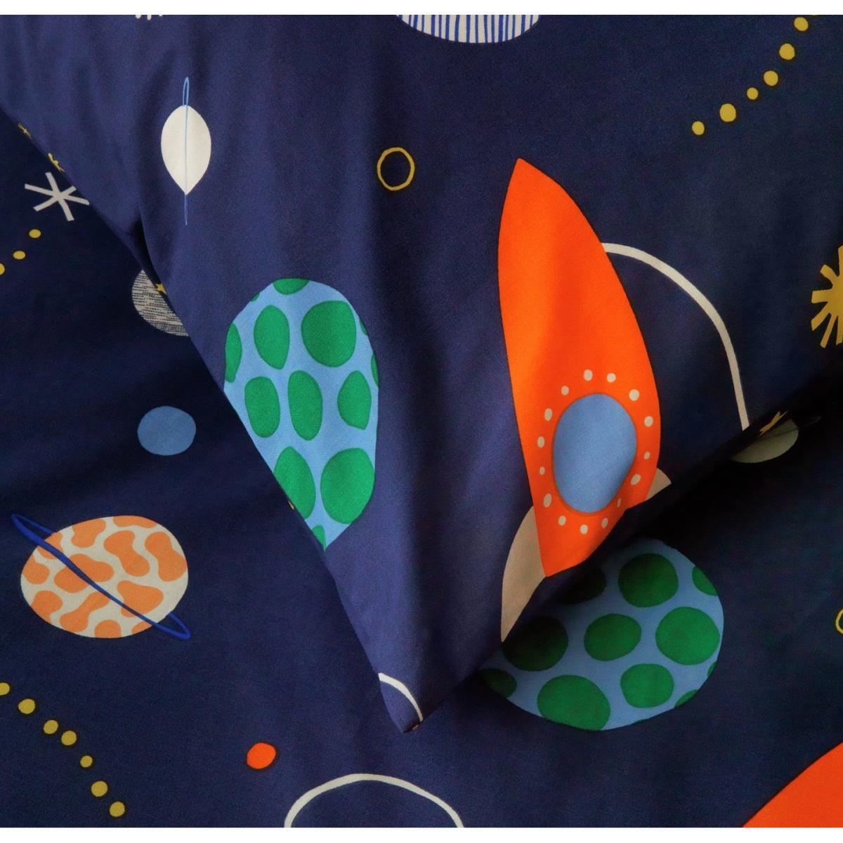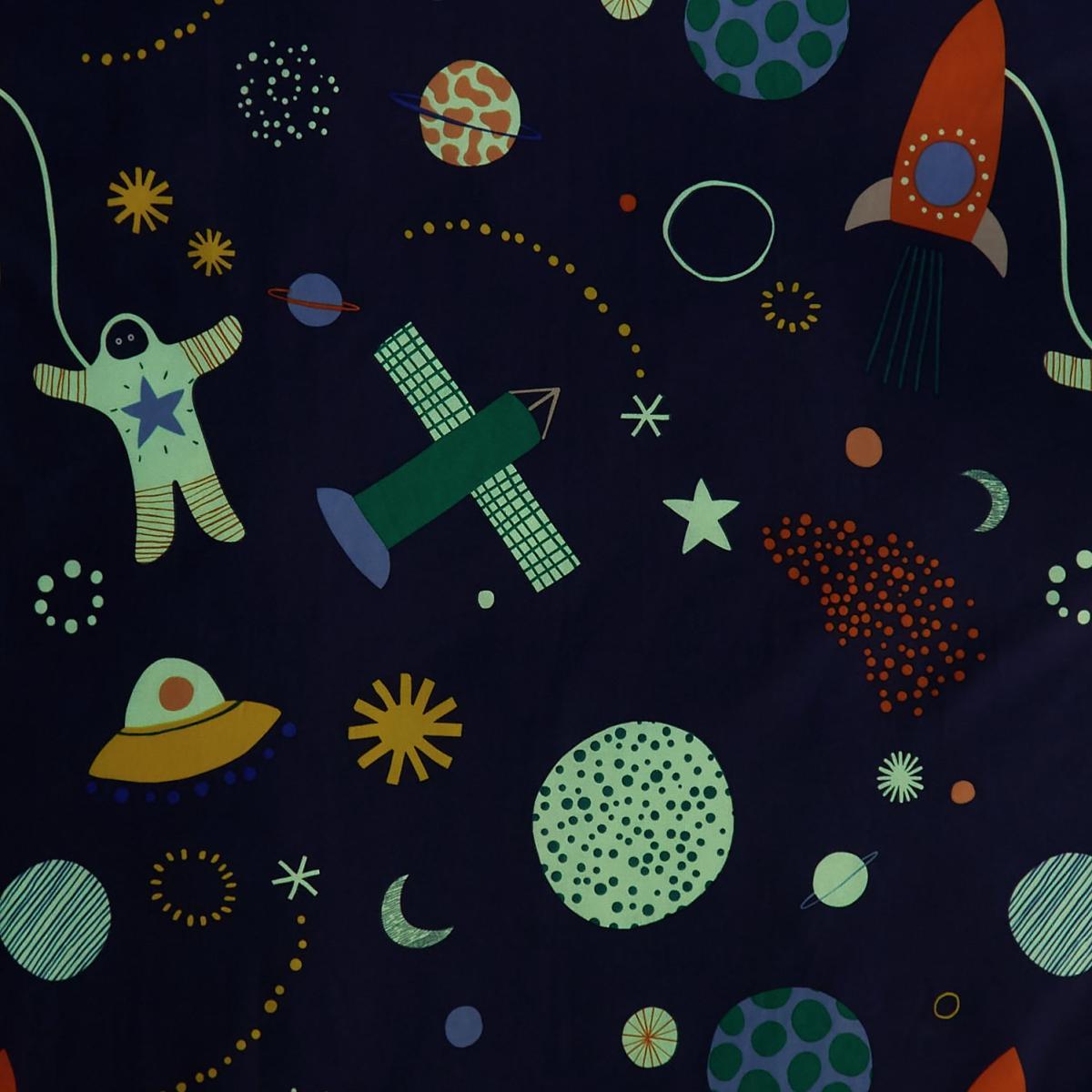 Who's ready for drift off? Our space-tastic duvet set covered in colorful cosmic characters is so cute. Your youngster will love watching planets, satellites and rockets glow in the dark when it's time for lights out. It's soft and snuggly for a cosy night's sleep. Buttons make for quick and easy sheet changes, too. How about a bedtime story?