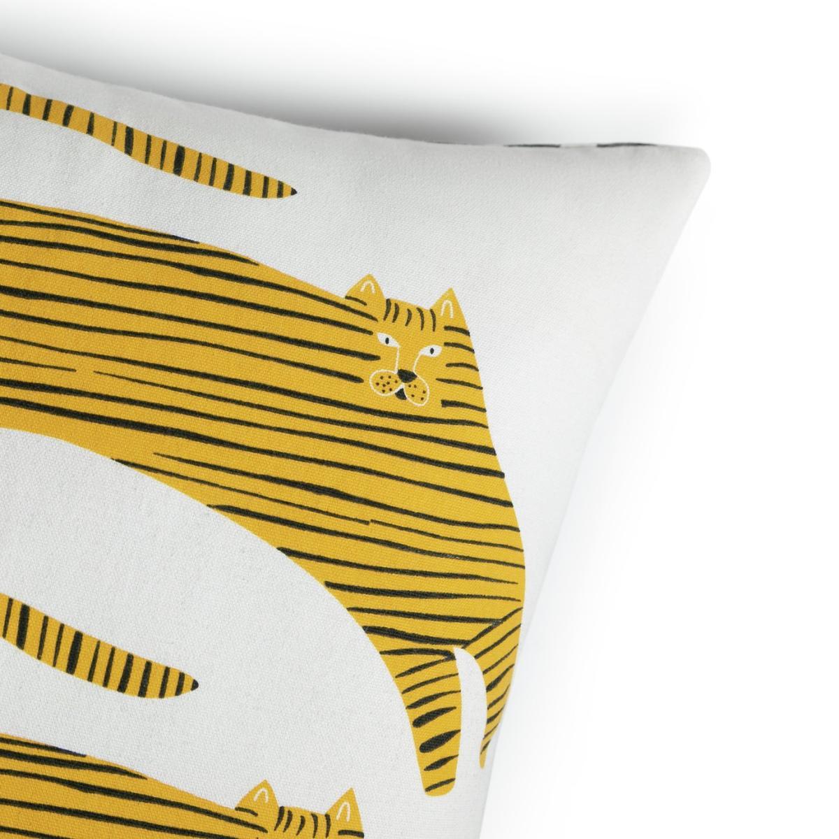 Earn your stripes with our tiger print reversible cushion. With big cats on one side and black spots on the other, mix and match as much as you like. Bring a playful, quirky edge to your living room or bedroom with its soft, endearing design. Made with a recycled polyester filler, it's eco-friendly too. This animal print cushion is a cheerful treat alongside neutral tones. Or dial up the drama of an already colourful space. Wild and wonderful.