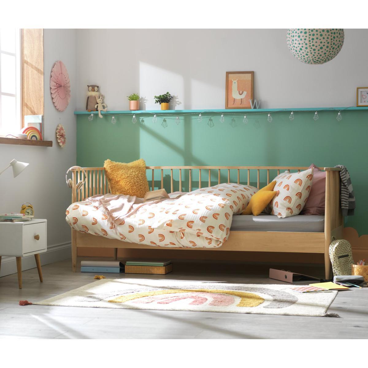Round the clock comfort for the kids. Our birch day bed is a space-saving solution for your youngster's room or guest room. One comfy mattress included, so all you need to do is pop it on the wooden slats for a restful night's sleep. Daytime chill? Arrange some cushions along the back and it's a spacious sofa. The natural wood and spindle style has a fresh, contemporary feel. Snooze or sit, this bed's a hit. Love this look? We've got different colours to choose from in our Knox collection. Beautify that bedroom with our rugs, throws and cushions. Part of the Knox collection. Bed frame:Single bed. Natural bed with a mdf and solid wood frame. Includes wooden slats. Self-assembly - 1 person recommended. Maximum user weight 100kg. For ages 2 years and over. Suitable for adult use (safety tested to 100kg). Mattress:Requires 1 mattress (included). Silentnight mattress. Medium feel mattress. Knit cover with micro quilt finish. Rotate mattress regularly. Dimensions: Frame size L99.5, W80.7, H199cm. Mattress size L190, W90, D16cm. Package dimensions:Package 1 size H112, W94, D14cm. Package 2 size H202, W78, D9cm. General information:Manufacturer's 1 year guarantee.