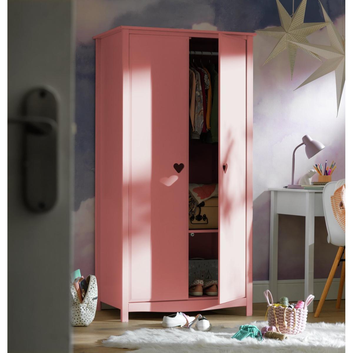 Mama Mia. This pink Mia wardrobe will add some sweet storage style to your kid's bedroom. The smooth design means no knobs to knock into. Instead, both doors have cute cut-out heart handles. Inside there's a full width hanging rail and a fixed lower shelf. So, plenty of room for clothes, shoes and cuddle buddies. Our products are designed with kids in mind and are built to cope with everyday use. Tested to the latest safety regulations, they comply with British and European safety standards. Part of the Mia collection. Made of MDF and pine. 2 doors. 1 fixed hanging rail. Hanging rail holds up to 15kg. 1 fixed shelf. Self-assembly - 2 people recommended (includes wall fixings). If this product is over 60cm high it must be securely attached to the wall to prevent overturning. Dimensions: Size H170.1, W86, D55cm. Internal hanging space H114, W74.8, D52cm. Weight 52kg. Package Dimensions: FSC certified meaning the materials used for this product are responsibly sourced. General information: We are excited to be welcoming some of our favourite HOME products into the Habitat range. Your product may arrive in Habitat or HOME packaging.