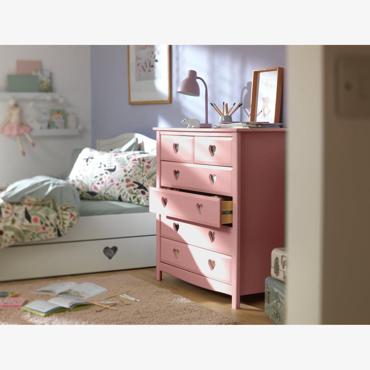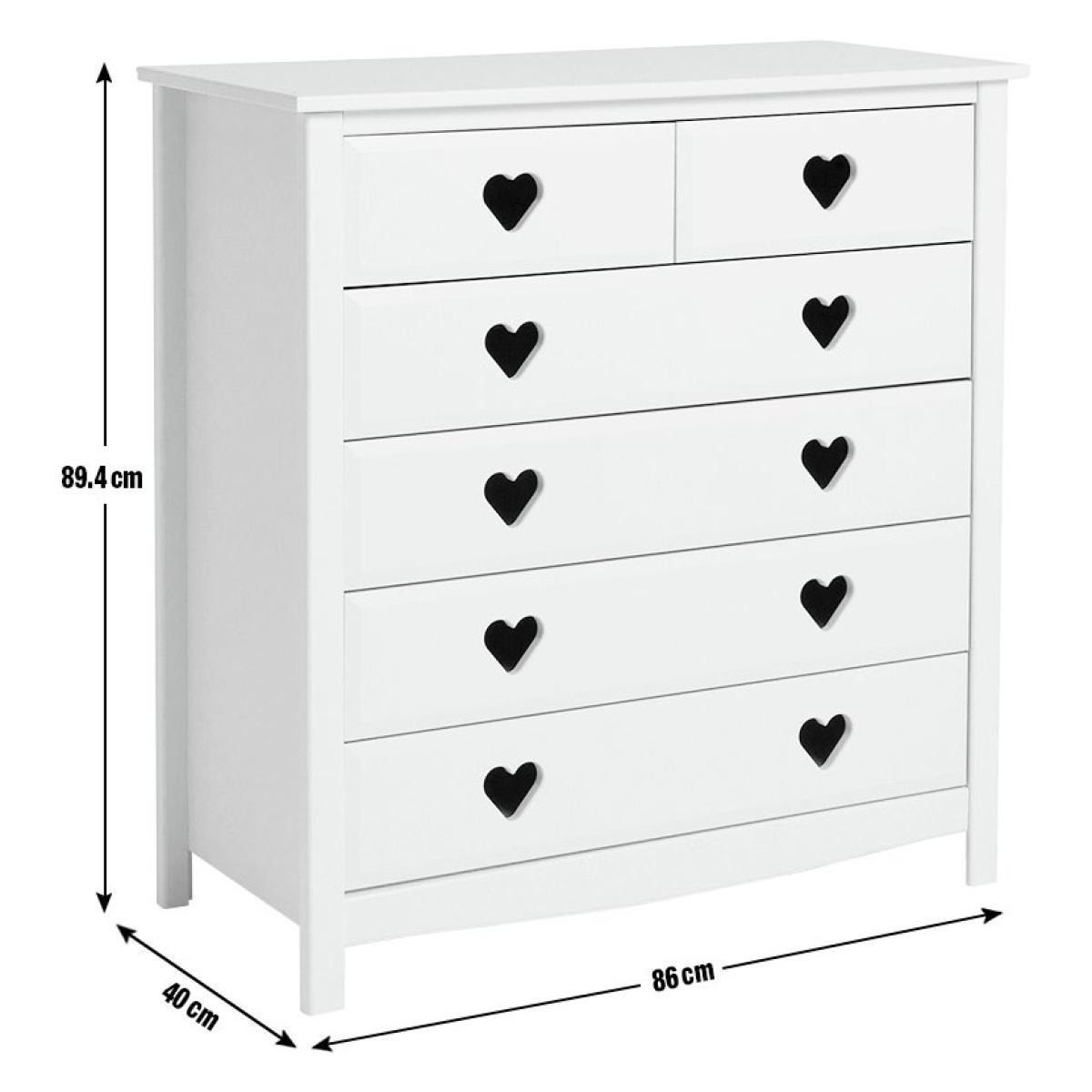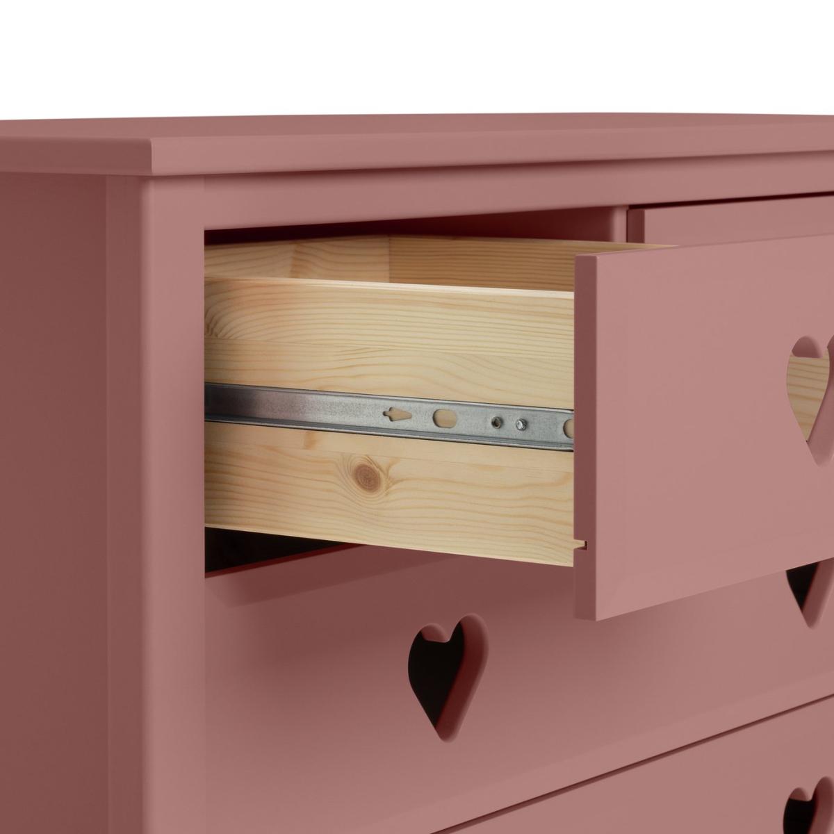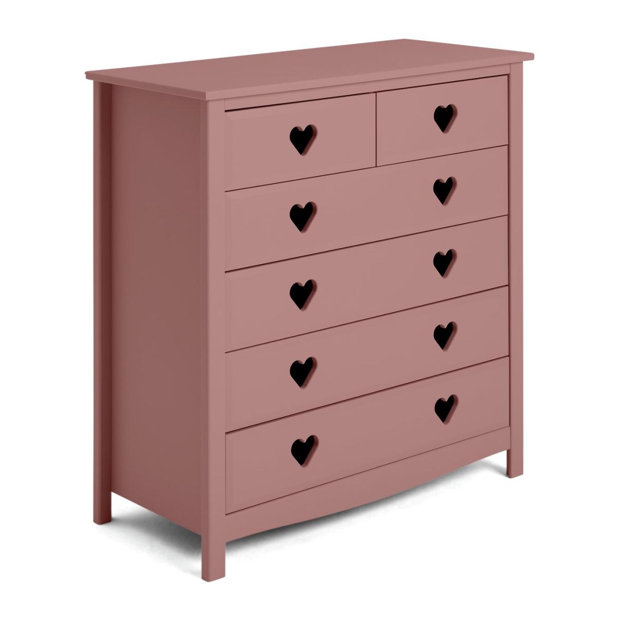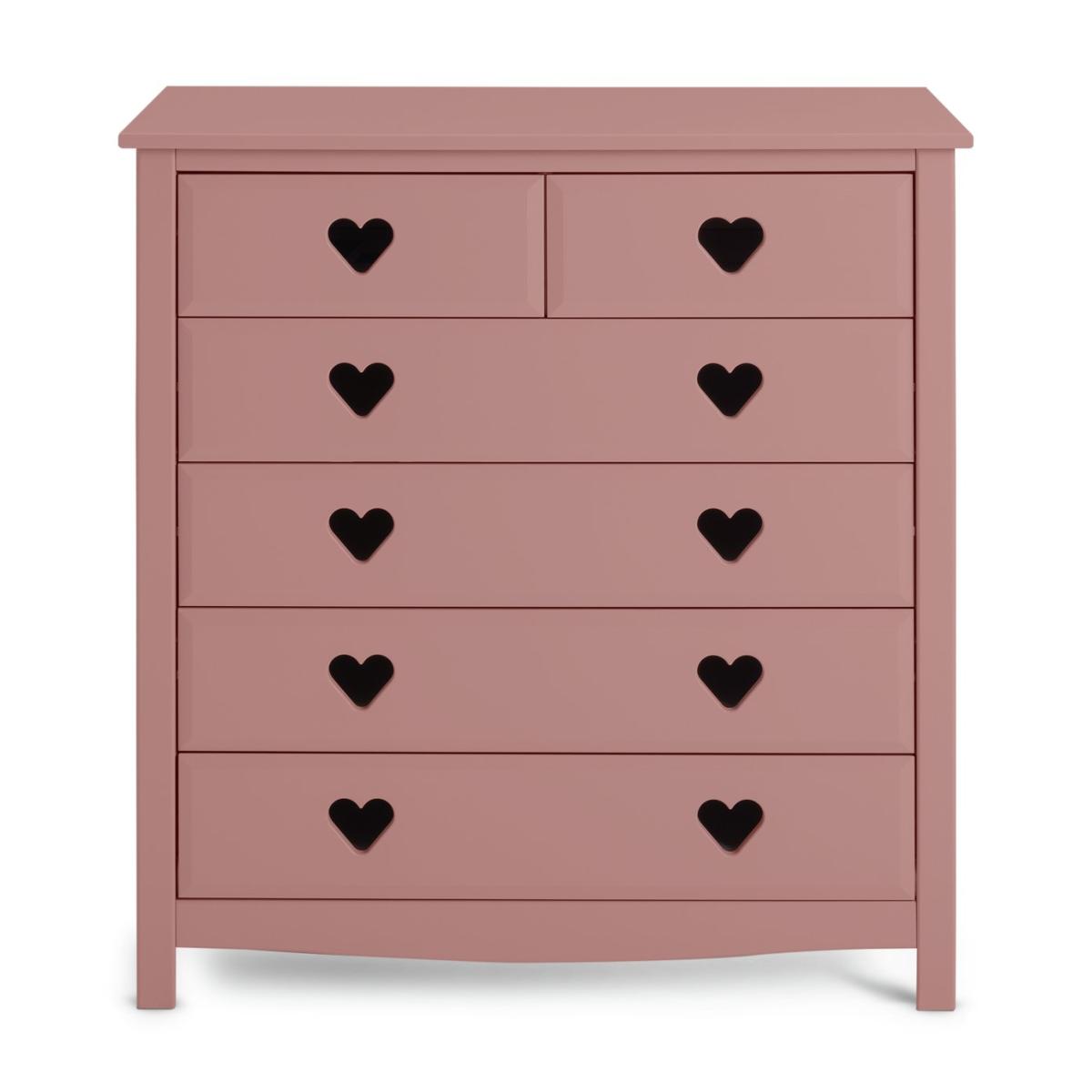 Mama Mia. This pink Mia chest of drawers will add some sweet storage style to your kid's bedroom. The smooth design means no knobs to knock into. Instead, there are cute cut-out heart handles. And all 6 drawers glide open easily on metal runners. Plus, there's plenty of room on top for cuddly bedtime buddies. Our products are designed with kids in mind and are built to cope with everyday use. Tested to the latest safety regulations, they comply with British and European safety standards. Part of the Mia collection. Made of MDF and pine. 6 drawers with metal runners. Self-assembly - 2 people recommended (includes wall fixings). If this product is over 60cm high it must be securely attached to the wall to prevent overturning. Dimensions: Size H89.4, W86, D40cm. Internal drawer H11.3, W32.5, D33.6cm. Large internal drawer H11.3, W71.6, D33.6cm. Weight 29.8kg. Package Dimensions: Package 1 dimensions: H14.5, W45.8, D94,. Package 1 weight: 31kg. FSC certified meaning the materials used for this product are responsibly sourced. General information: We are excited to be welcoming some of our favourite HOME products into the Habitat range. Your product may arrive in Habitat or HOME packaging. Manufacturer's 2 year guarantee.