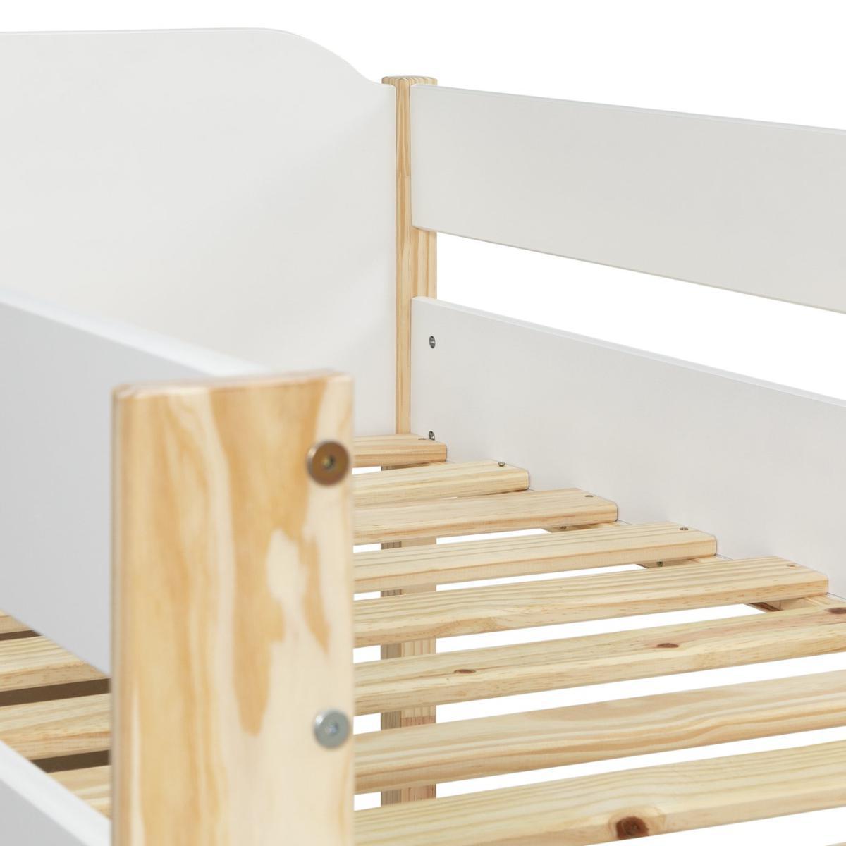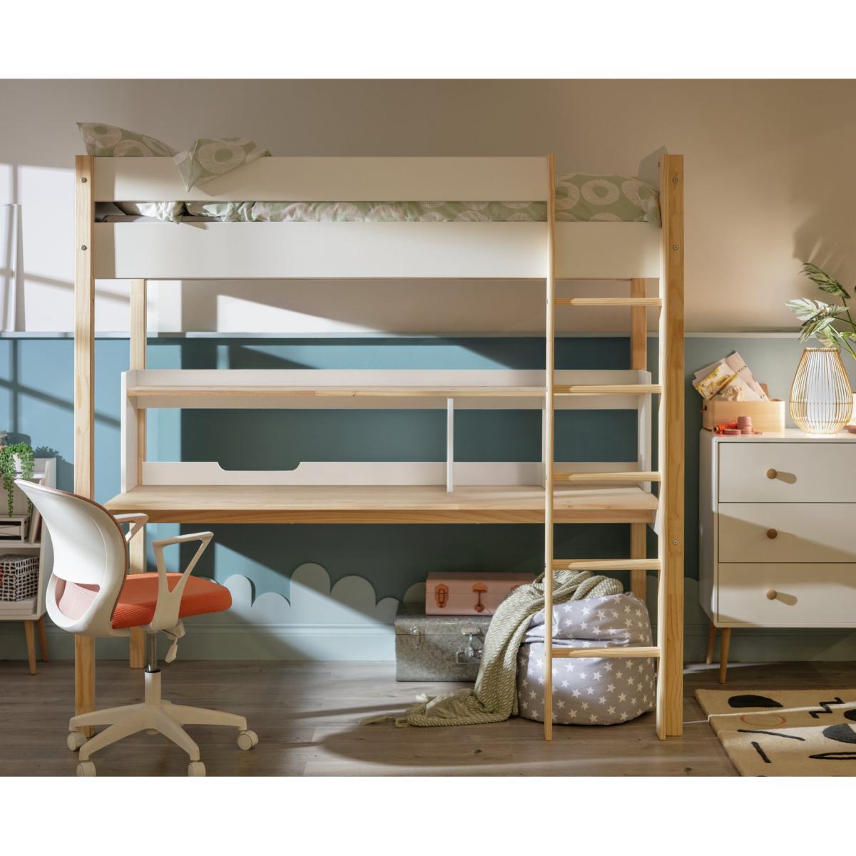 A sleep and study area all in one. What a smart space saver. In natural oak and fresh white our multifunctional high sleeper sits well with bright backdrops or calm pastels. Below the high sided top bunk is a wide desk with a roomy shelf. The sweet spot for homework, games and reading. With plenty of room to slide a chair, beanbags and toy boxes underneath. And when it's time for bed, just climb the sturdy ladder to sweet dreams. Happy days, restful nights. How about a super new mattress to pop on your super smart slatted bedframe? Take a look at our comfy collection now. Part of the Nico collection. Sleeper:Single bed. Two tone bed with a solid wood and mdf frame. Includes wooden slats. Self-assembly - 2 people recommended. If this product is over 60cm high it must be securely attached to the wall to prevent overturning. Ladder is fixed on the right hand side of the bed. Maximum user weight per bunk 100kg. For ages 6 years and over. Suitable for adult use (safety tested to 100kg). Mattress:(not included). For safety, maximum depth of mattress to be used is 16cm. Dimensions:Safety rail height 31cm. Frame size L201.4, W104.4, H198.3cm. Clearance between floor and underside of bed 151.7cm. Desk size H64, W150.5,. Package dimensions:Package 1 size H9.3, W93.2, D46.6cm. Package 2 size H16.2, W195, D24.4cm. Package 3 size H4.2, W200, D65.8cm. General information:Manufacturer's 1 year guarantee.