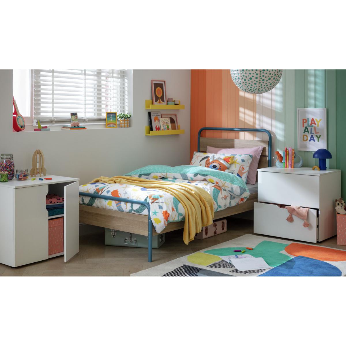 The Habitat kids pod 2 piece 2 door low chest of drawers is a great choice for a child's room, thanks to its practical size and clean, neutral white finish which adapts well to various colour schemes and themes. I love its simplicity and durability, making it ideal for everyday use. It works well in both modern and Scandinavian-inspired interiors, adding a fresh touch without overwhelming the space. For styling, consider pairing it with colourful or patterned organisers inside the drawers to keep things tidy and visually interesting. Placing it next to a playful rug or curated wall art can create an inviting and organised environment that grows with your little one.