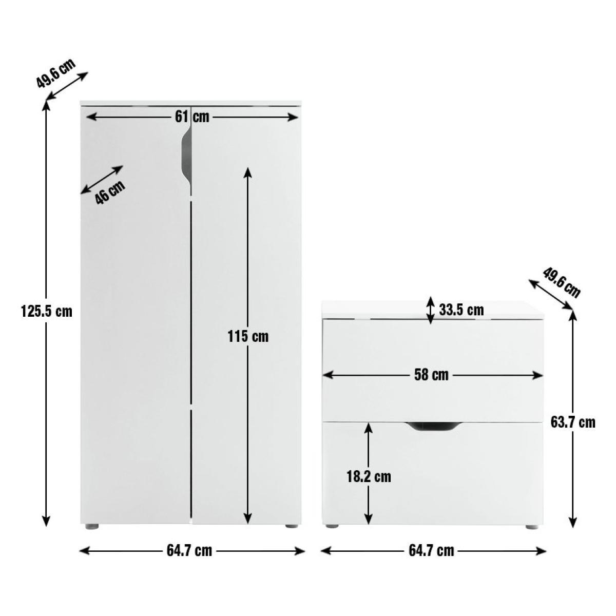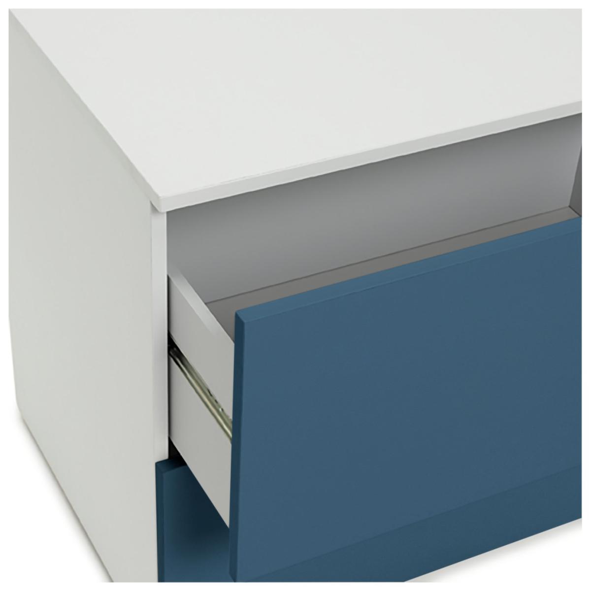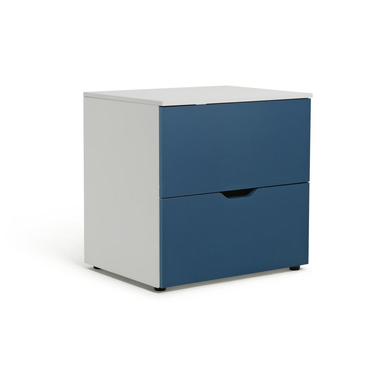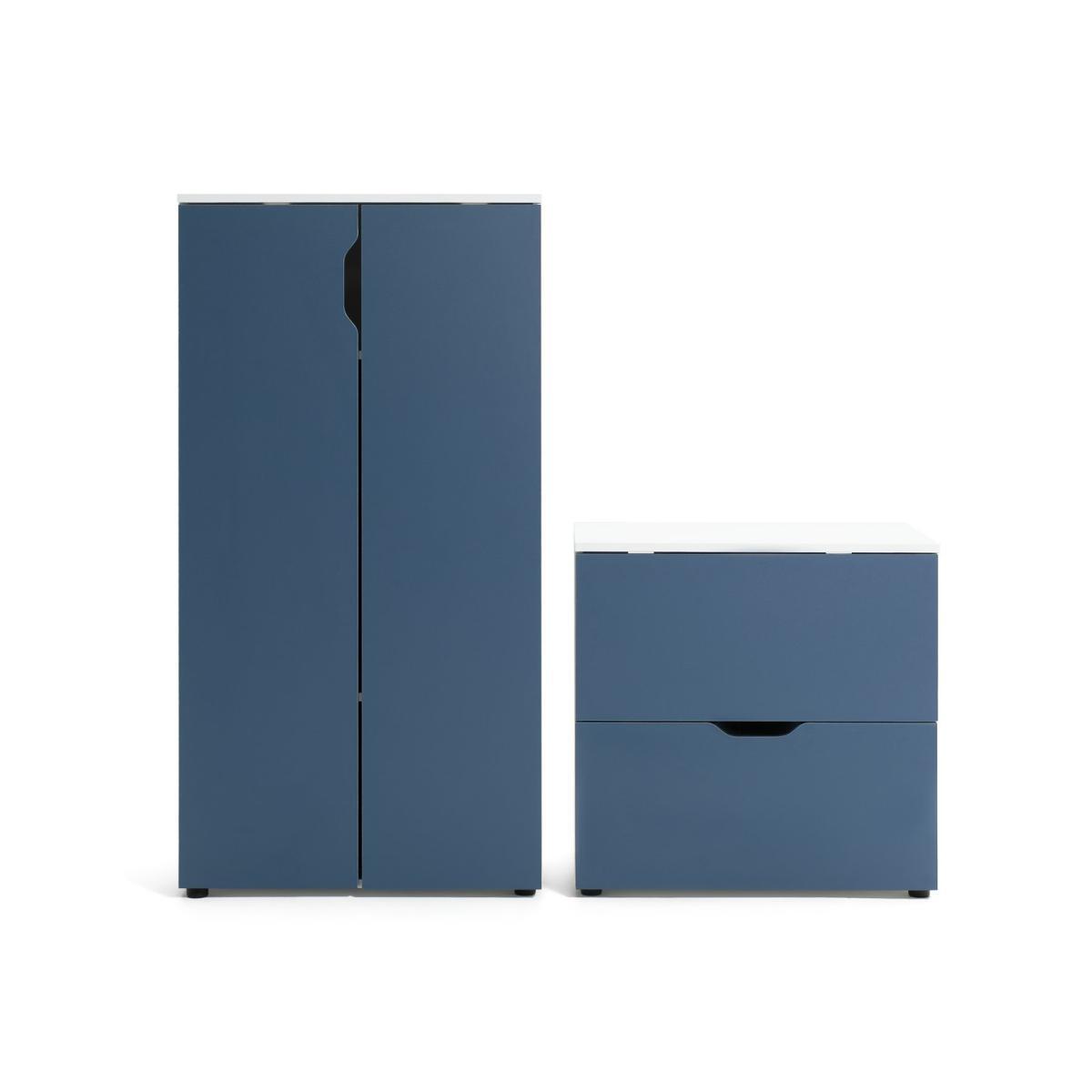 Stash kids' stuff away in our blue modular duo. The 2-door wardrobe is just the right height for youngsters with an adjustable hanging rail and extra deep shelf inside. Plenty of room to store clothes and shoes within easy reach. Kids will love getting dressed on their own. Tuck away pj's or toys in the matching 2 drawer chest. Smooth, easy to use cut-out handles prevent trapped fingers and bring a streamlined look to their space. Neat and tidy.