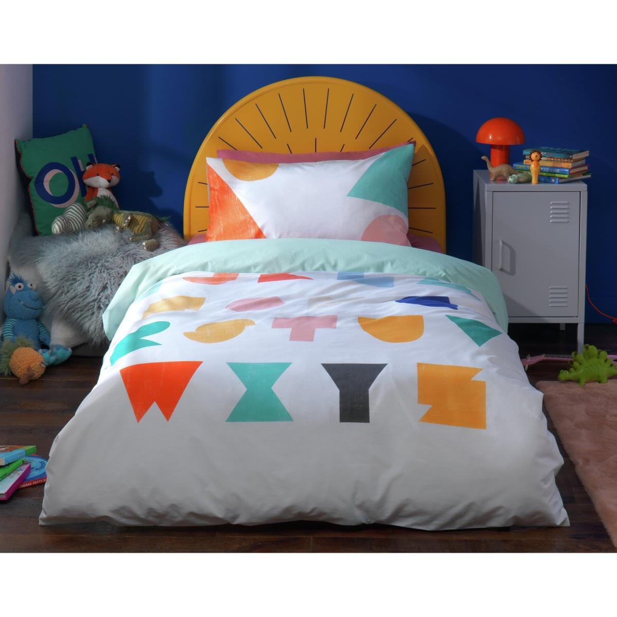 A to Zzzzz. Our bright and breezy alphabet print bed set is cute and playful. Brings a little colour into the kids bedroom too. The chunky font in cheerful shades is a great way to get them practicing their letters. Fancy a refresh? Just switch the duvet over for a pretty mint green. Two in one, that's clever. Made from polycotton, this duvet cover and pillowcase are the ideal mix of softness and durability. Lights out.