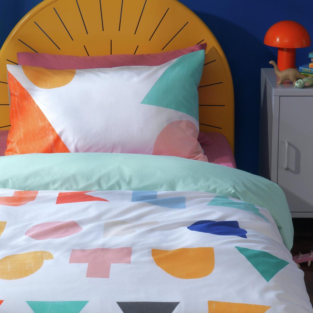 I love this kids’ alphabet bedding for its playful, modern aesthetic that effortlessly adds colour and interest to a child's room. It works particularly well in contemporary or minimal interiors where a splash of visual fun is desired without overwhelming the space. To style it effectively, pair it with soft, neutral-coloured furniture and accessories to let the bedding stand out, or incorporate coordinating accent colours in cushions or rugs for a cohesive look. Practical tips include choosing matching or complementary sheet colours to make changing bed linen easier and maintaining a consistent colour palette throughout the room to create a balanced, cheerful environment suitable for both play and rest.