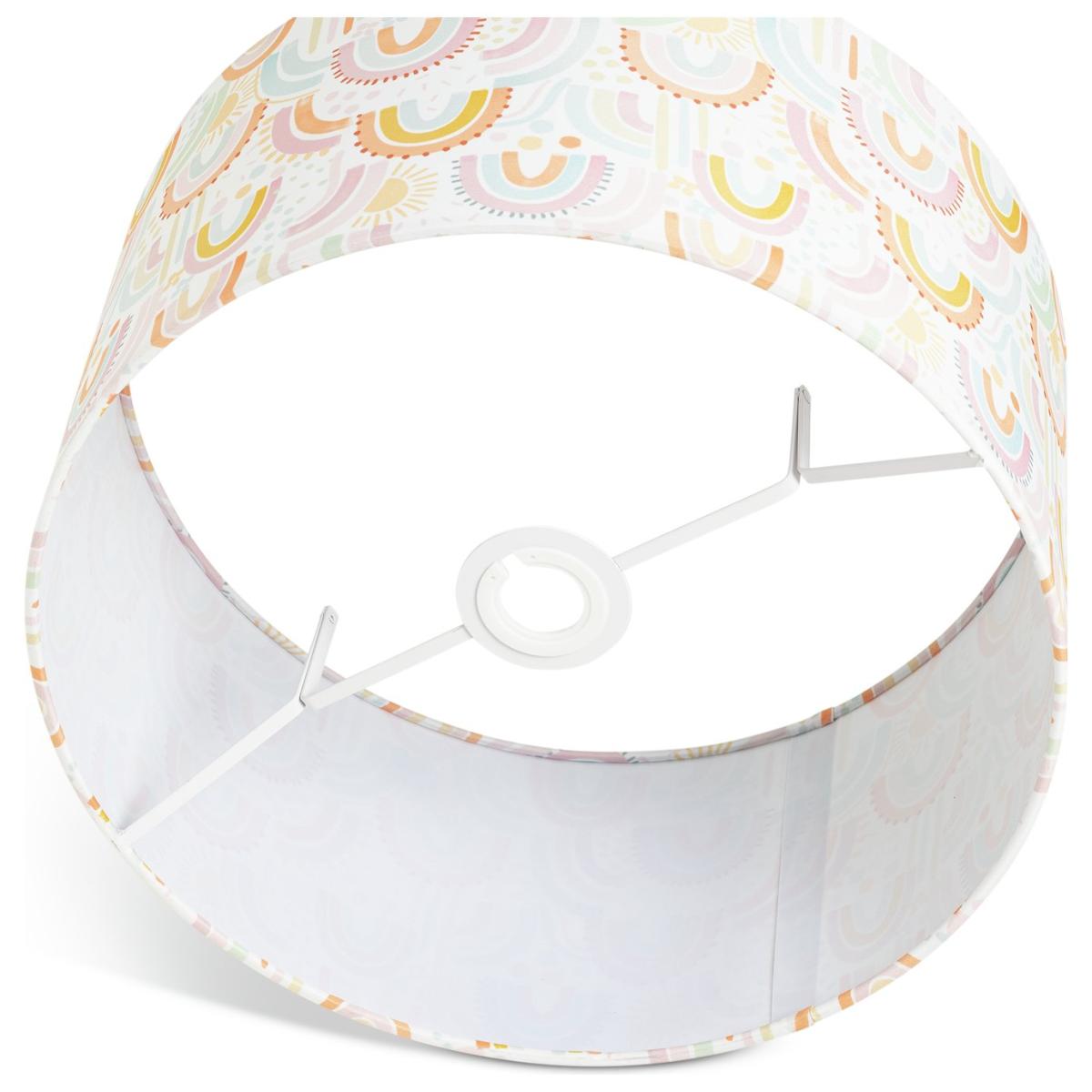 Don't we all wish our lives were full of sunshine and rainbows? Well, this fabric drum shade is as close as it gets. We love the pastel palette and cheerful graphics that uplift the mood of the bedroom. Easy to fit and versatile, it can be used as either a ceiling or lamp shade. Why not get 2 and enjoy a top-to-table coordinated look? Dimensions: Size H18, , Diameter 35cm. General Information: Not suitable for bathroom use. Fully assembled. Product is easy fit shade. Manufacturer's 1 year guarantee.