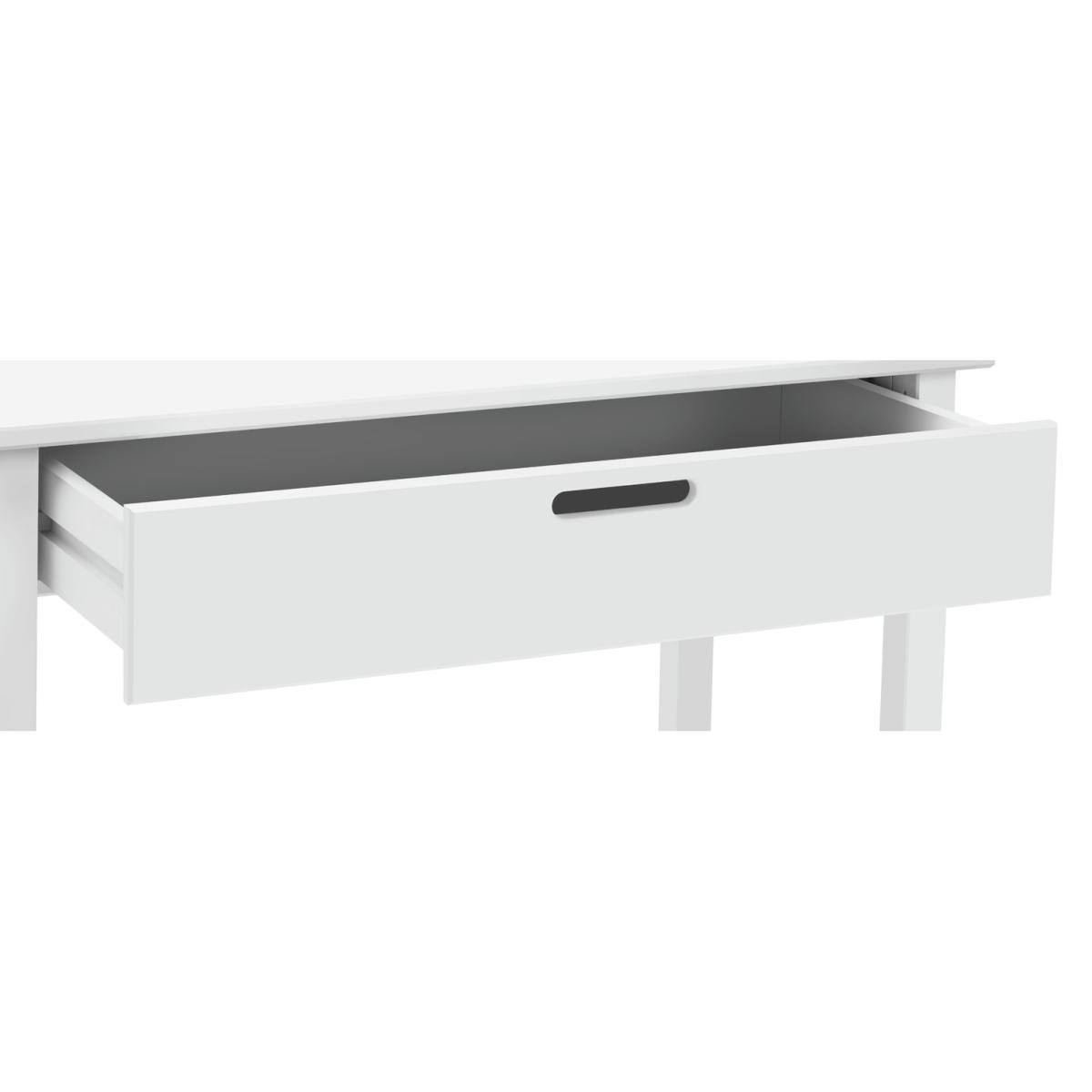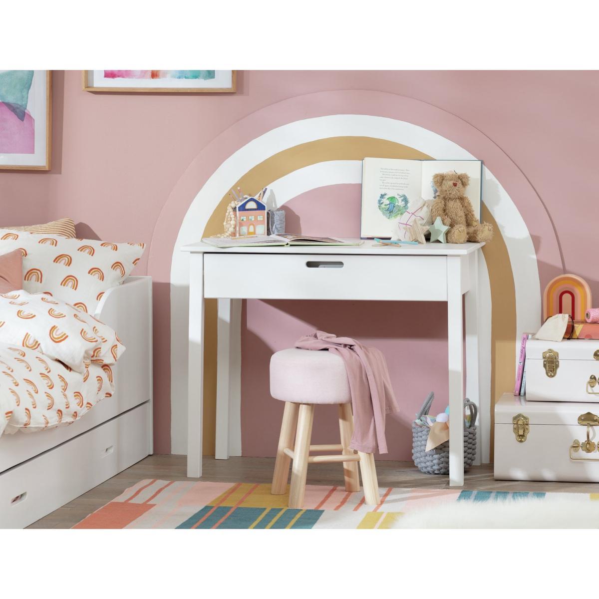 I love this little desk for its clean, crisp look and practical design, making it a versatile addition to any child's room. Its white finish keeps the space feeling bright and fresh, perfect for both colour-themed and neutral interiors. It works well in contemporary, Scandi-inspired settings, especially when paired with soft blush tones or pastel accents. For styling, consider adding some colourful organisers or a cute desk lamp to encourage use while keeping the area playful. It’s also a good size for smaller rooms, offering essential storage with its single drawer, helping maintain a clutter-free environment. Overall, it’s a practical, stylish piece that balances function with understated charm.