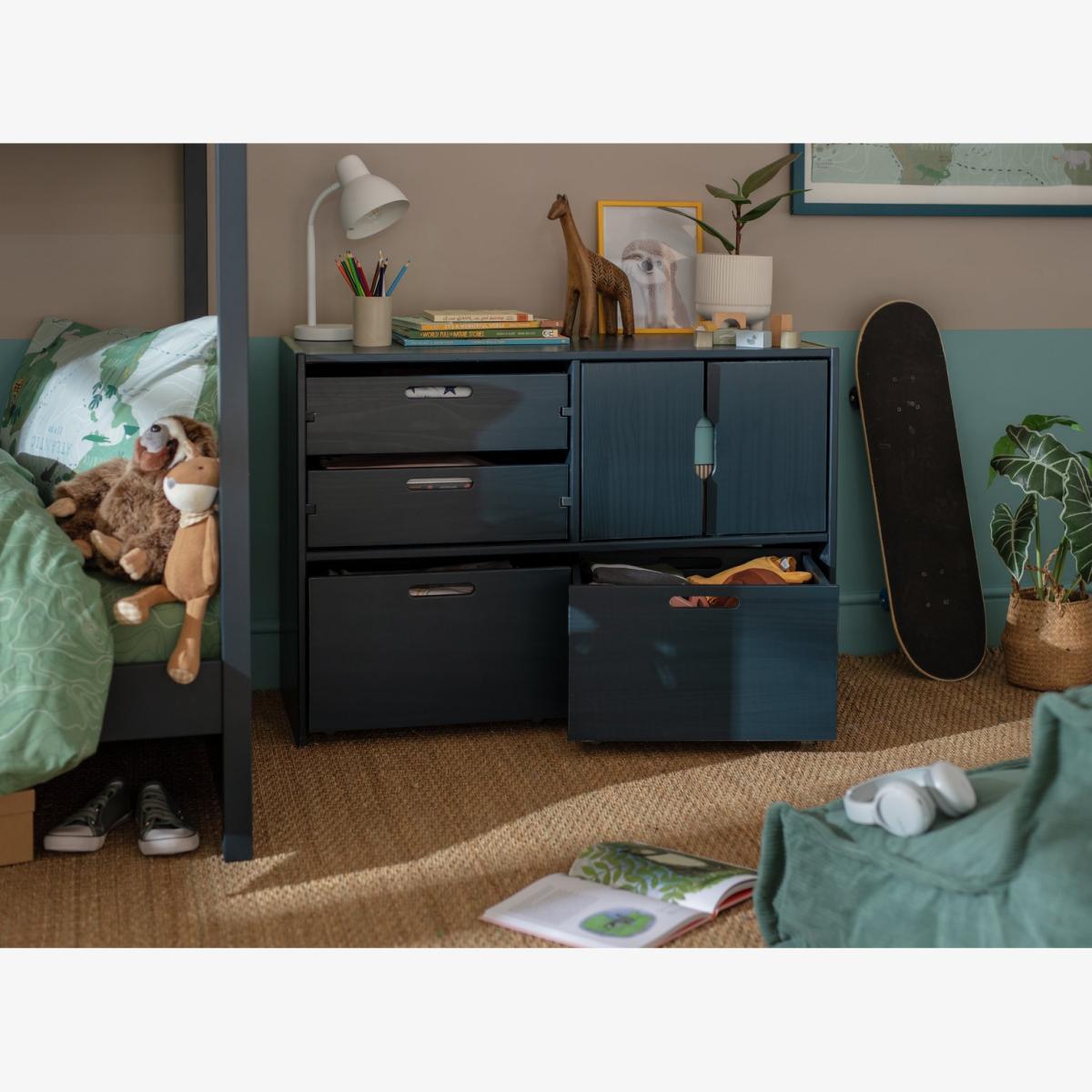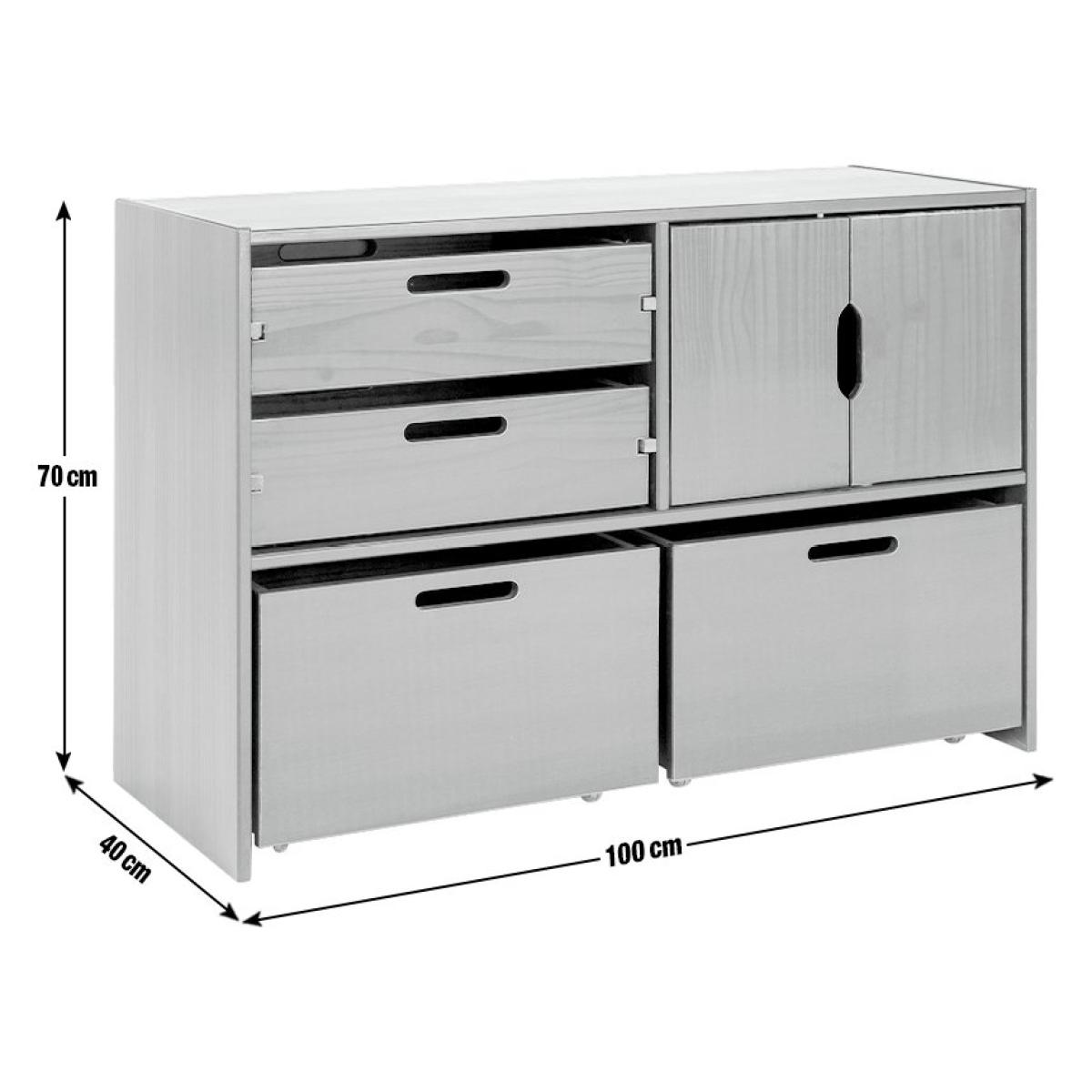 Style up your kid's space with Rico. This double storage unit provides plenty of hideaway space. It features 2 top drawers, a 2-door cupboard and 2 deep wheeled trundle drawers. All with easy open, cut-out handles. Plenty of space to dress the top with books and craft boxes too. Our products are designed with kids in mind and are tested to the latest safety regulations, they comply with British and European safety standards. Part of the Rico collection. Made of solid wood. 4 drawers with metal runners. Packed flat. If this product is over 60cm high it must be securely attached to the wall to prevent overturning. Dimensions: Size H70, W100, D40cm. Internal drawer H14, W47,. Large internal drawer H27.5, W47, D37cm. Weight 23.1kg. Package Dimensions: FSC certified meaning the materials used for this product are responsibly sourced. General information: We are excited to be welcoming some of our favourite HOME products into the Habitat range. Your product may arrive in Habitat or HOME packaging. Manufacturer's 1 year guarantee.