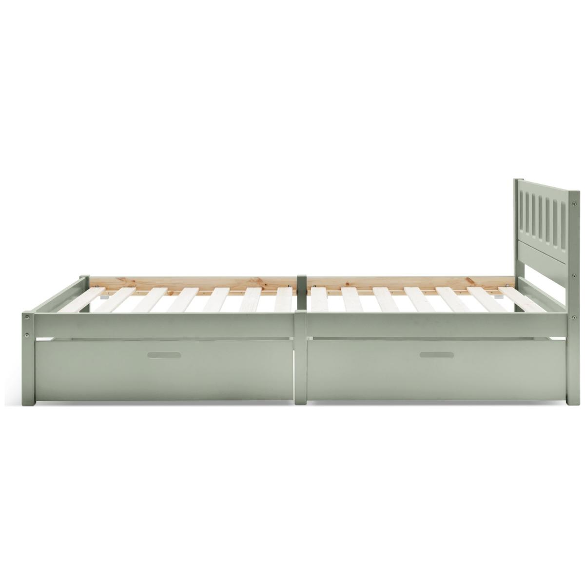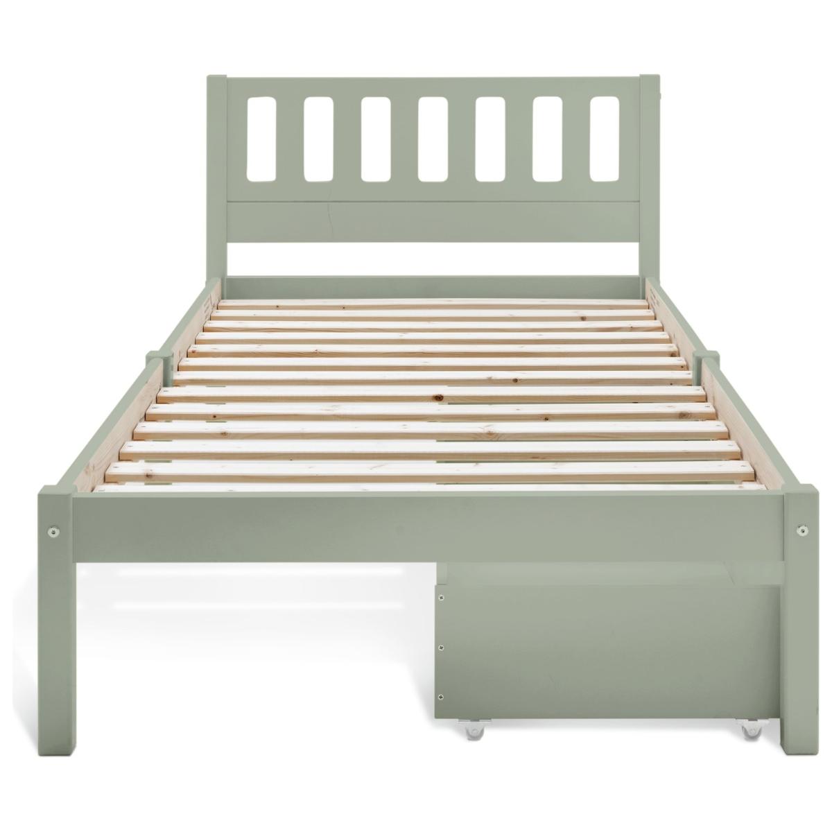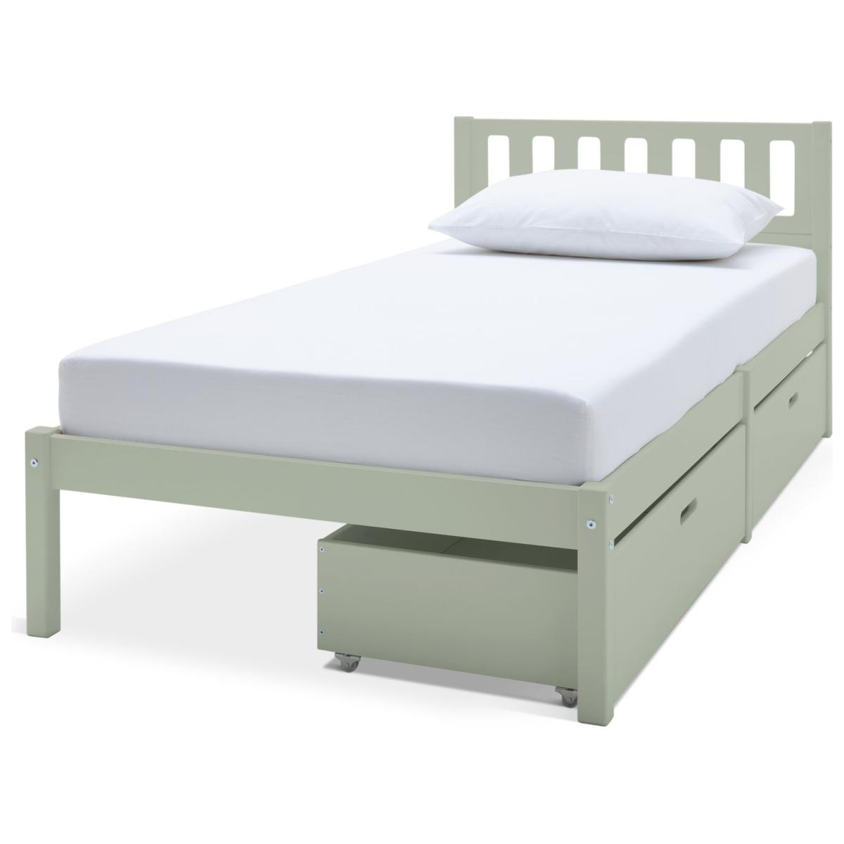 The Ronnie Single Bed and Drawers is built to withstand the daily wear and tear of a child's room while retaining its charm. With a sleek, contemporary design, it adapts as your child grows, offering long-lasting appeal. Featuring two spacious storage drawers, it combines practicality with style, providing ample room for keeping essentials organised. This bed blends durable construction with a modern aesthetic, offering the perfect mix of elegance and functionality for both kids and teens. The Ronnie collection is ideal for stylish kids and complements any bedroom beautifully. Explore the full Ronnie range to complete your perfect look. Part of the Ronnie collection. Bed frame: Single bed. Green bed with a mdf and solid wood frame. Includes wooden slats. Packed flat - 2 people recommended. Maximum user weight 120kg. For ages 4 years and over. Suitable for adult use (safety tested to 100kg). Dimensions: Frame size L195.3, W96.3, H76.7cm. Drawer size H23, W90.6, D46.5cm. Package dimensions: Package 1 size H97, W41.8, D11.9cm. Package 2 size H99.4, W45.8, D6.1cm. General information: Manufacturer's 2 year guarantee.
