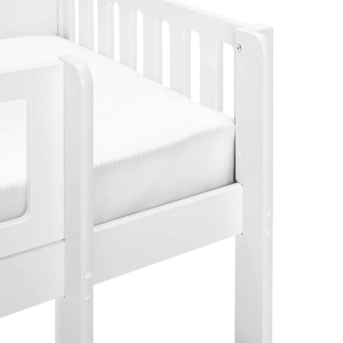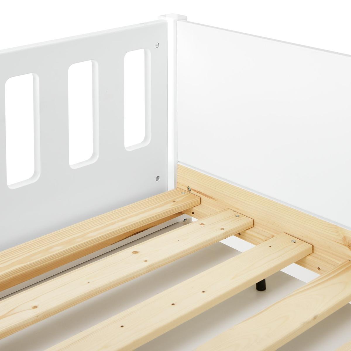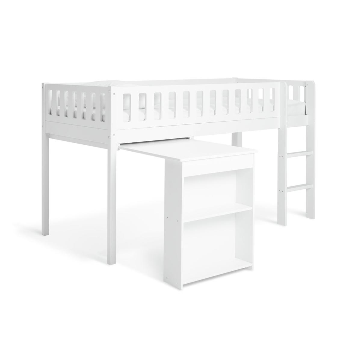 Sleep. Play. Create. The Ronnie midsleeper is a cool pick for growing kids. Made from solid wood with a fresh white finish, it's built for busy days and restful nights. A handy pull-out desk with side shelves creates a cosy spot for crafts or homework. And when you need the floor space, it simply tucks neatly away again. Plus, the raised design leaves plenty of room underneath for toy boxes or extra storage. Smart, simple and made for everyday adventures. Part of the Ronnie collection. Sleeper: Single bed. White bed with a mdf and solid wood frame. Includes wooden slats. Packed flat. WARNING "This product must be attached to a wall or building structure". Ladder can be positioned either side of the bed. Suitable for adult use (safety tested to 100kg). Mattress: For safety, maximum depth of mattress to be used is 16cm. Dimensions: Safety rail height 32cm. Frame size L195.3, W101.5, H111.3cm. Clearance between floor and underside of bed 74.6cm. Desk size H73.5, W60, D89cm. Package dimensions: Package 1 size H13, W37.5, D192.5cm. Package 2 size H7.3, W56.4, D105.6cm. General information: Manufacturer's 2 year guarantee.