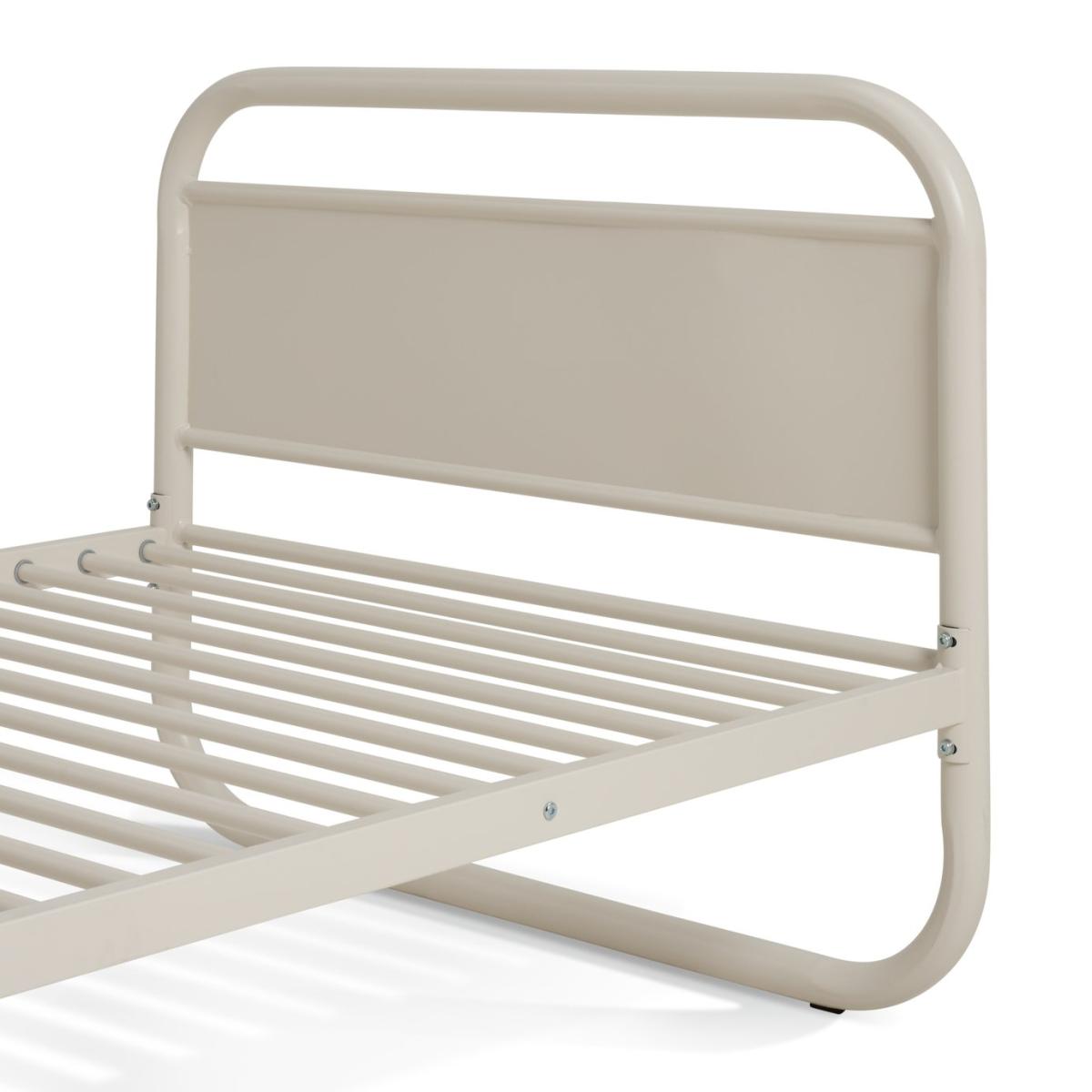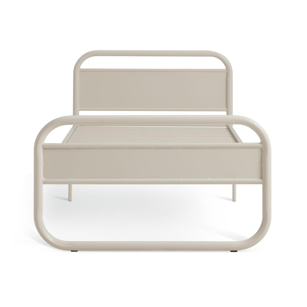 Sleep easy. Rory is a modern, simple and space-saving single light grey bedframe. With retro looks, it works well for students, children and spare rooms. Both lightweight and strong, it's formed from rounded tubular steel and has a robust metal slatted base for mattress support. Part of the Rory collection. Includes metal slats. Size W96.5, L197, H76cm. For ages 4 years and over. Weight 21.3kg. Self-assembly. Fits single size mattress. Mattress not included. Suitable for adult use (safety tested to 100kg). Self assembly: 2 people recommended.