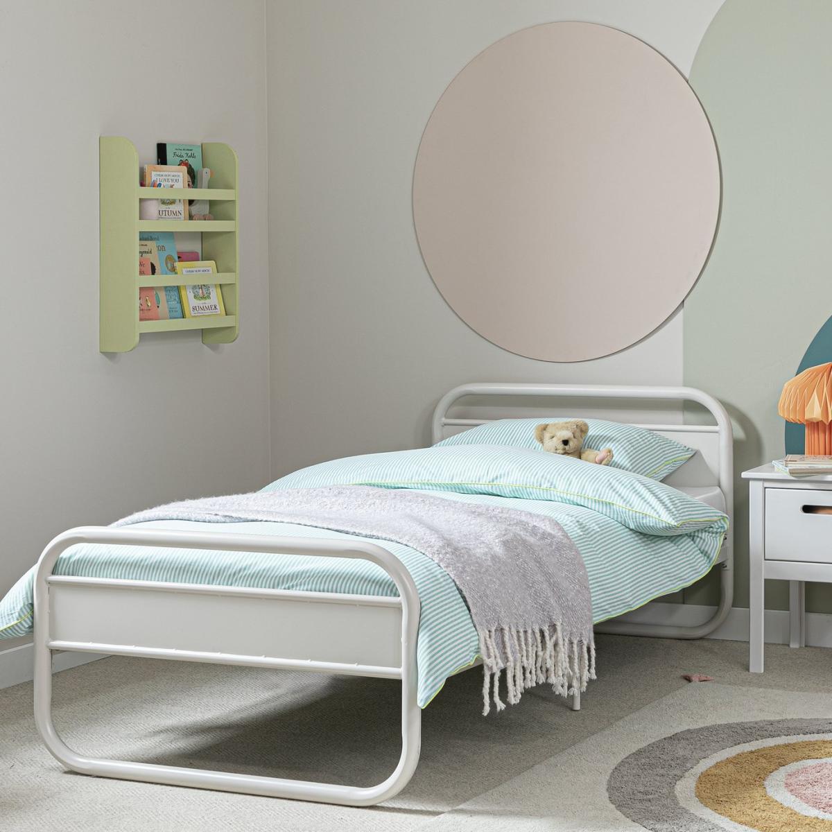 I love this kids bed frame because of its sleek, curved metal design, which adds a modern yet friendly aesthetic to a child's room. Its neutral grey makes it versatile, working well with a range of colour schemes and whimsical or minimalist decor styles. It’s perfect for pairing with colourful bedding, patterned cushions, or even fairy lights to create a playful yet practical space. For practical styling, consider adding under-bed storage or a cosy bedside area with relaxed textiles and personality-adding accessories. This bed lends itself to both contemporary interiors and classic nursery schemes, making it a smart choice that can grow with your child.