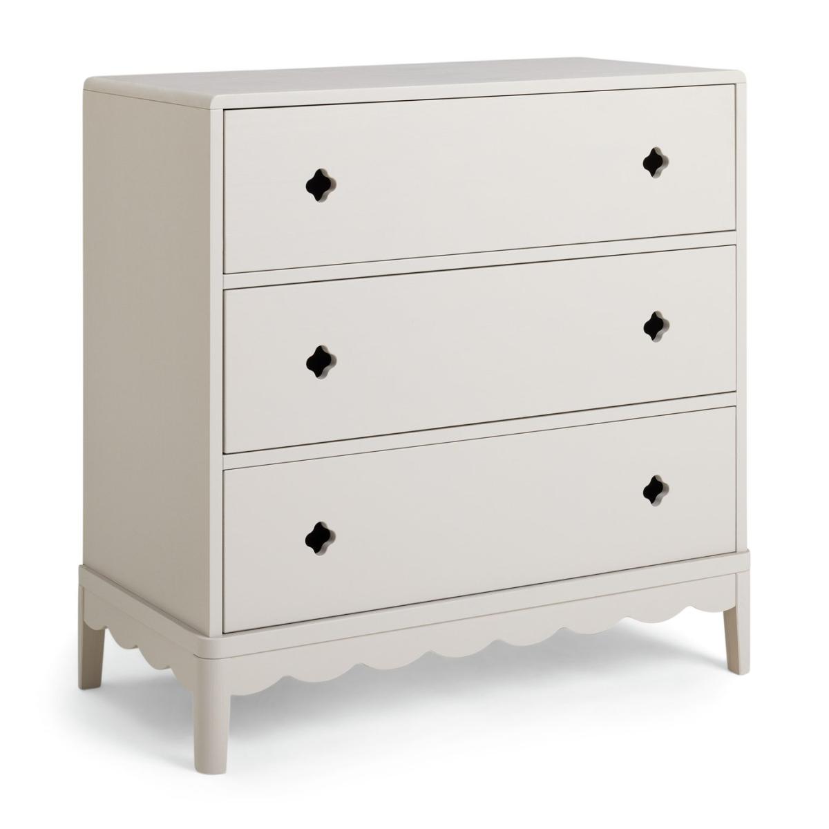 Princess-pretty our Serena chest of drawers is delightfully dreamy. With 3 deep drawers to swallow-up toys, games, make-up, chunky knits and more. Gently scalloped edging and 4-leaf clover cut away handles provide a classic look that works well with whimsical, feminine or scandi decor. Carefully curated to meet storage needs. This chest makes a lovely standalone item and complements the Serena bedroom furniture collection. Part of the Serena collection. Made of MDF and pine. 3 drawers with metal runners. Soft close. Self-assembly - 2 people recommended (includes wall fixings). If this product is over 60cm high it must be securely attached to the wall to prevent overturning. Dimensions: Size H81.9, W42, D82cm. Internal drawer H16.9, W70.7, D33.4cm. Weight 24kg. Package Dimensions: Package 1 dimensions: H84, W44, D17,. FSC certified meaning the materials used for this product are responsibly sourced. General information: We are excited to be welcoming some of our favourite HOME products into the Habitat range. Your product may arrive in Habitat or HOME packaging. Manufacturer's 2 year guarantee.