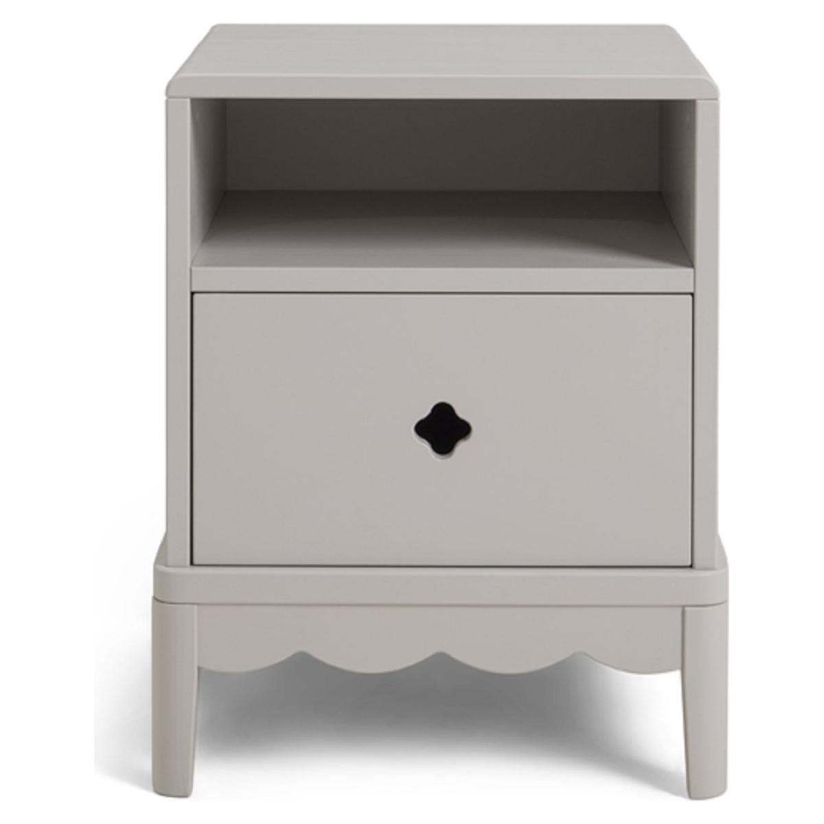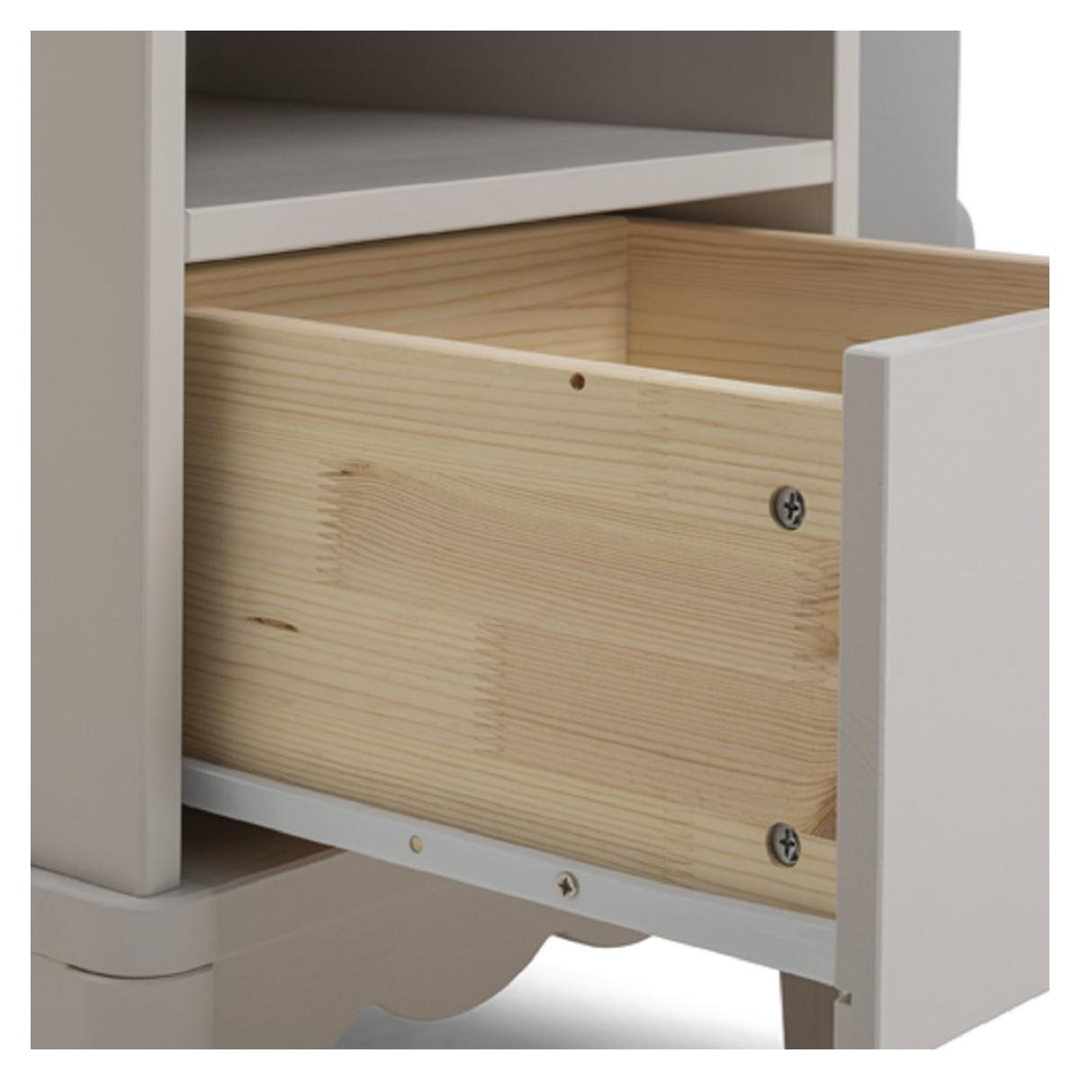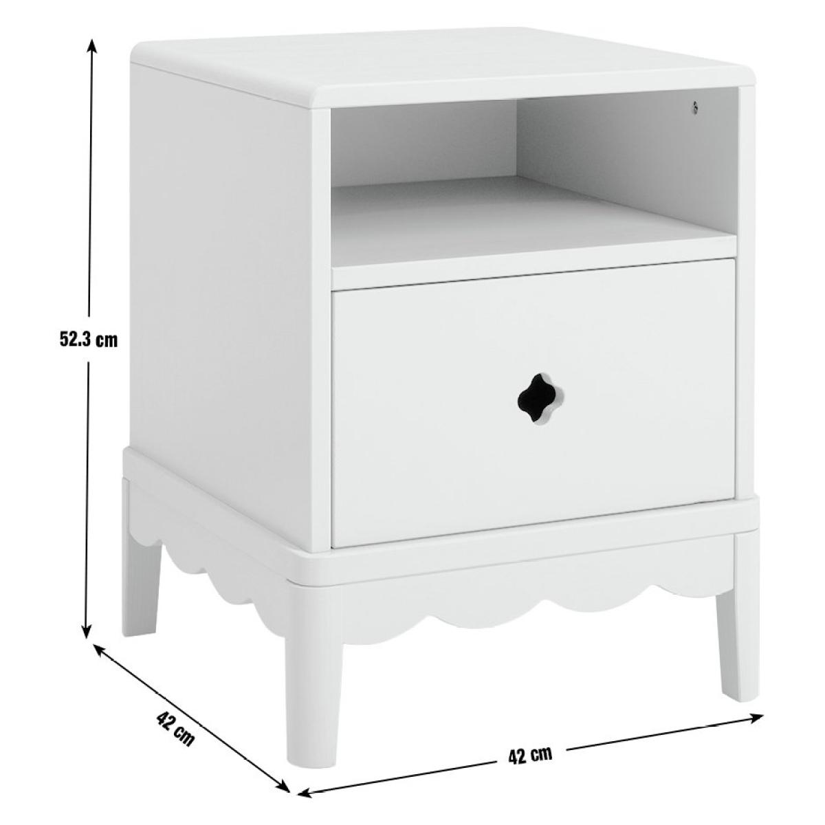 Princess-pretty our Serena bedside table is a treat. Gently scalloped edging and 4-leaf clover cut away handle make it delightfully dreamy and feminine. It makes a lovely standalone item, is perfect in a pair. And complements the Serena bedroom furniture collection. Part of the Serena collection. Made of solid wood and MDF. 1 drawer with metal runners. Self-assembly - 1 person recommended. If this product is over 60cm high it must be securely attached to the wall to prevent overturning. Dimensions: Size H52.3, W42, D42cm. Internal drawer H16.9, W33.4, D30.7cm. Weight 9.9kg. Package Dimensions: Package 1 dimensions: H44, W44, D13.8cm. Package 1 weight: 10.5kg. General information: We are excited to be welcoming some of our favourite HOME products into the Habitat range. Your product may arrive in Habitat or HOME packaging. FSC certified meaning the materials used for this product are responsibly sourced. Manufacturer's 2 year guarantee.