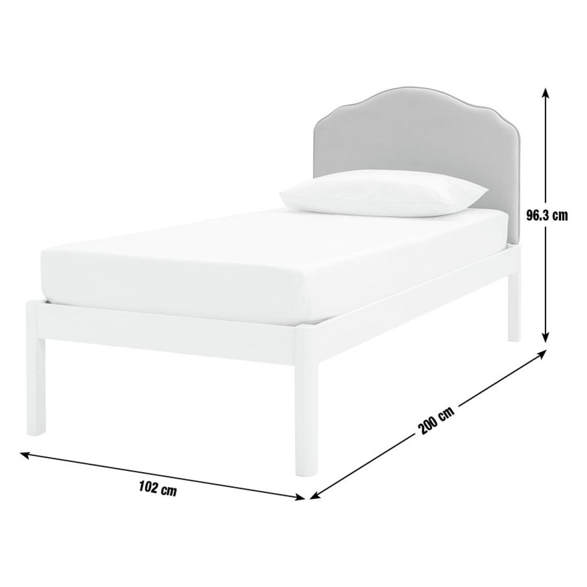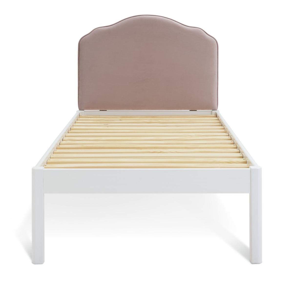 A princess pretty bed. Our softly curved Sophia headboard with its child-friendly rounded edges, comes is a rich pink velvet and is set on a fresh white painted, slatted solid wood frame. Plus, the platform style means plenty of room underneath for tucking away storage boxes of toys or linen. Just pop on a mattress and it's ready to go. Part of the Sophia collection. Bed frame: Single bed. Pink bed with a solid wood frame. Includes wooden slats. Self-assembly - 2 people recommended. Maximum user weight 100kg. For ages 4 years and over. Suitable for adult use (safety tested to 100kg). Mattress: (not included). Dimensions: Frame size L200, W102, H96.3cm. Package dimensions: Package 1 size H18.2, W100.3, D45.4cm. Package 2 size H5.4, W193.8, D20cm. General information: Manufacturer's 1 year guarantee. FSC certified meaning the materials used for this product are responsibly sourced.