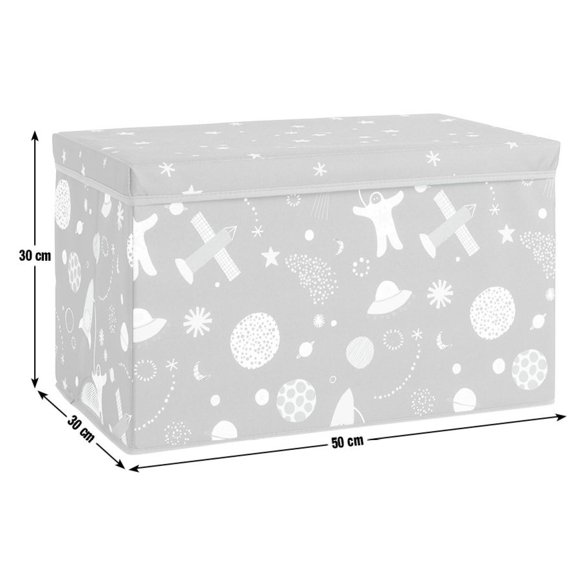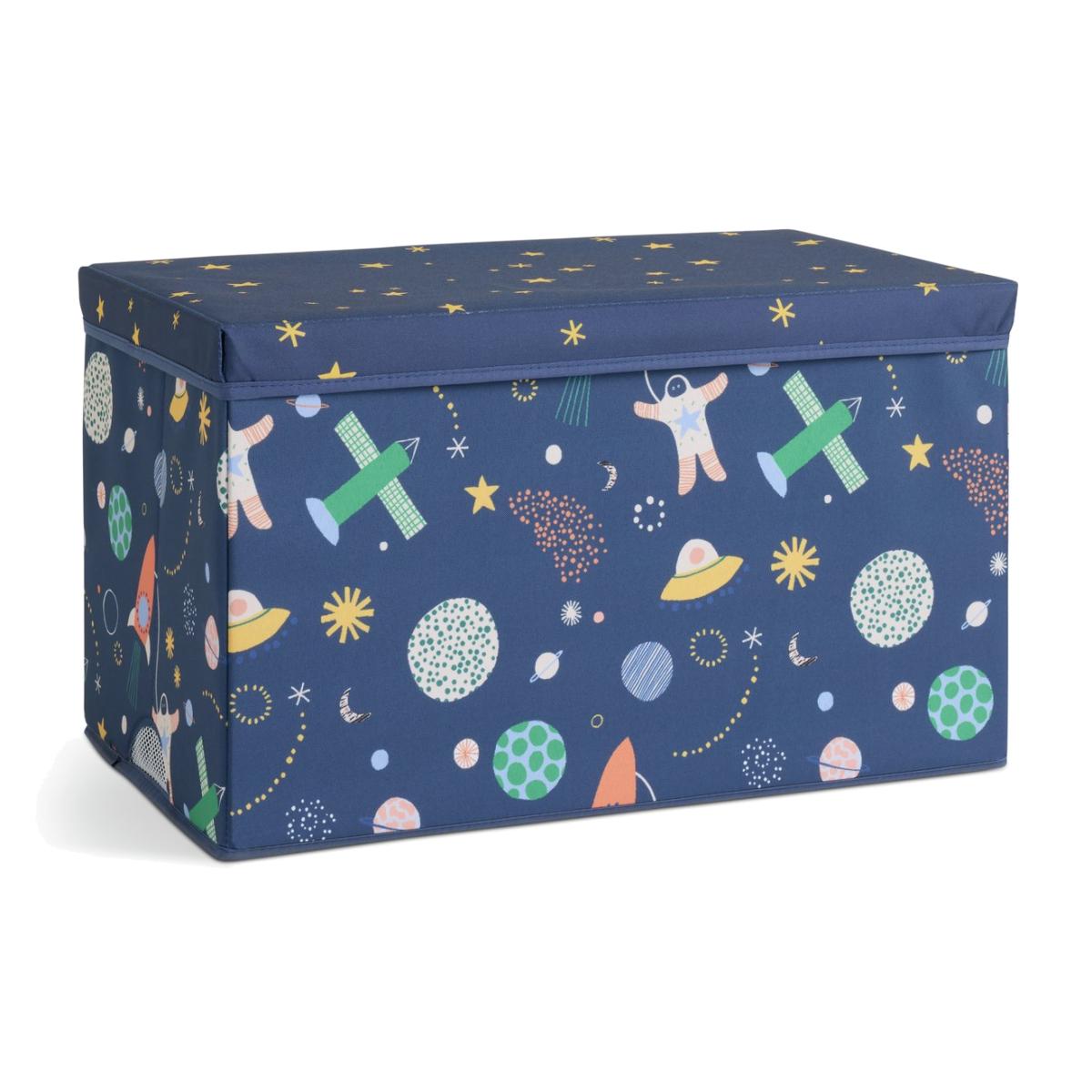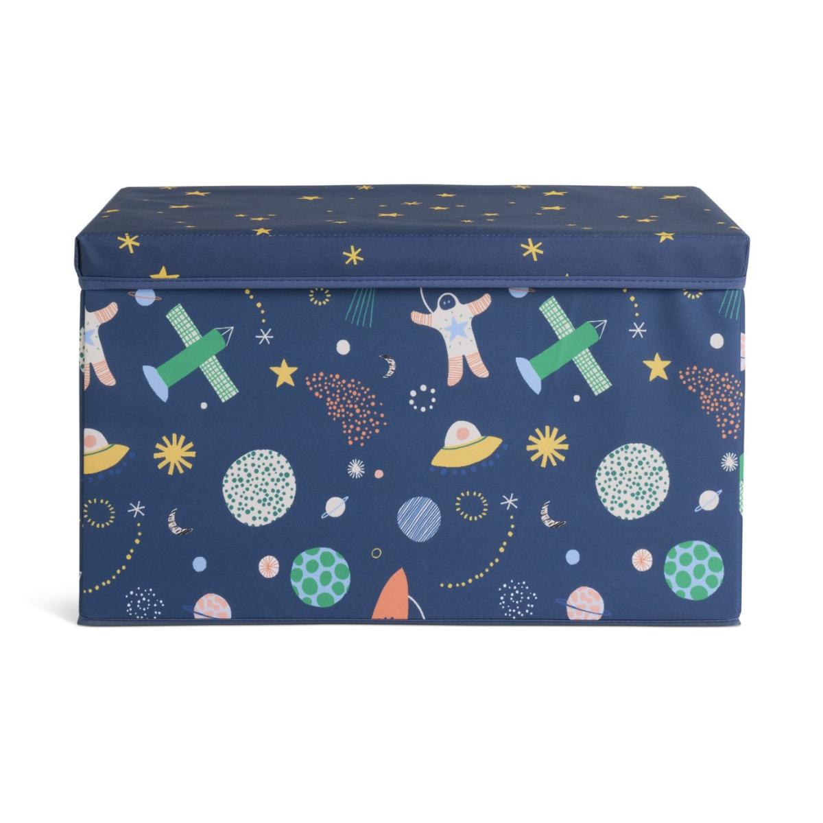 Banish clutter to outer space. This fun, roomy storage box is printed with a vibrant galaxy themed pattern. Ideal for little explorers to stow away books, toys, clothes and more. Comes with a protective lid and also folds flat when not in use. What a blast. Part of the Space collection. Made from polyester and polyester. Folds flat. Not designed to be sat on. Size H30, W50, D30cm. Weight 1.18kg. Small box size H30, W50, D30cm. Storage capacity: 45 litres. Packed flat. Package Dimensions: Package 1 dimensions: H32, W37.5, D51.5cm. General information: Manufacturer's 1 year guarantee.