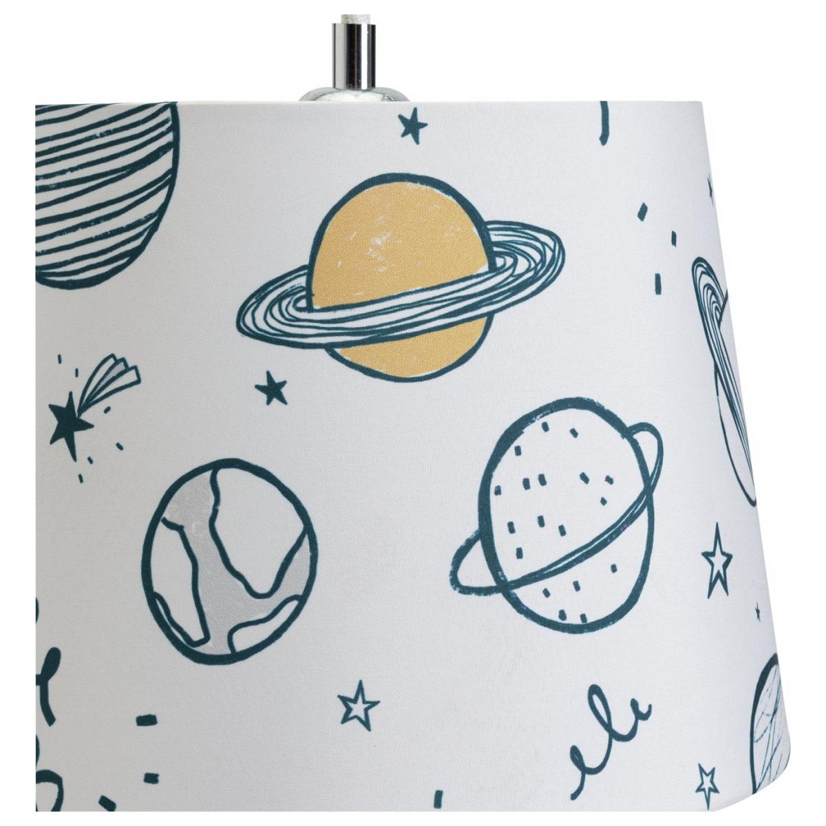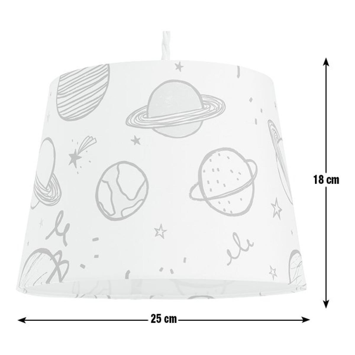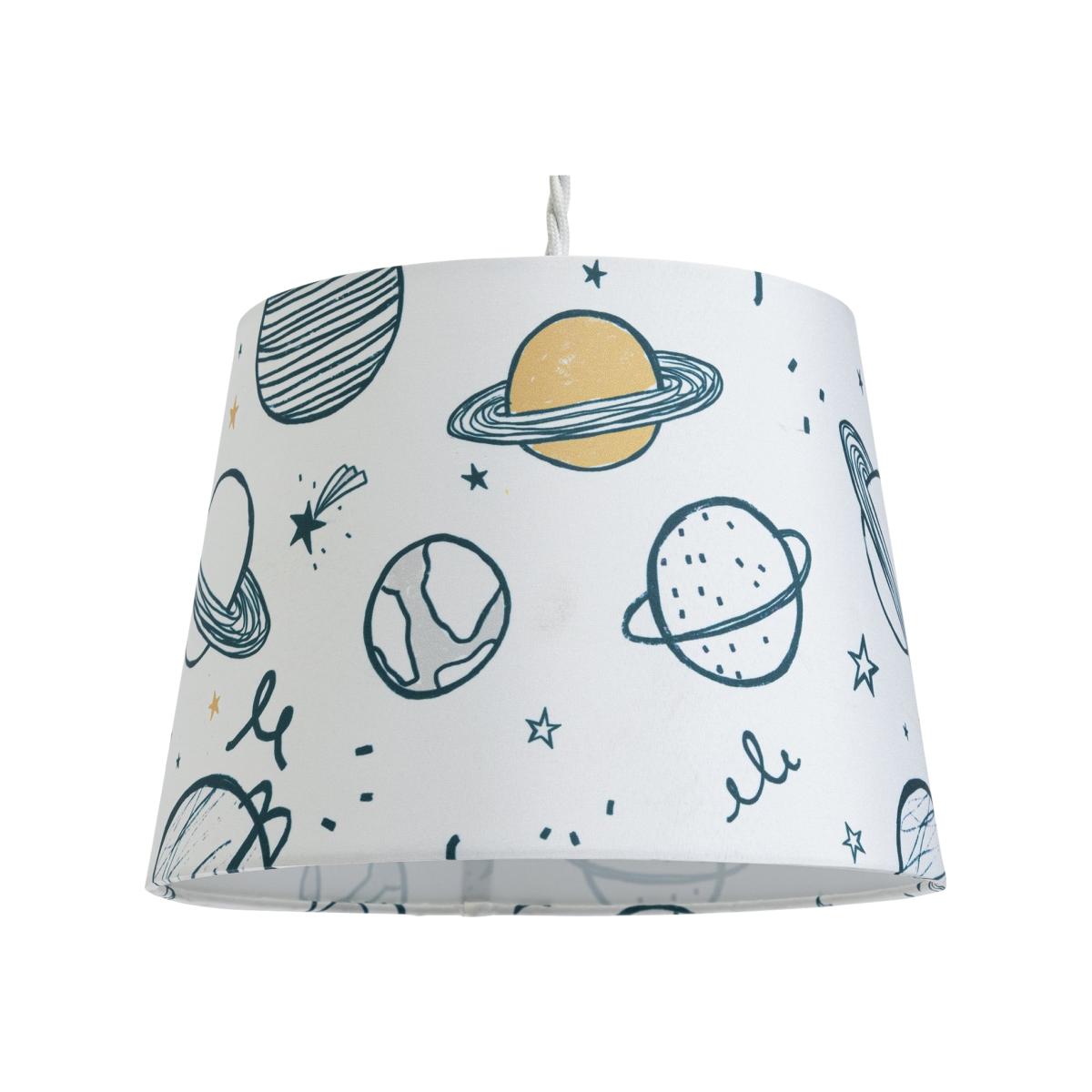 Universally loved by kids everywhere. Our planet and stars fabric lampshade comes in a homely hand-drawn style print. What a lovely sight to look up to at night. Dimensions: Size H18, , Diameter 25cm. Bulb Information: Recommended maximum wattage: 15 watts. General Information: Supplied assembled. Product is easy fit shade. Manufacturer's 1 year guarantee.