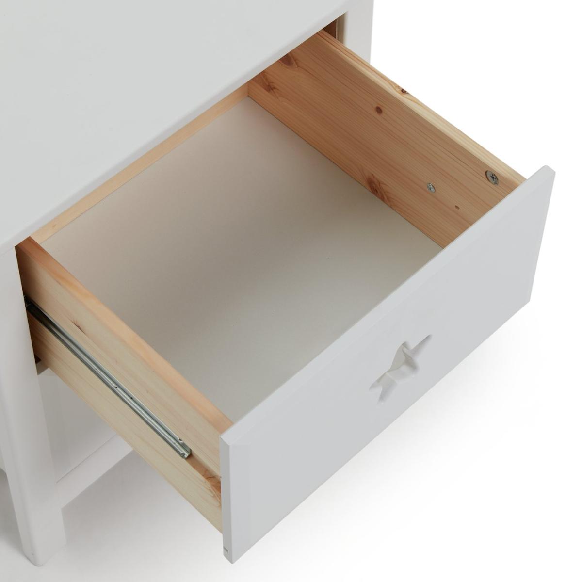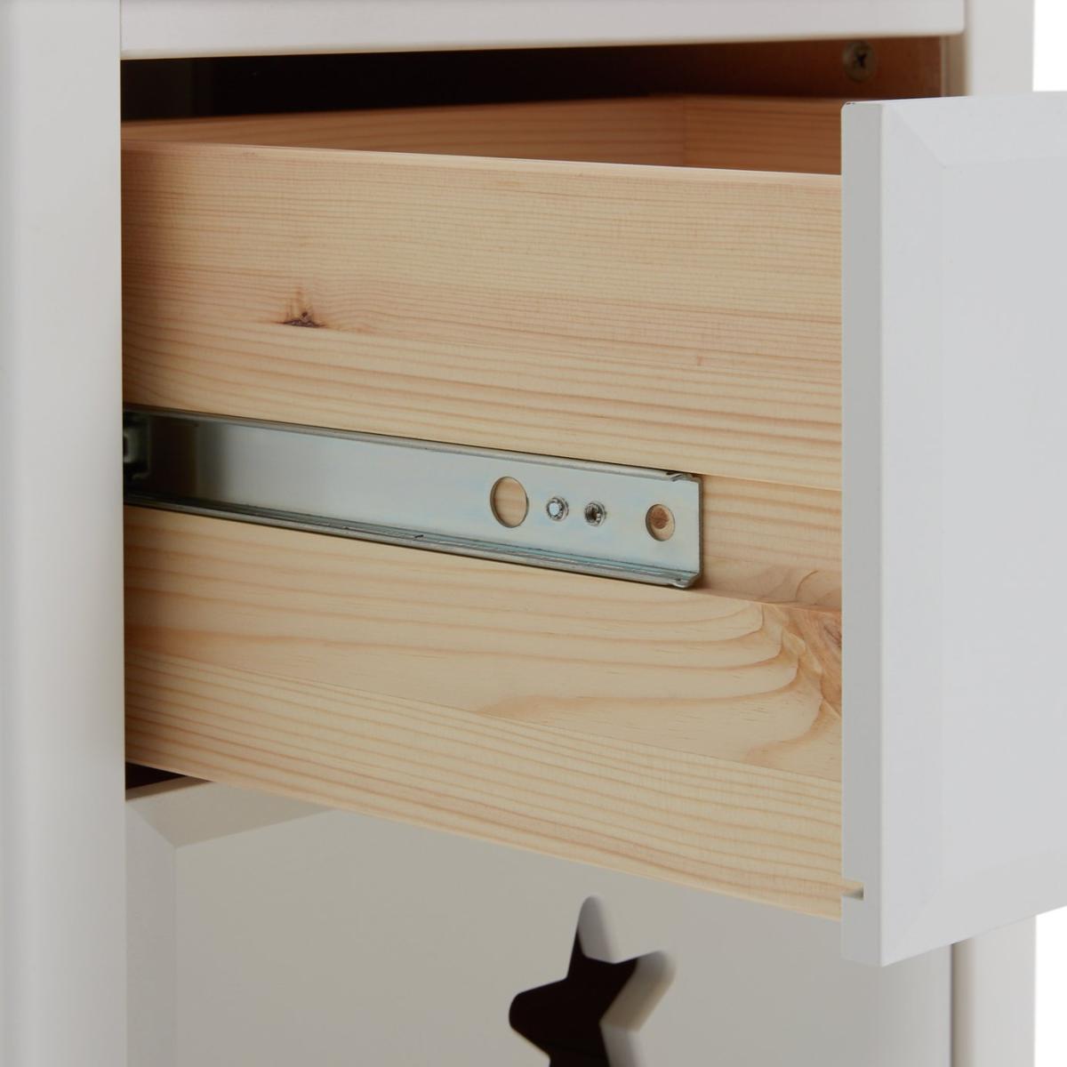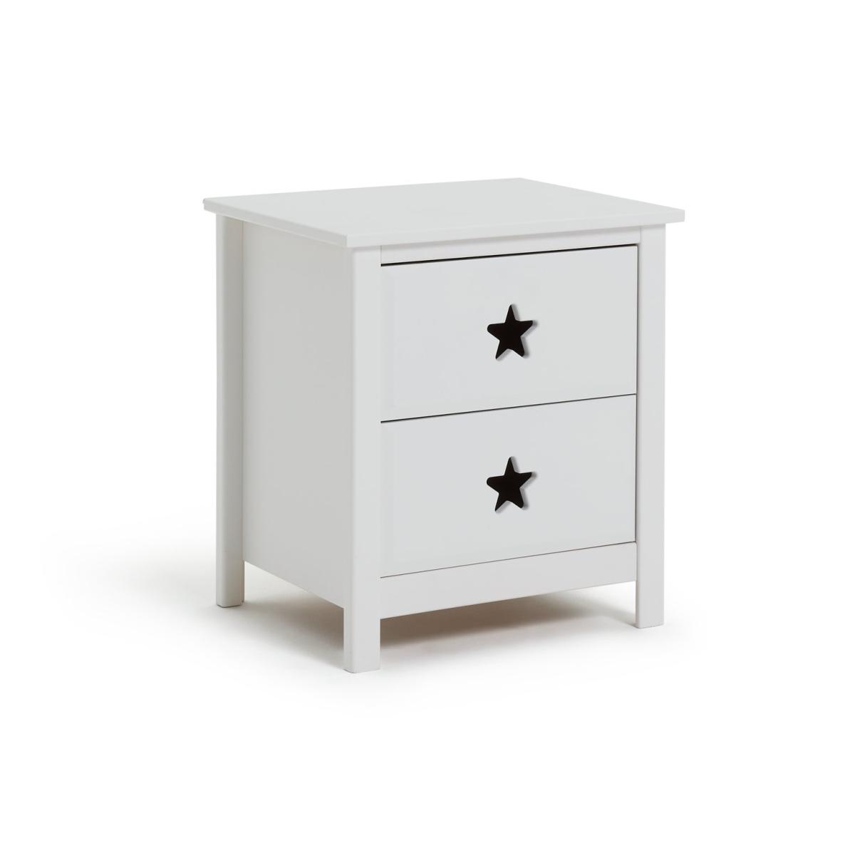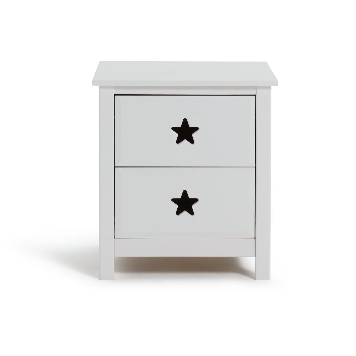 Make a wish! Liven up your little one's bedroom with this fun bedside chest from the Stars range. Made of solid pine and MDF and featuring cute cut-out stars and bevelled edges, it has a neat and playful look. Finished in white, it comes with 2 deep drawers with easy-glide metal runners. Plus there's plenty of space inside to fit PJs, storybooks and other bedtime essentials. Check out the rest of our Stars collection to complete the look. With beds and a great money-saving furniture set, we've got everything you need for your little one's sanctuary. Our products are designed with kids in mind and are built to cope with everyday use. Tested to the latest safety regulations, they comply with British and European safety standards. Part of the Stars collection. Made of MDF and pine. 2 drawers with metal runners. Self-assembly - 1 person recommended. If this product is over 60cm high it must be securely attached to the wall to prevent overturning. Dimensions: Size H53.8, W48.7, D40cm. Internal drawer H15.3, W32.5, D33.6cm. Weight 12.8kg. Package Dimensions: Package 1 dimensions: H10.4, W47.1, D56.9cm. Package 1 weight: 12.8kg. General information: Manufacturer's 2 year guarantee.
