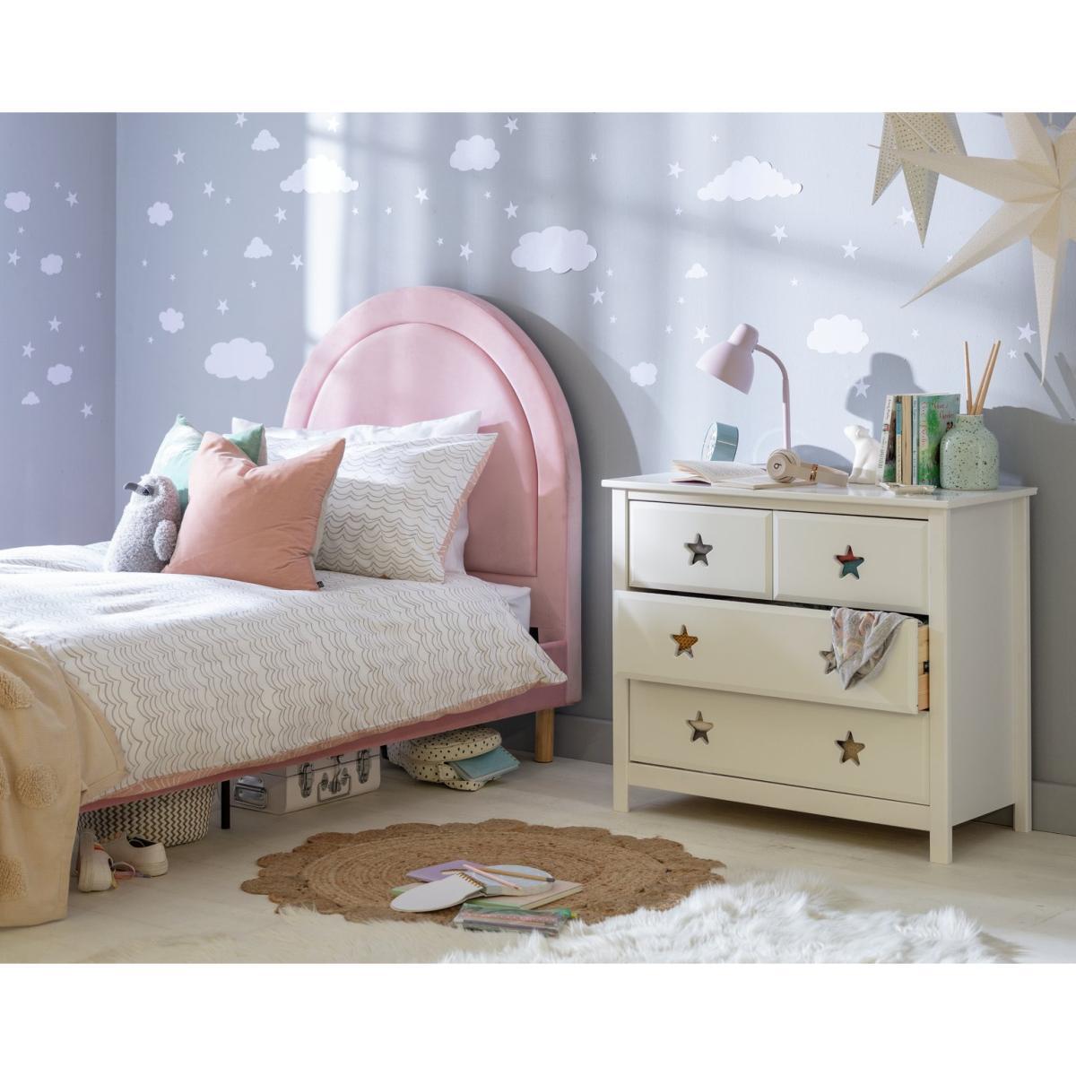 Make a wish! Liven up your little one's bedroom with this fun 2+2 drawer chest from our Stars collection. Made of solid pine and MDF and featuring cute cut-out stars and bevelled edges, they have a neat and playful look. Plus there's plenty of storage space for toys and clothes. The drawers are fitted with metal runners so they're super easy to open. Check out the rest of our Stars collection to complete the look. With beds and a great money-saving furniture set, we've got everything you need for your little one's sanctuary. Our products are designed with kids in mind and are built to cope with everyday use. Tested to the latest safety regulations, they comply with British and European safety standards. Part of the Stars collection. Made of MDF and pine. 4 drawers with metal runners. Self-assembly - 2 people recommended (includes wall fixings). If this product is over 60cm high it must be securely attached to the wall to prevent overturning. Dimensions: Size H73, W86, D40cm. Internal drawer H15.3, W32.5, D33.6cm. Large internal drawer H15.3, W71.6, D33.6cm. Weight 25.3kg. Package Dimensions: Package 1 dimensions: H13.9, W44.7, D92.2,. Package 1 weight: 26.4kg. General information:Manufacturer's 2 year guarantee.