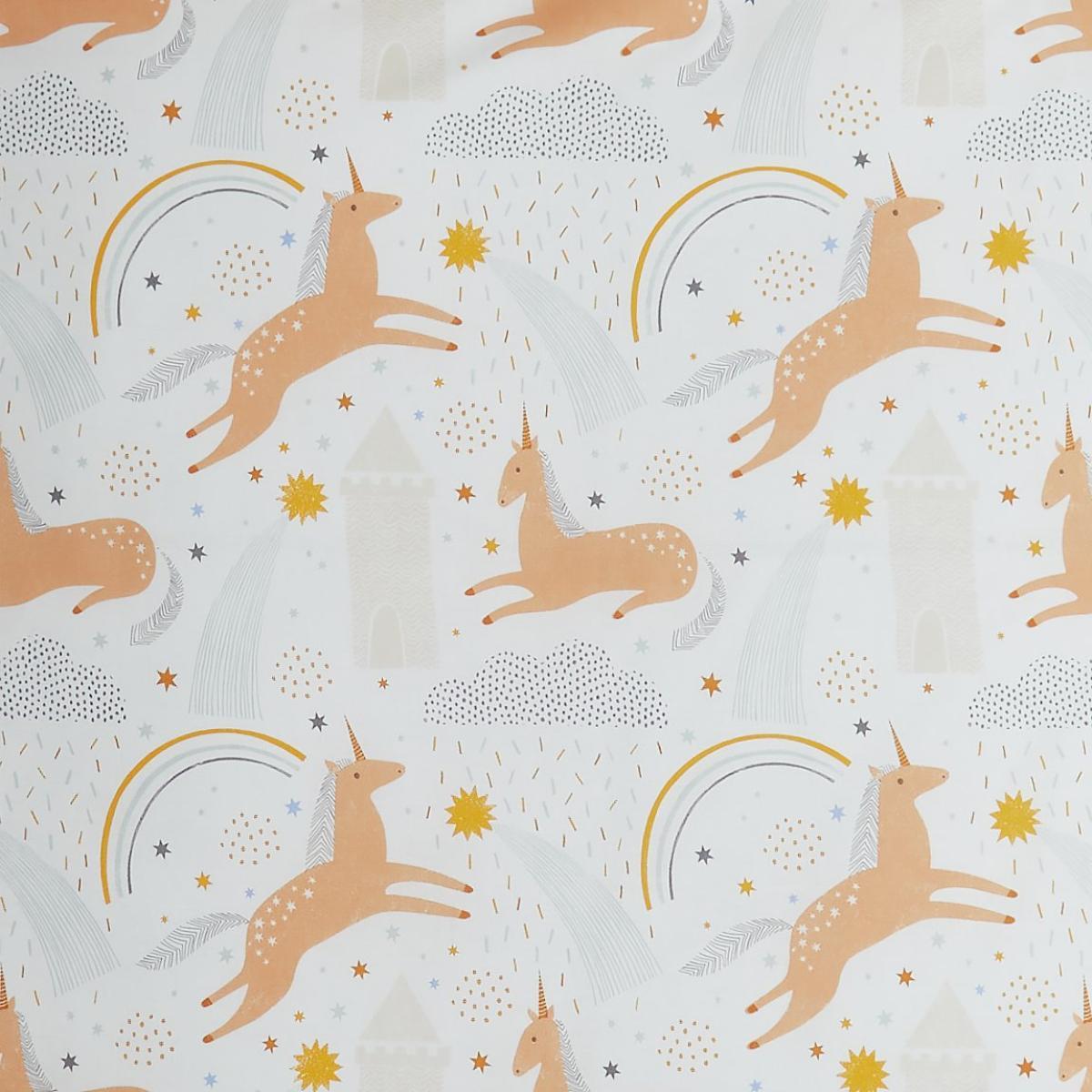 Fairy tale bedding for little dreamers. Your young ones will love waking up to these magical, prancing unicorns. Made from a soft, easy-care cotton, the fluffy cloud and colourful rainbow pattern duvet set is practical and playful. Fancy a change? Just flip over for a cute, coordinated look. Make bedtimes more blissful. Pillow Case Width: 40cm, Length: 60cm.