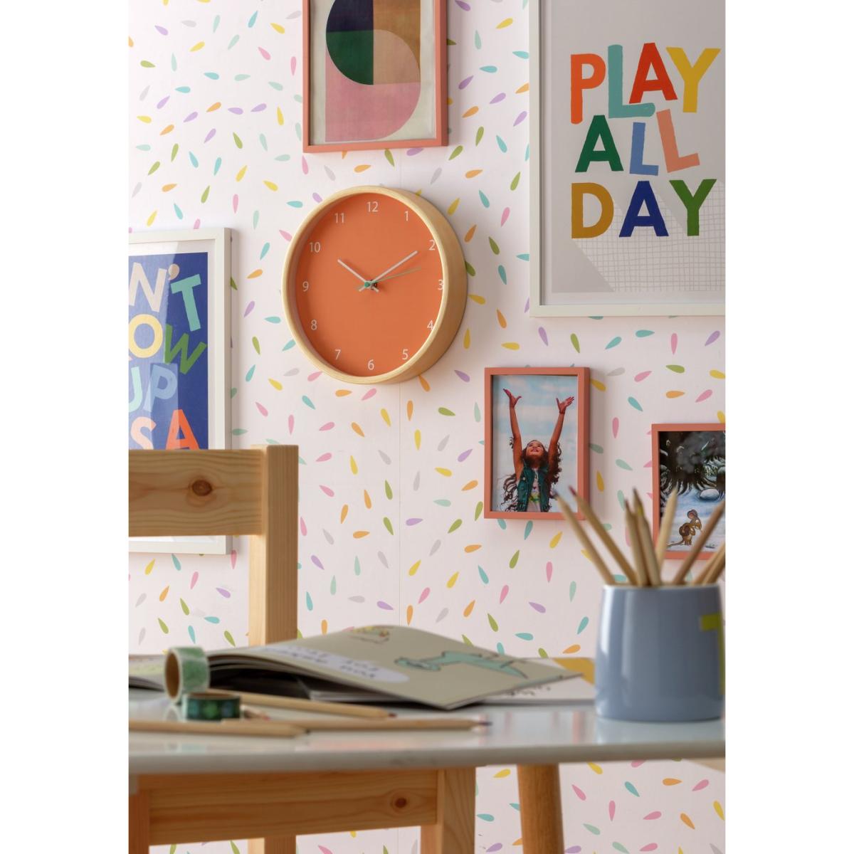 This wall clock is a fun, vibrant piece perfect for a child's room or a playful corner of the home. I love its bold orange hue, which adds a pop of colour and can help stimulate creativity and energy in the space. It works well in interiors with a Scandinavian or modern aesthetic, especially when paired with neutral tones to allow the clock's colour to stand out. For practical styling, hang it at eye level for easy viewing and consider keeping other accessories minimal to avoid visual clutter. It’s also great to combine with colour-coordinated accessories or playful prints to create a lively, engaging environment.