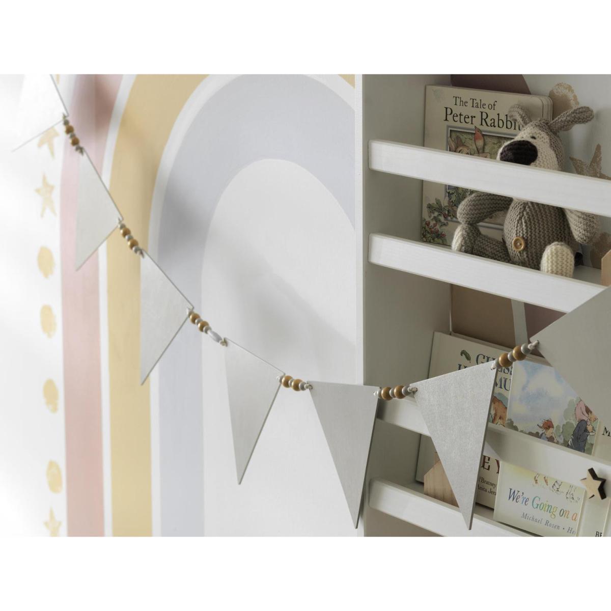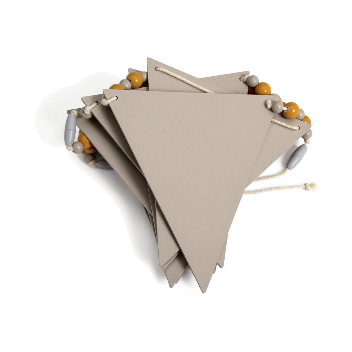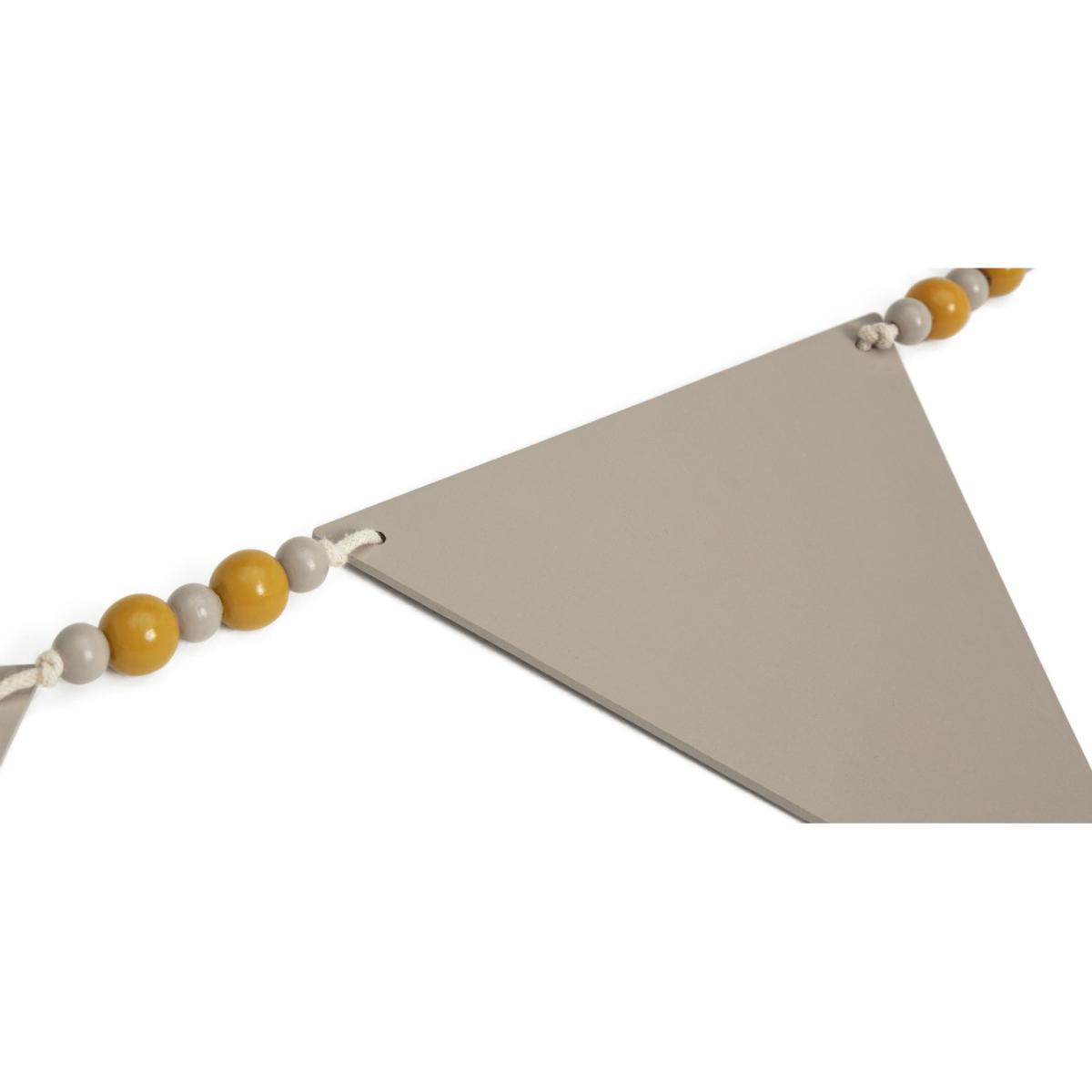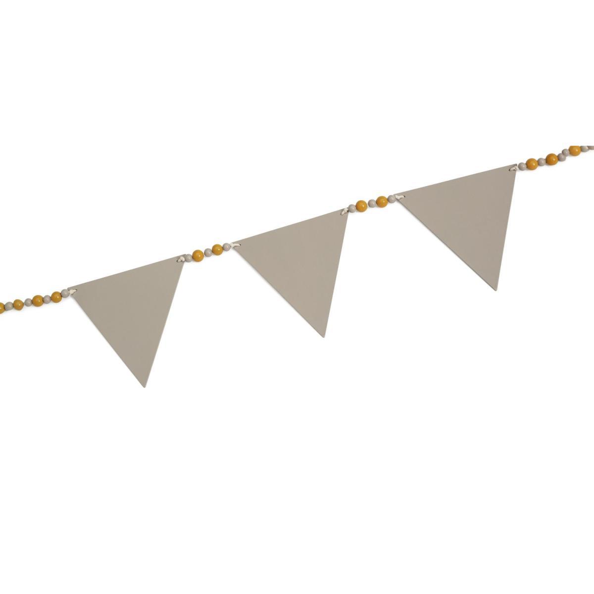 Let's dress up the room. Our pretty wooden bunting brings a fun and playful look to a youngster's bedroom all year round. Crafted from painted grey wood triangles and soft grey and mustard yellow beads. The simple design fits with most colour schemes, from neutrals and pastels to bold patterns. Designed with your child's safety in mind, this bunting has a child-safe breakaway feature so that it comes apart if any weight is put on it. We still recommend you keep it out of your child's reach and do not hang above their bed.